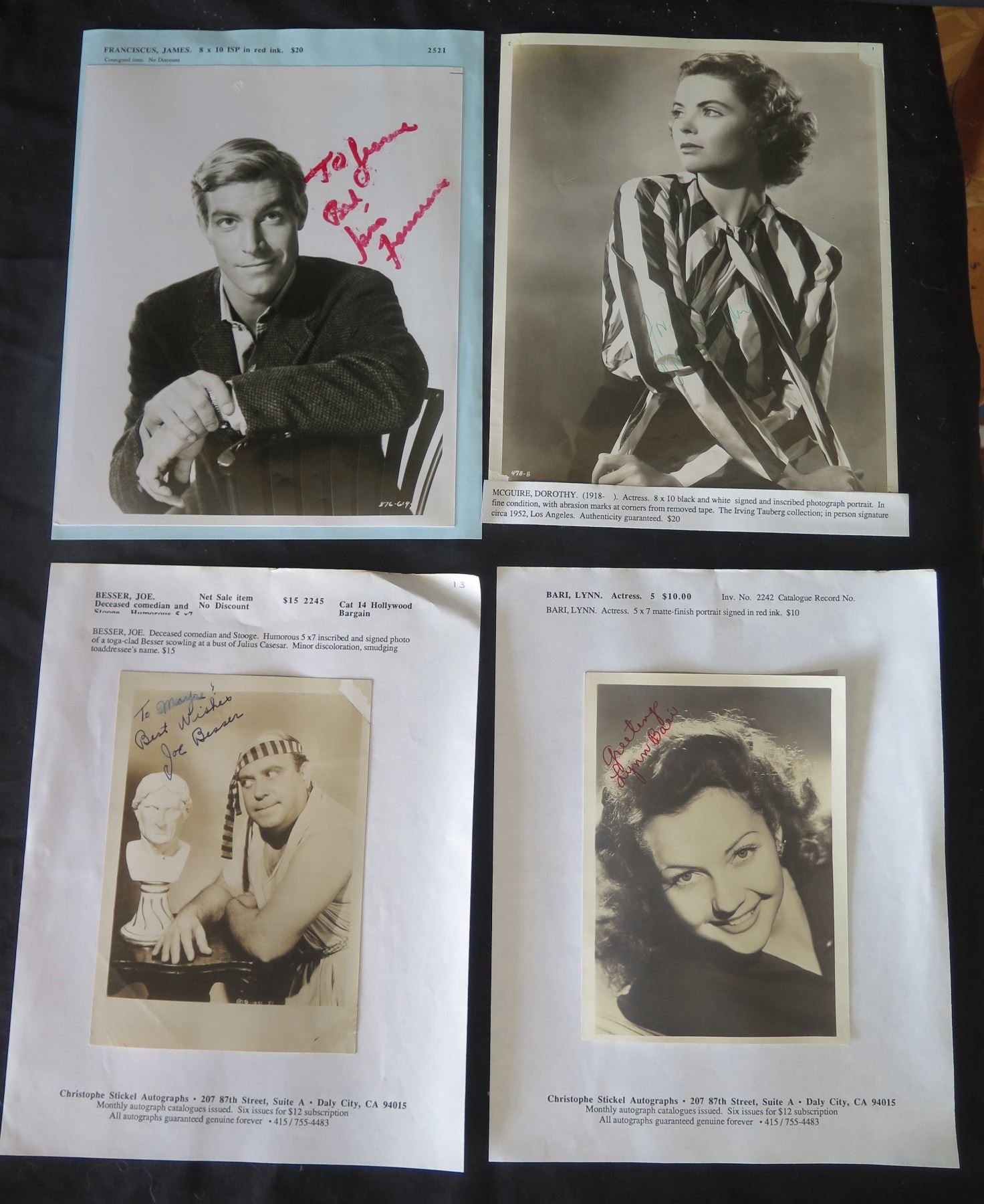 Qty 4 Celebrity Photos: James Franciscus, Dorothy McGuire & Others, Some Signed