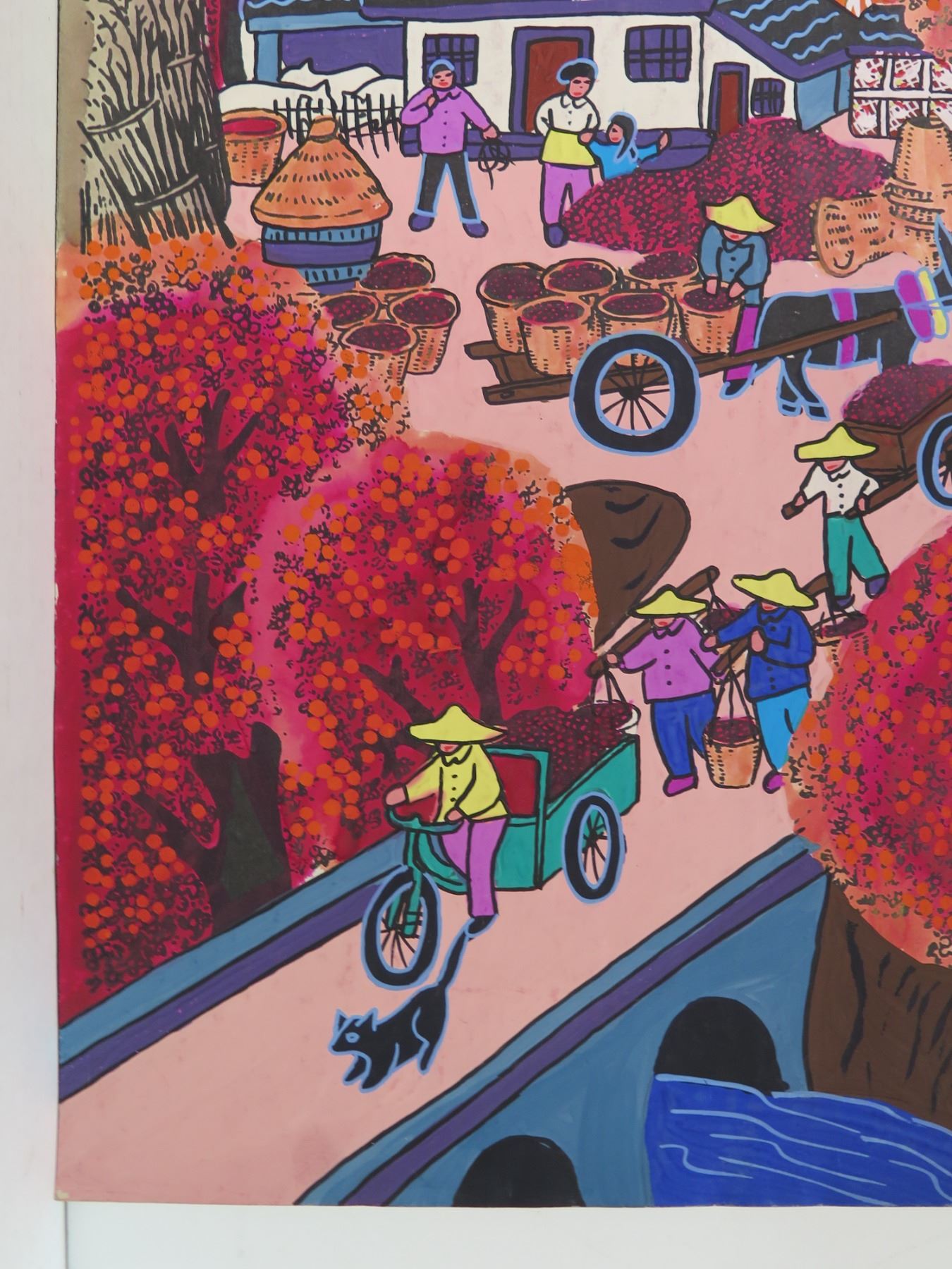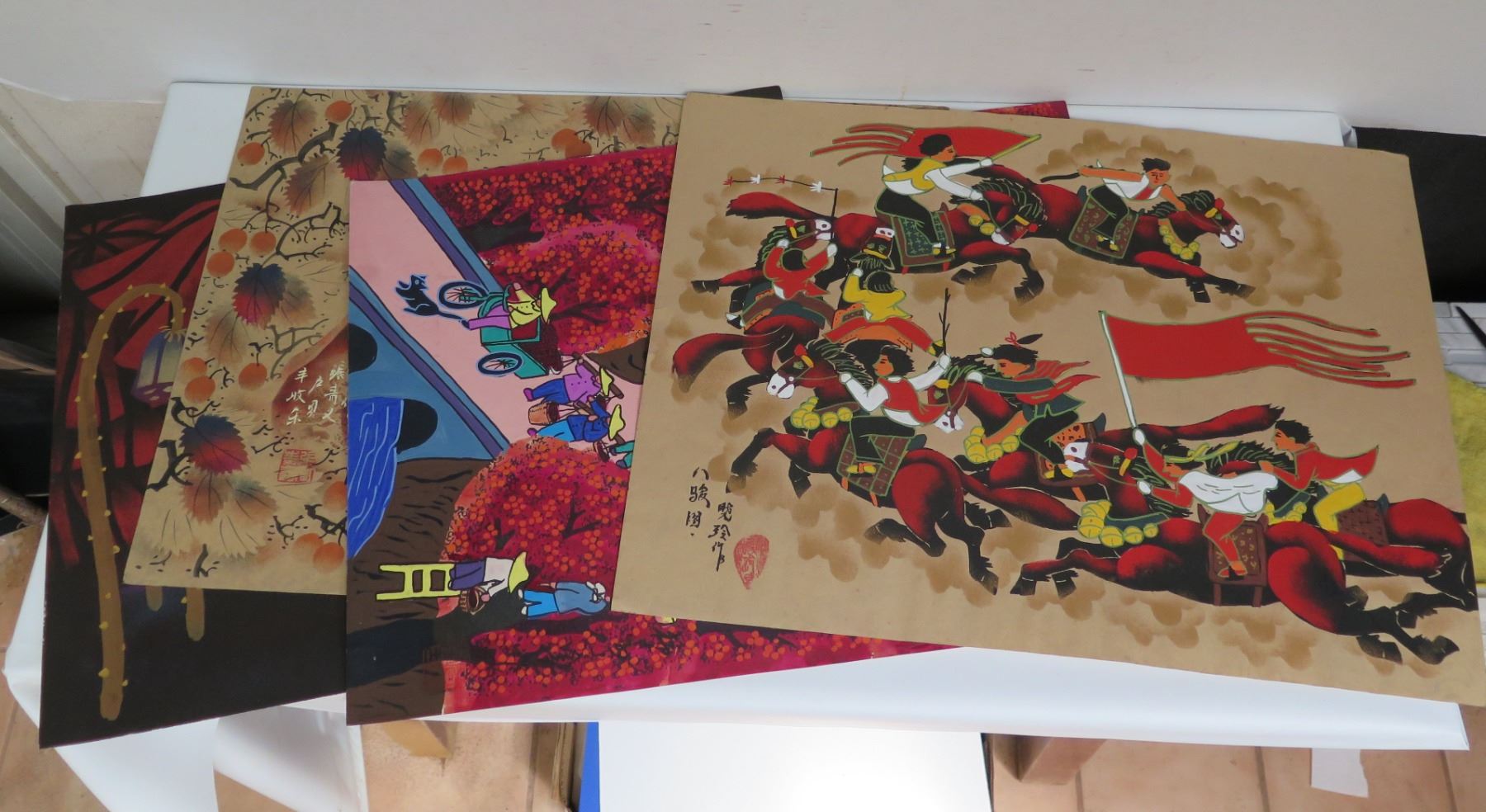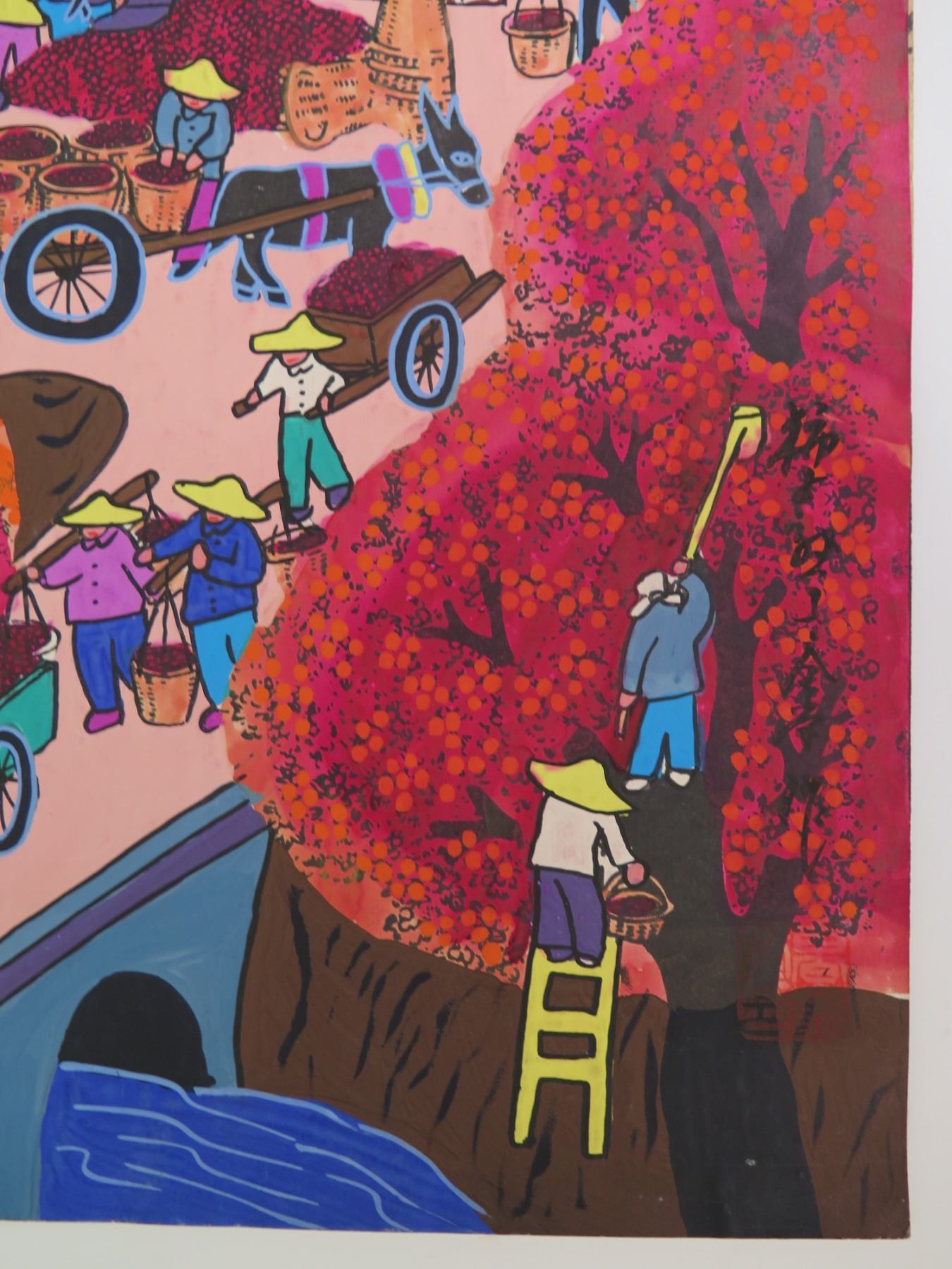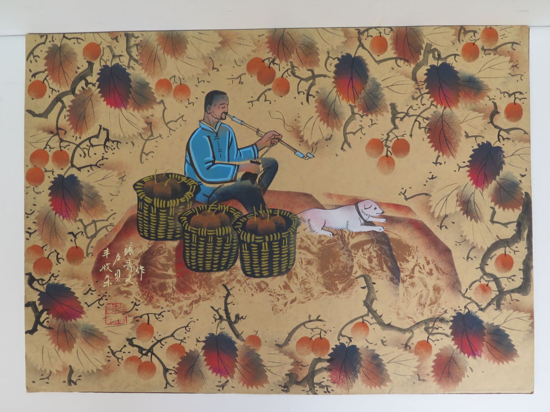 Qty 4 Chinese Peasant Paintings, Maker's Mark 21.5" x 15.5"
