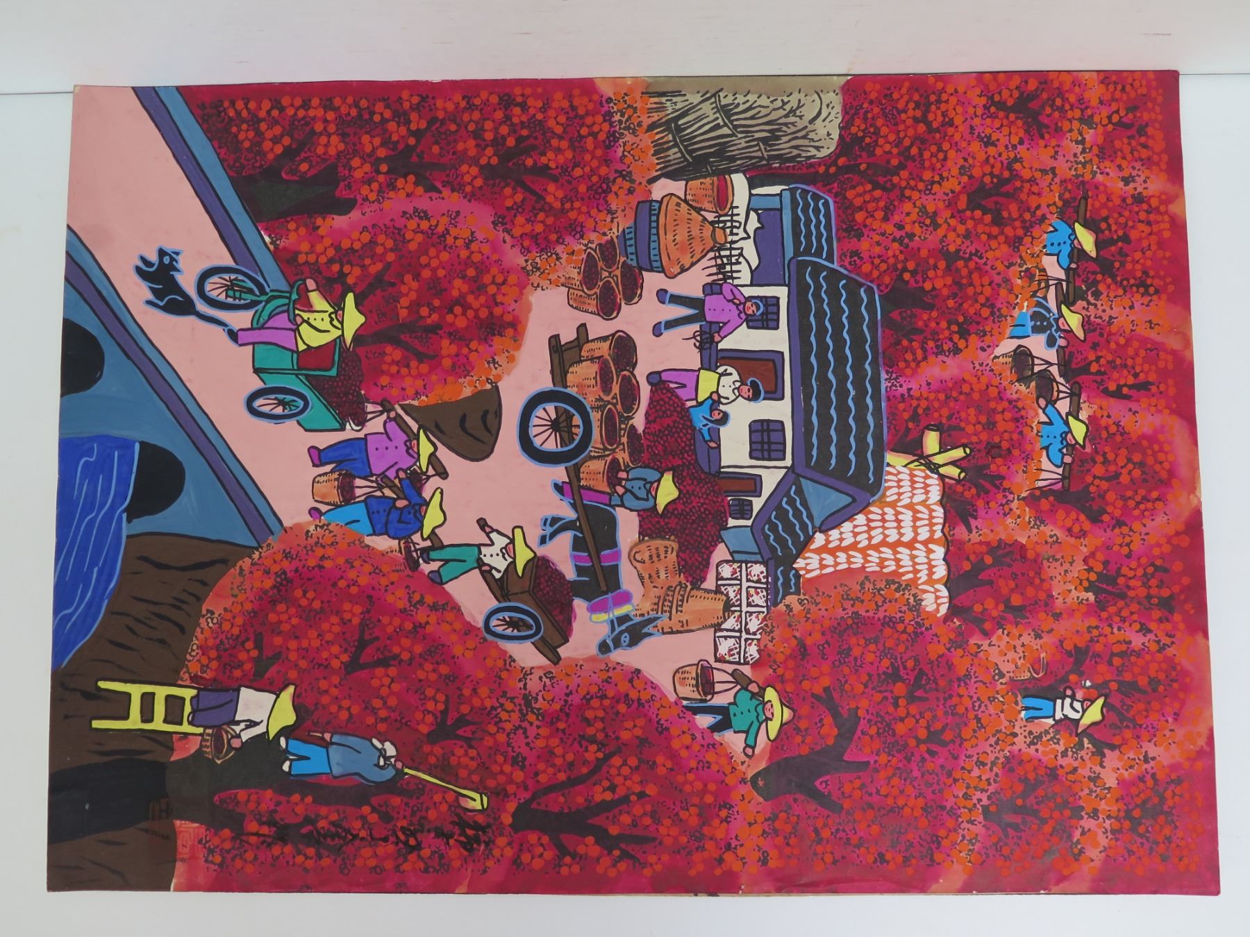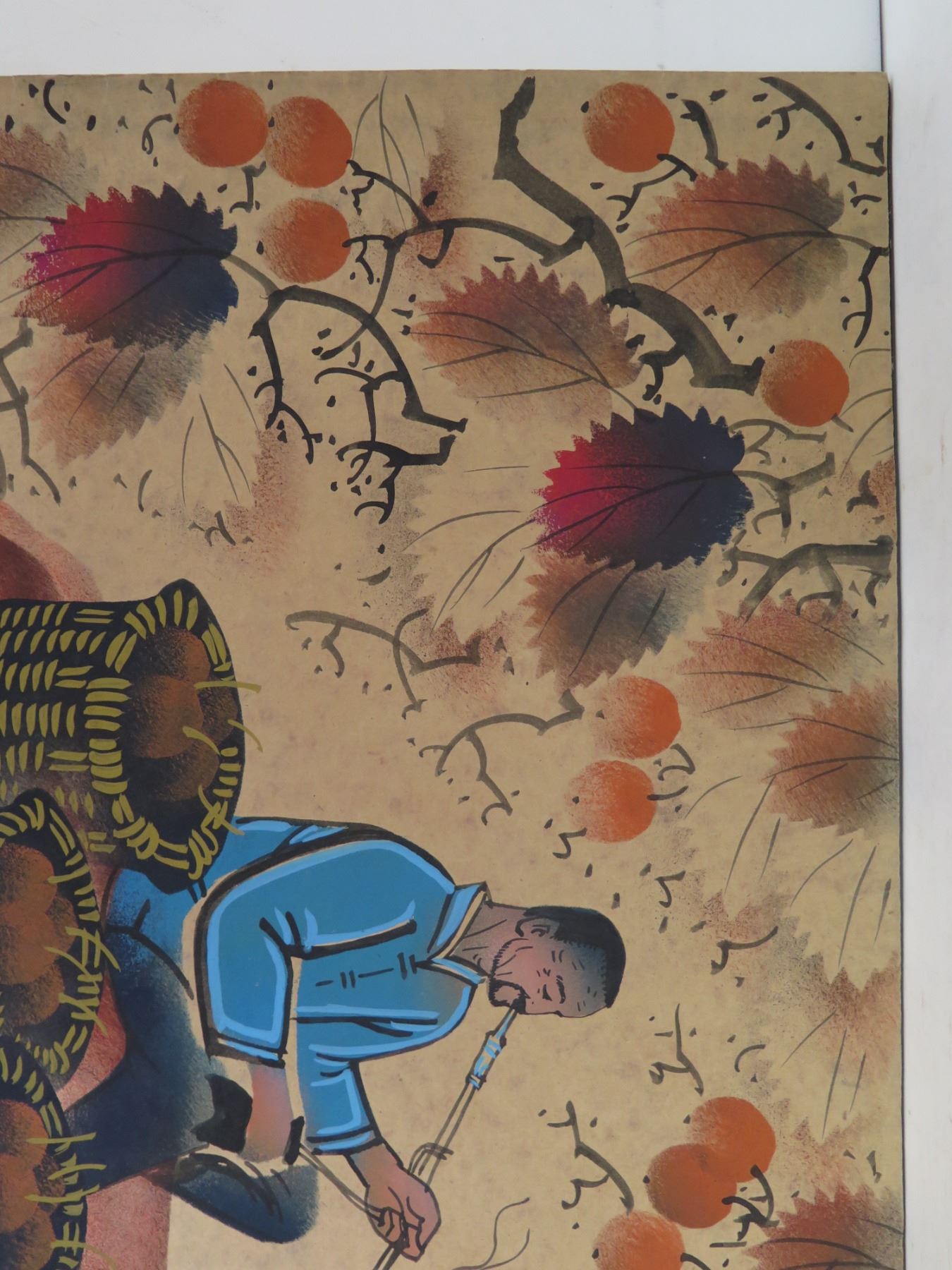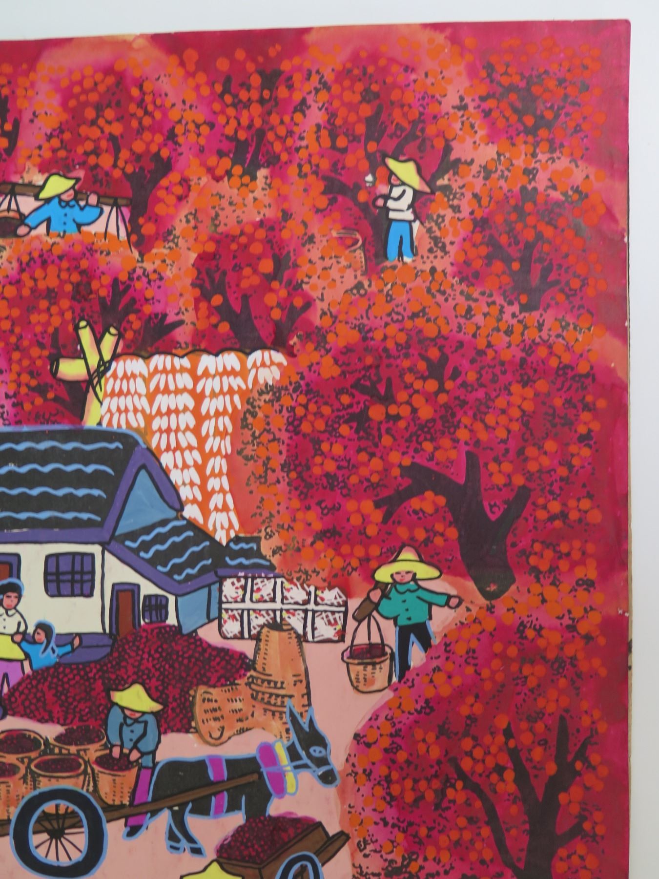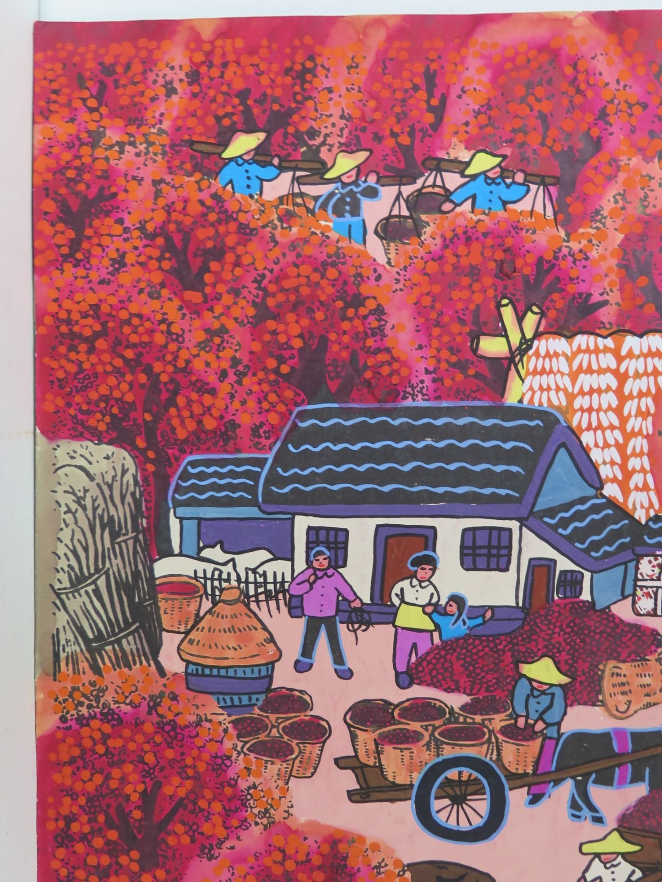 Qty 4 Chinese Peasant Paintings, Maker's Mark 21.5" x 15.5"