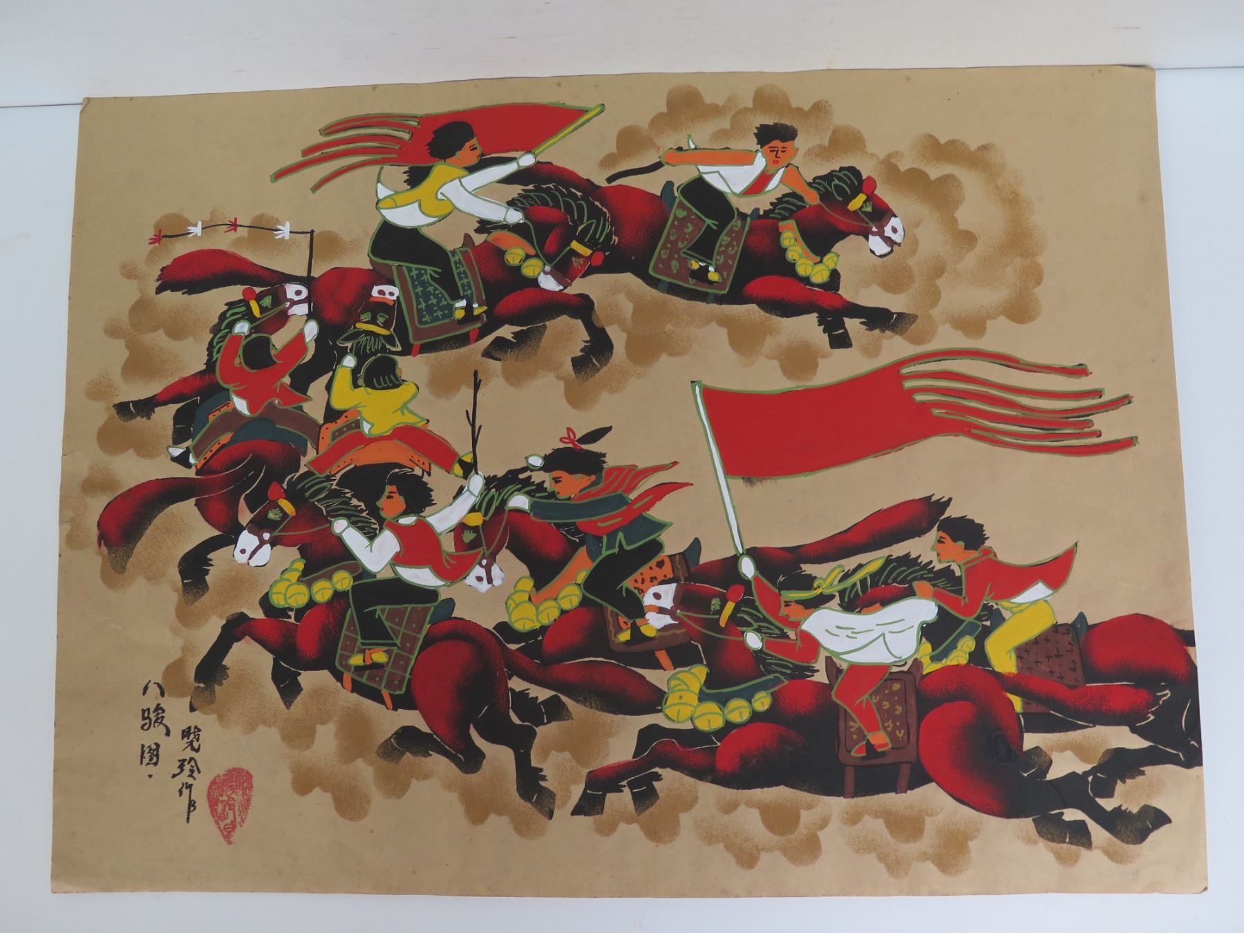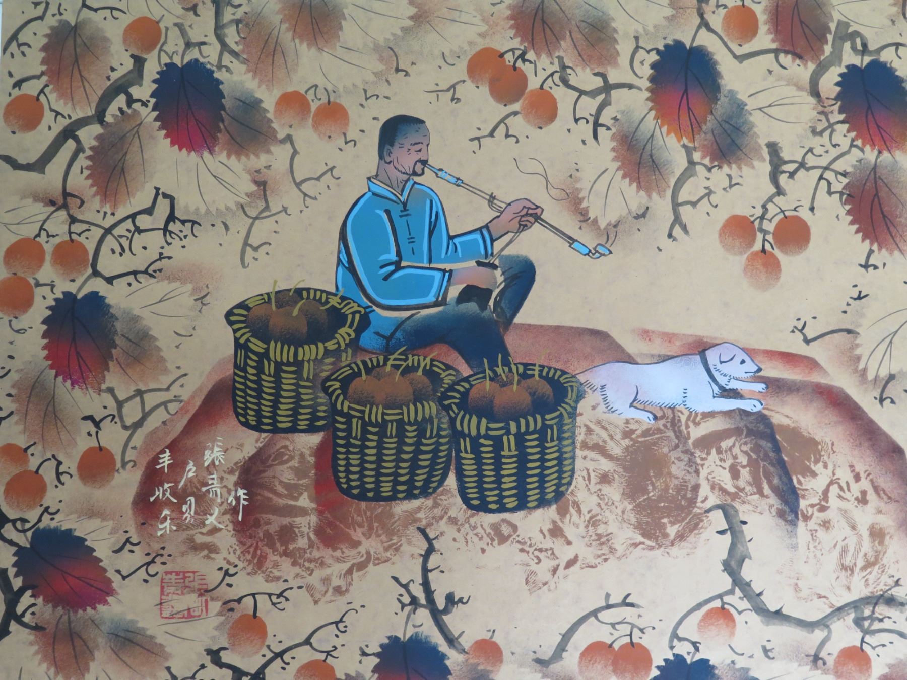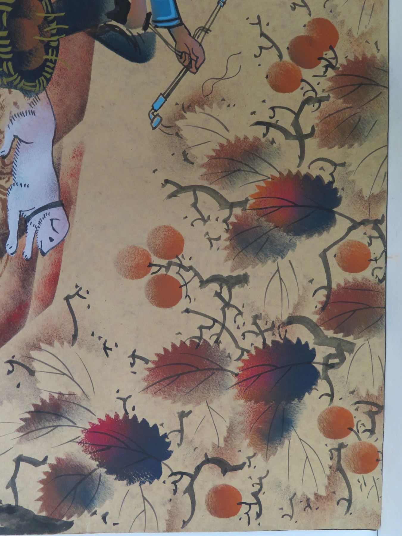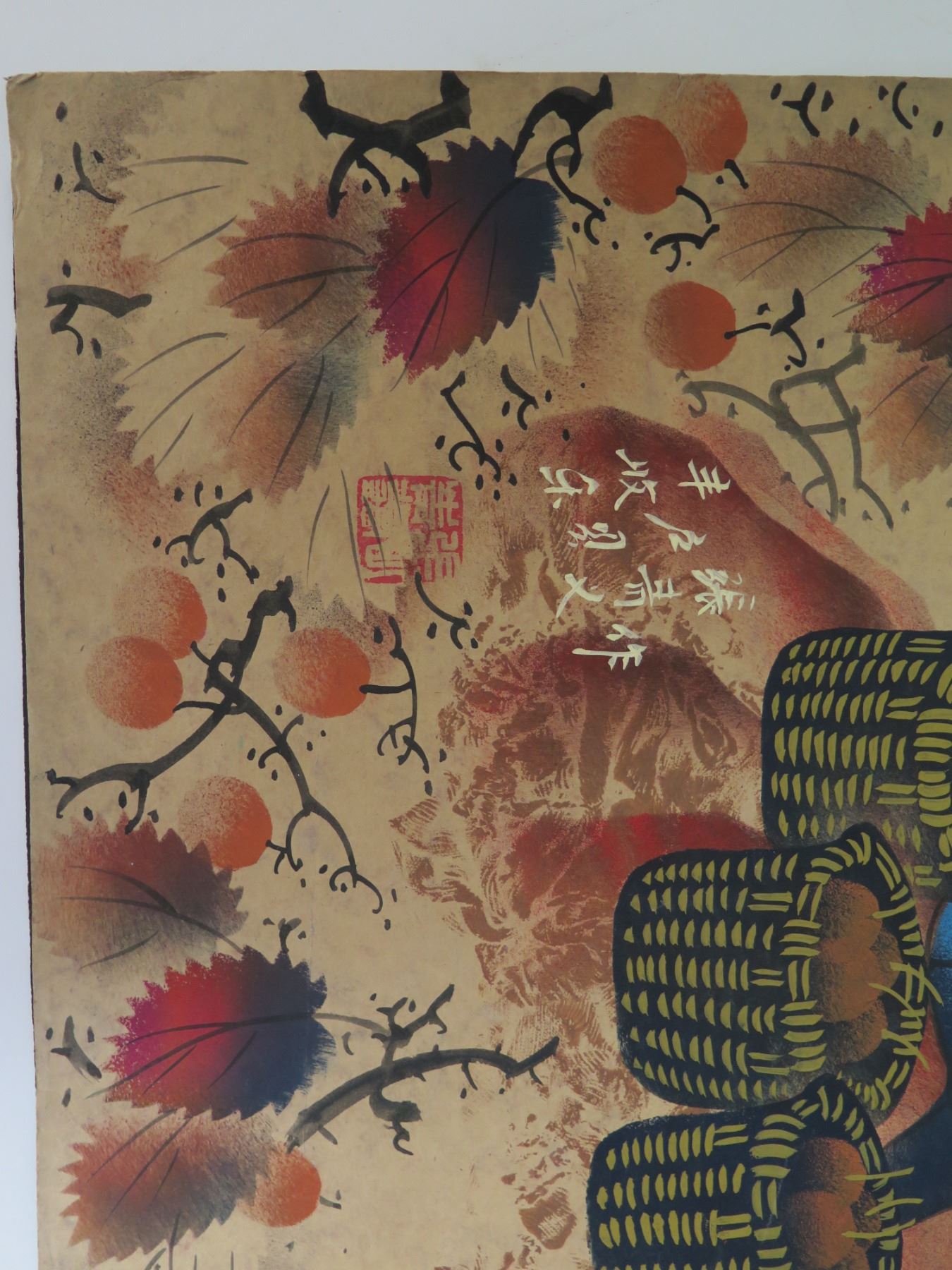 Qty 4 Chinese Peasant Paintings, Maker's Mark 21.5" x 15.5"
