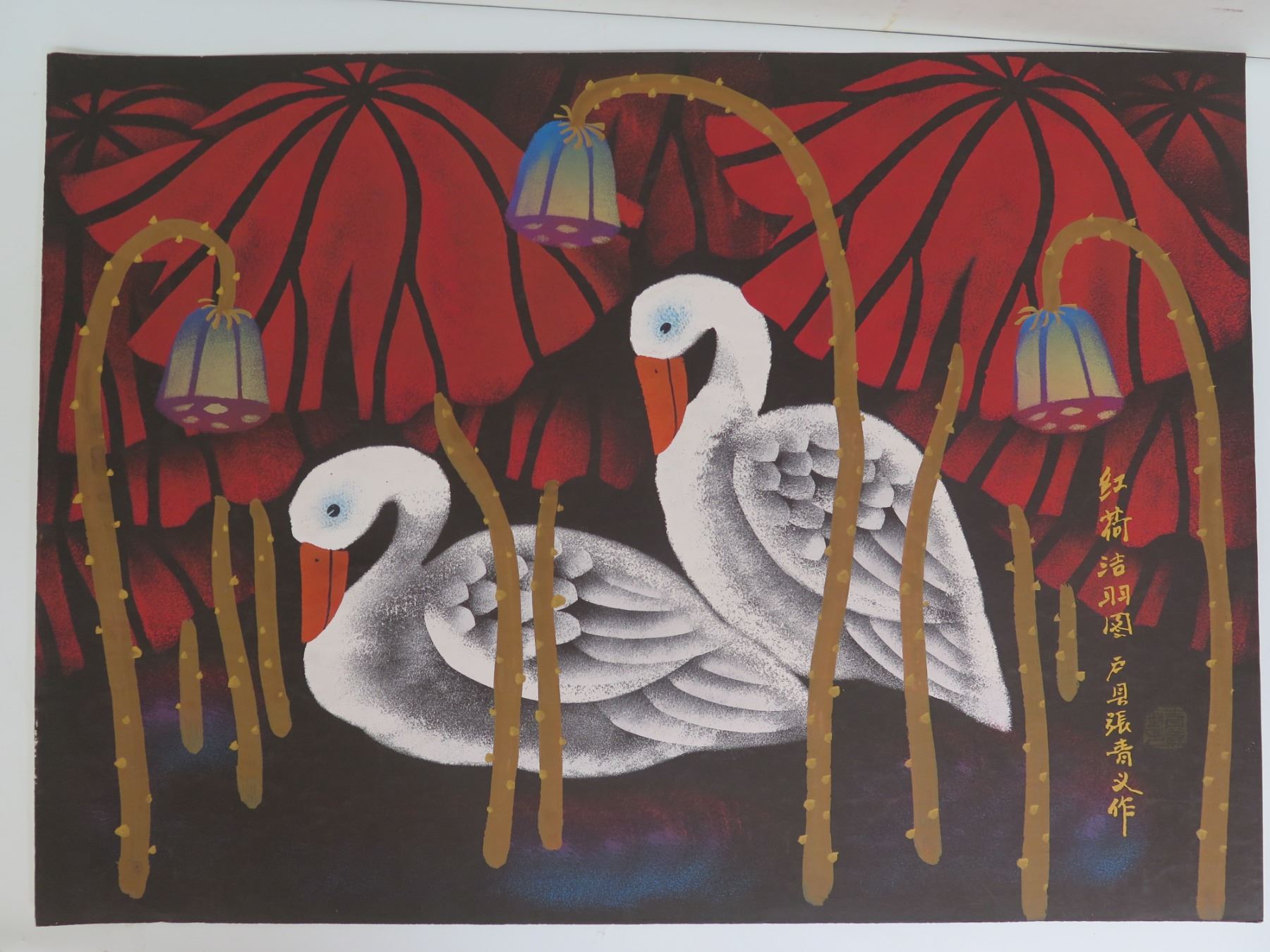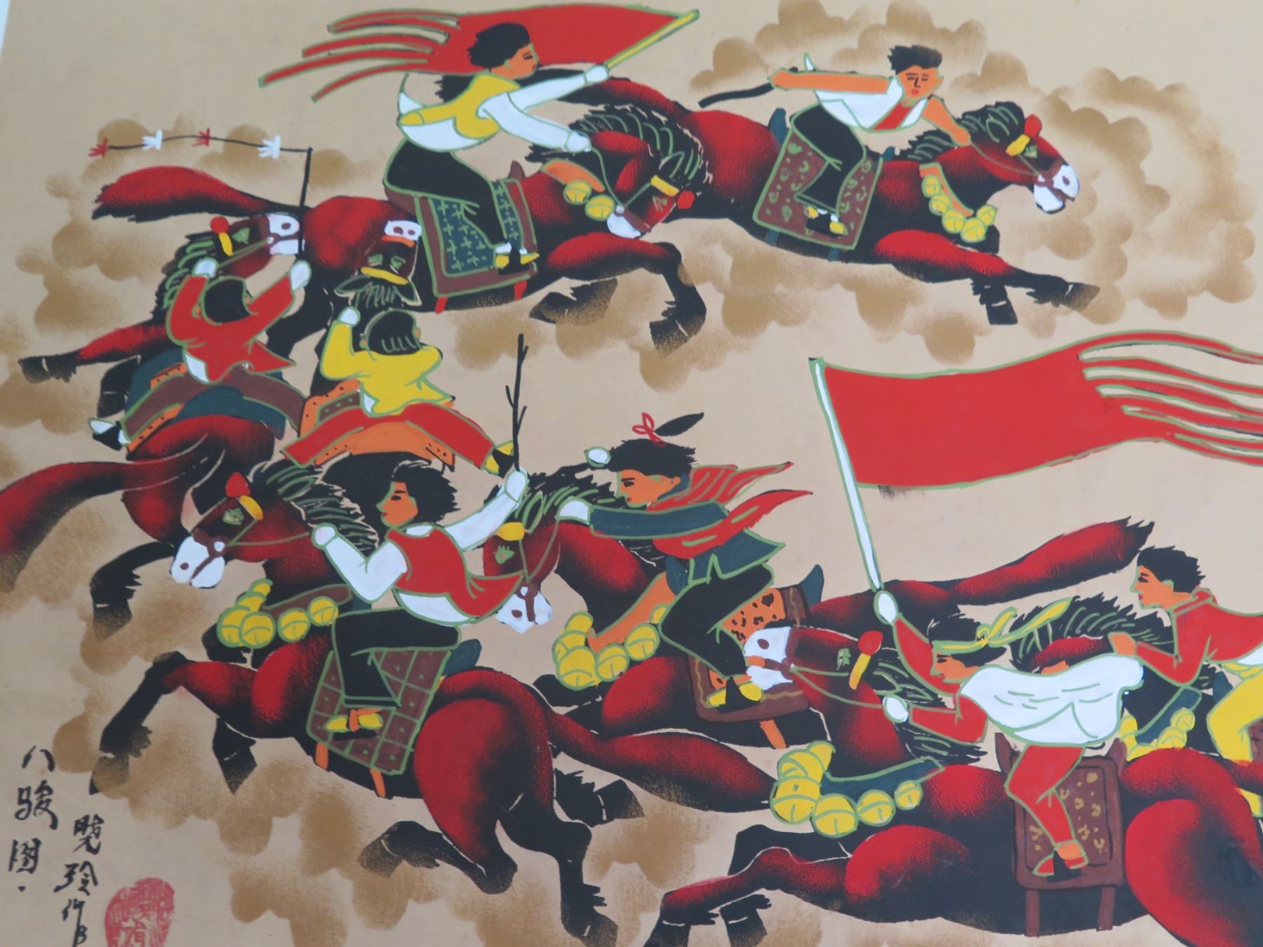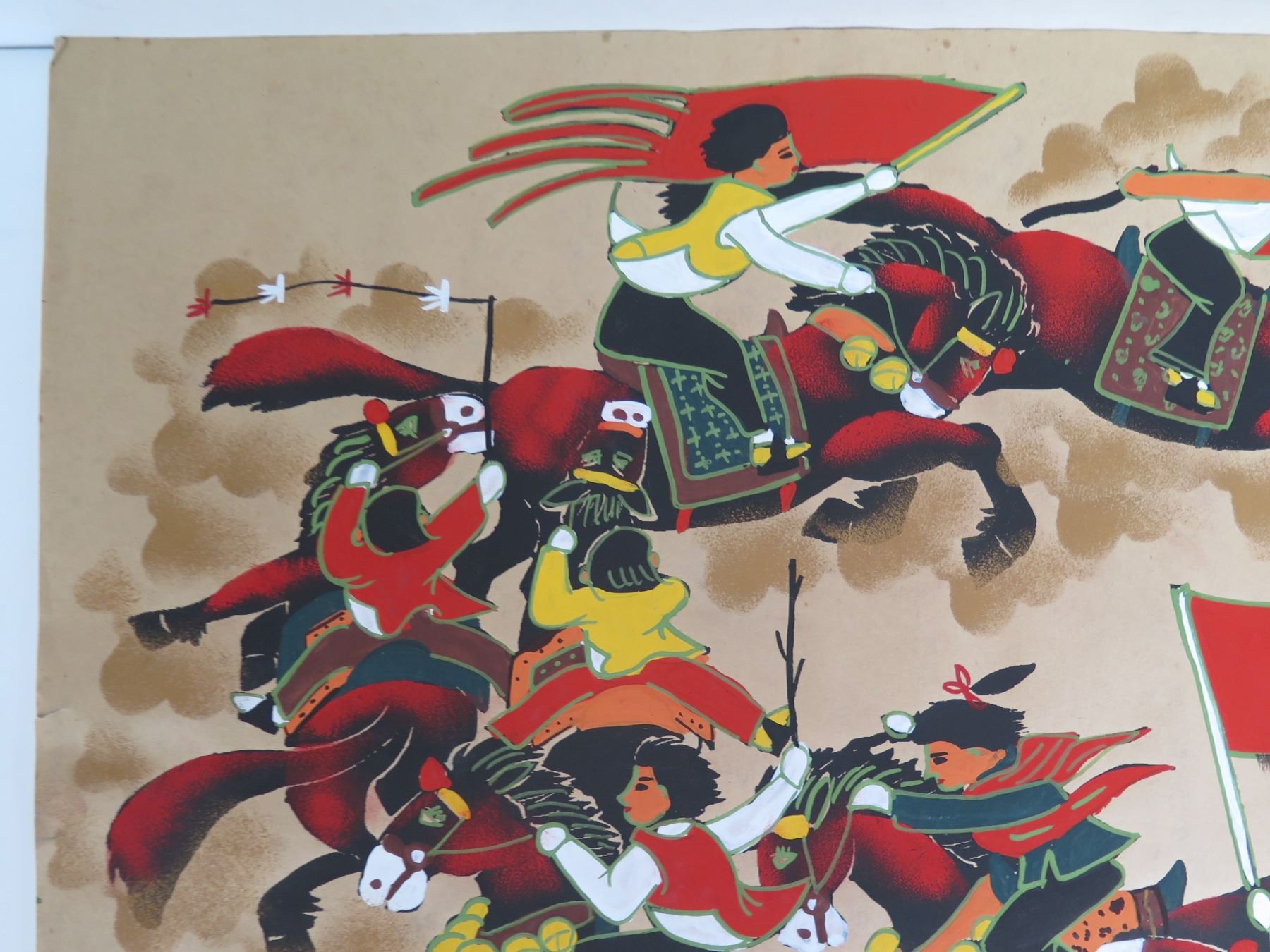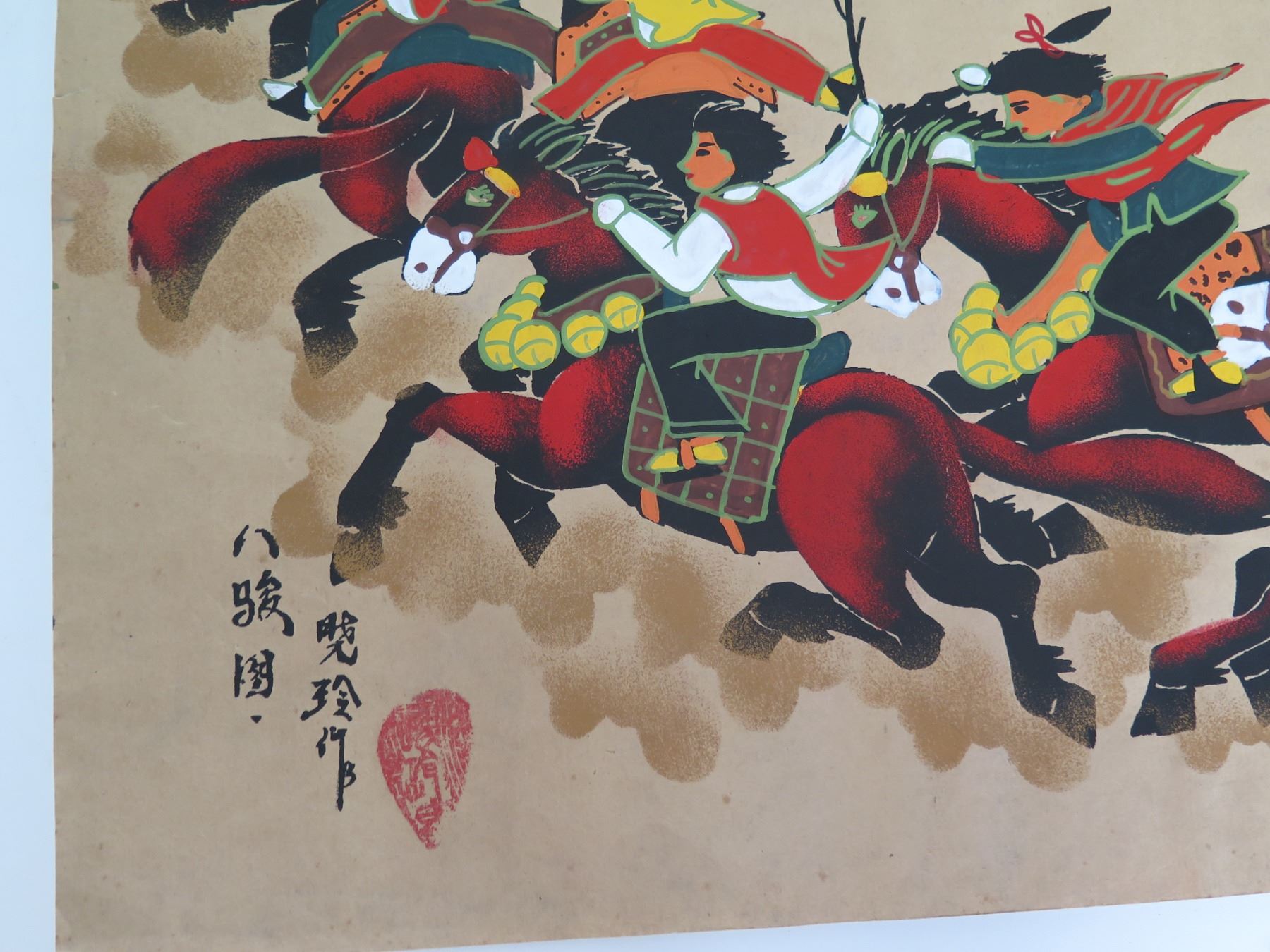 Qty 4 Chinese Peasant Paintings, Maker's Mark 21.5" x 15.5"