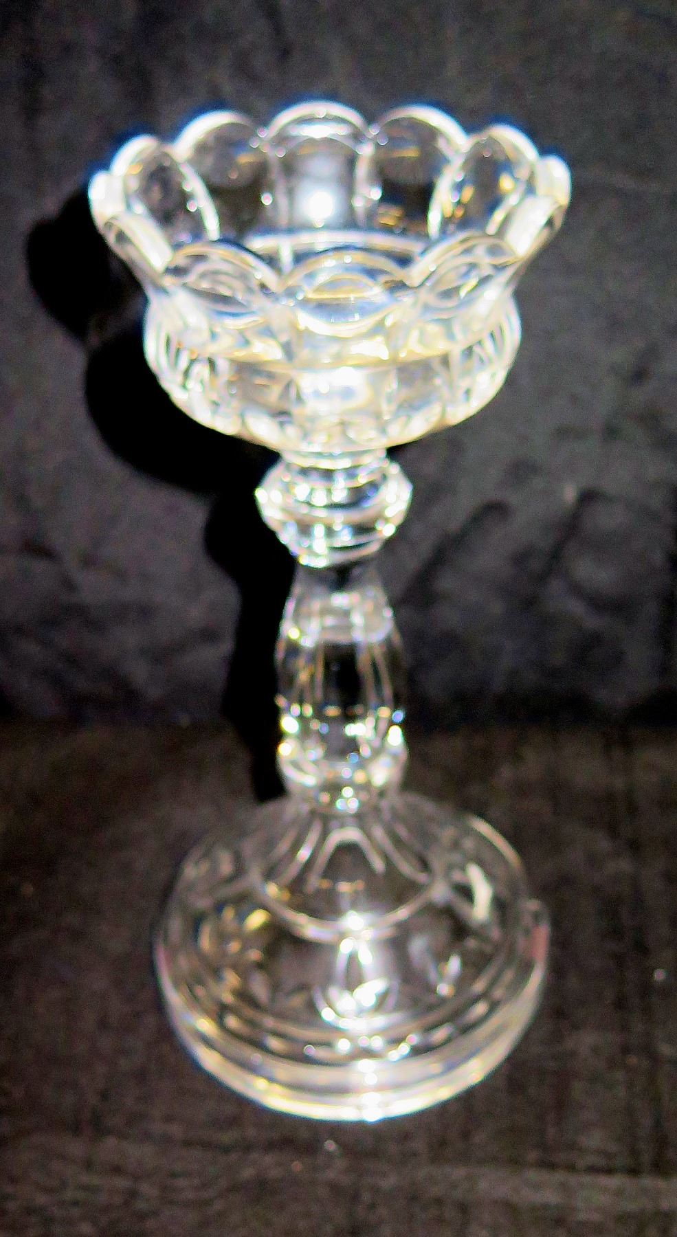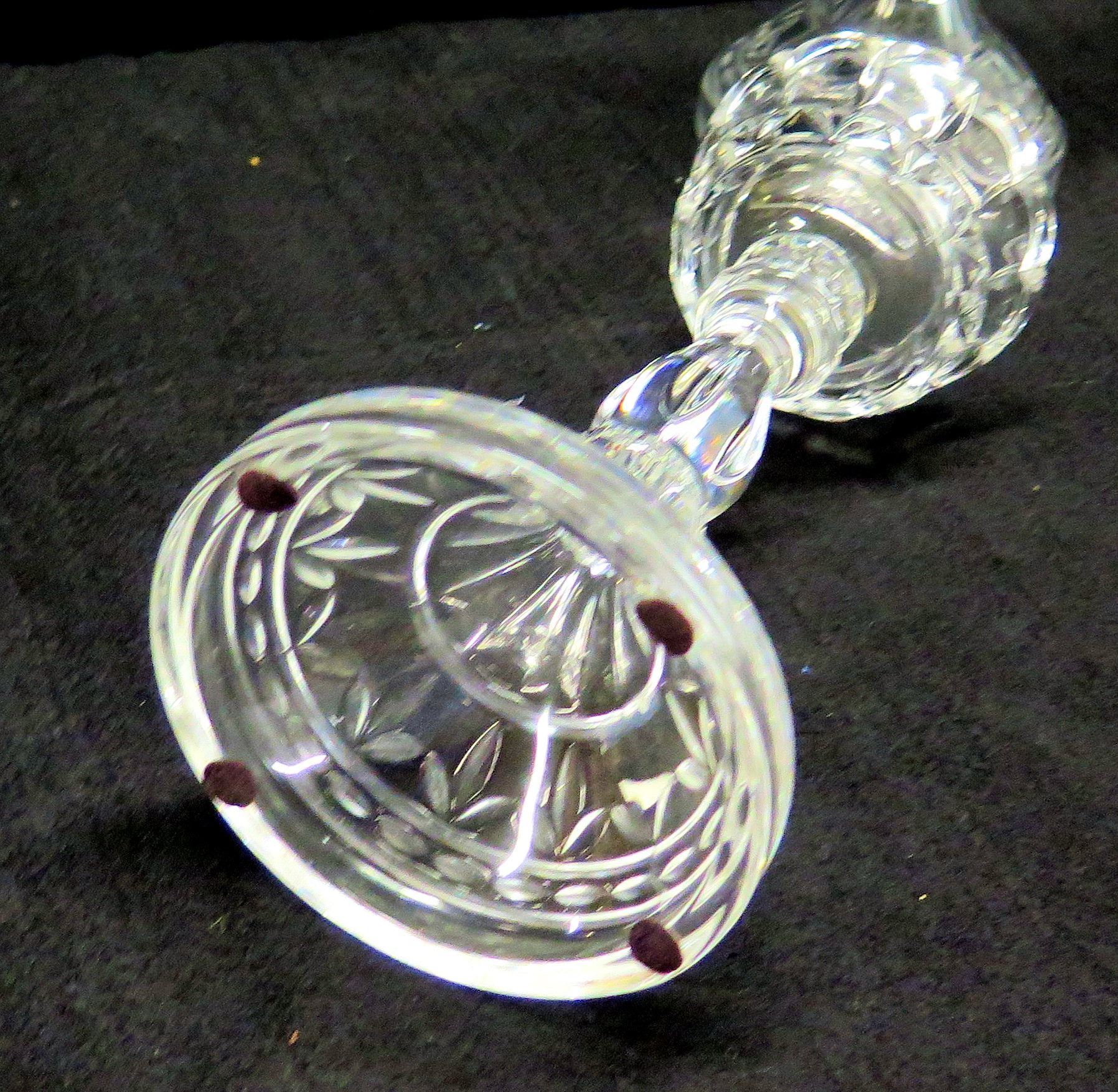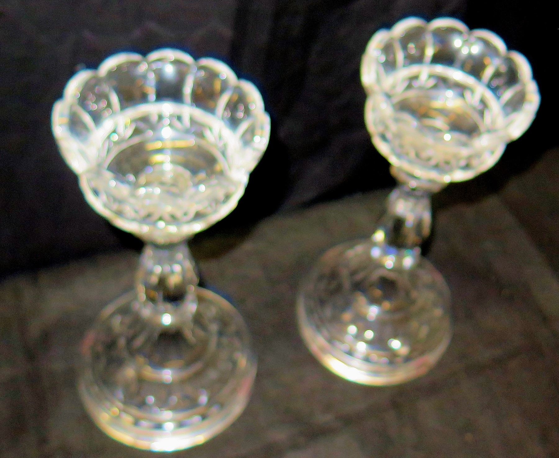Qty 4 Cut Glass Pedestal Candle Holders w/ Scalloped Edges 11" High