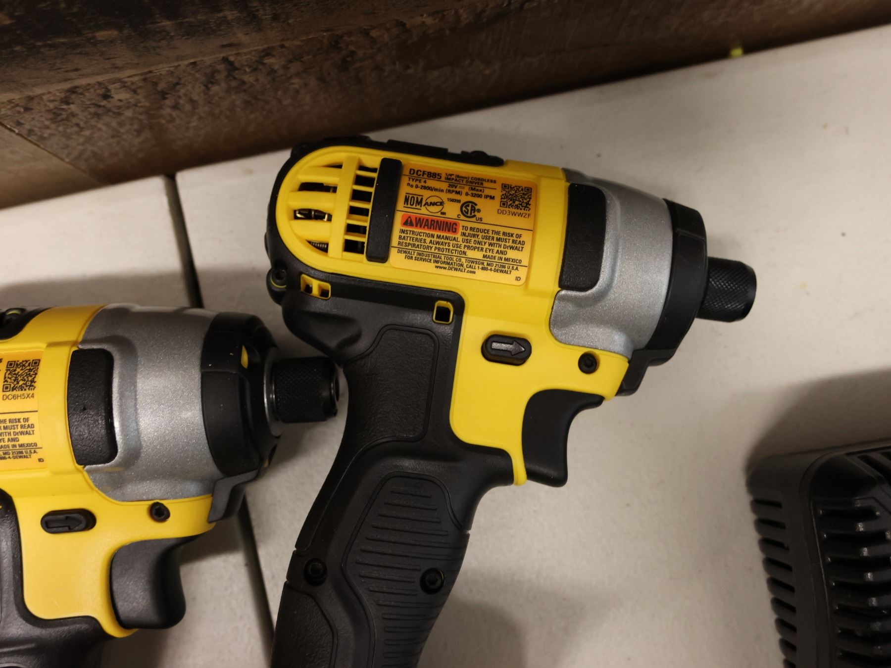 Qty 4 DeWalt Power Tools & 1 Charger: DCF887 & DCF885 Impact Drivers