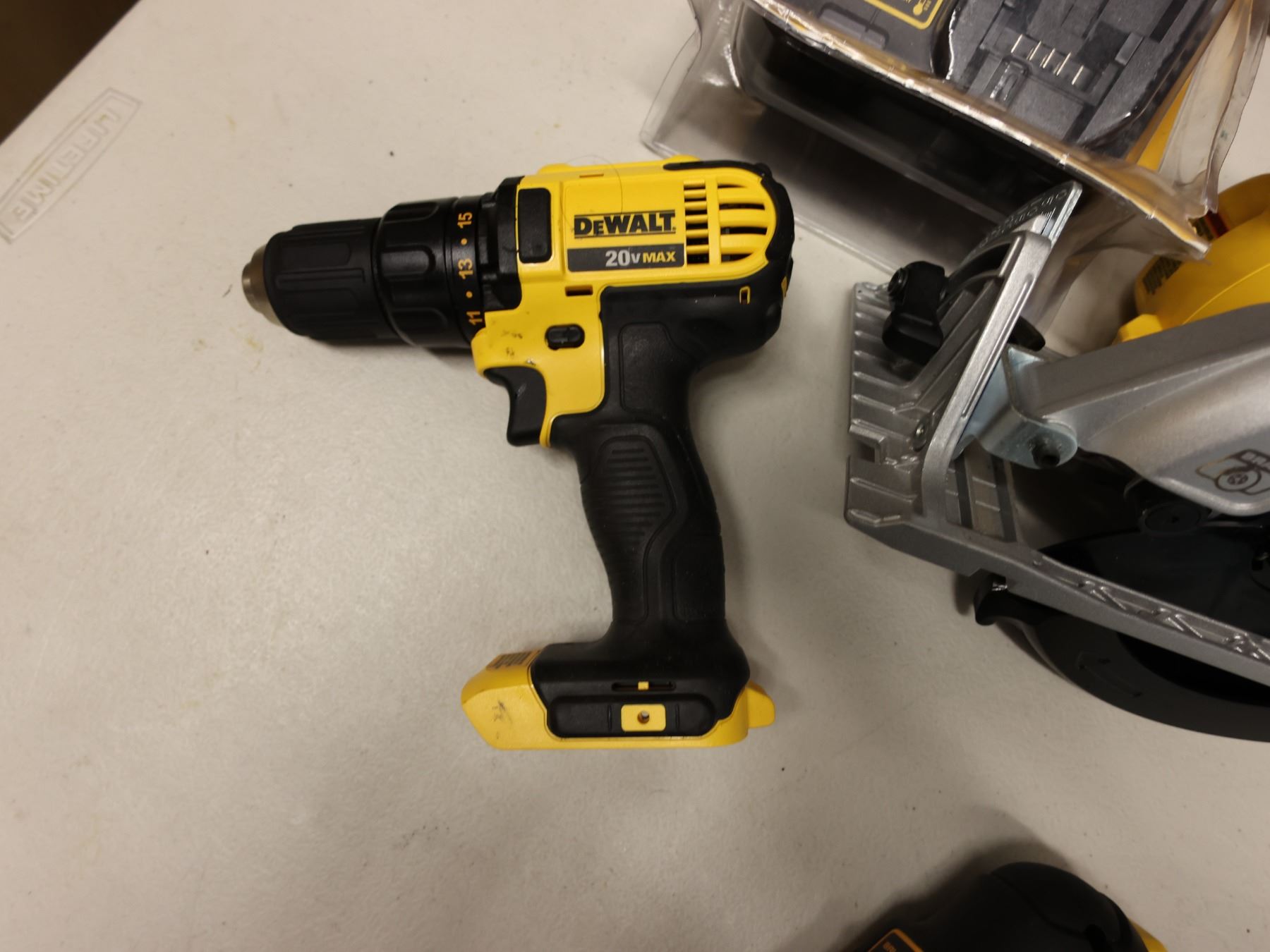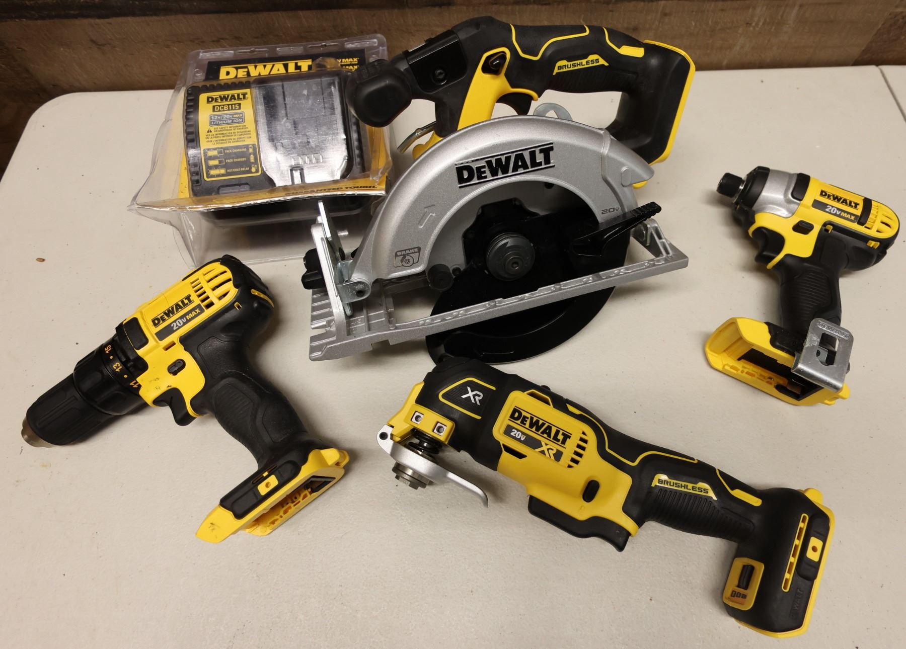 Qty 4 DeWalt Power Tools & 1 Charger: DCS356 Multi-Tool, DCD780 Drill Driver, DCF885 Impact Driver & DCS565 Circular Saw