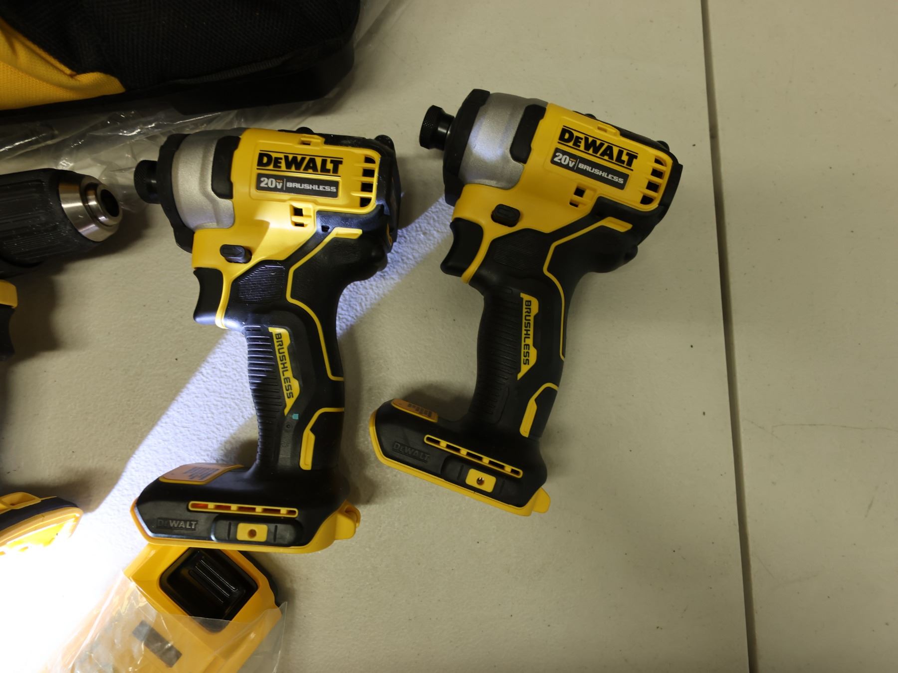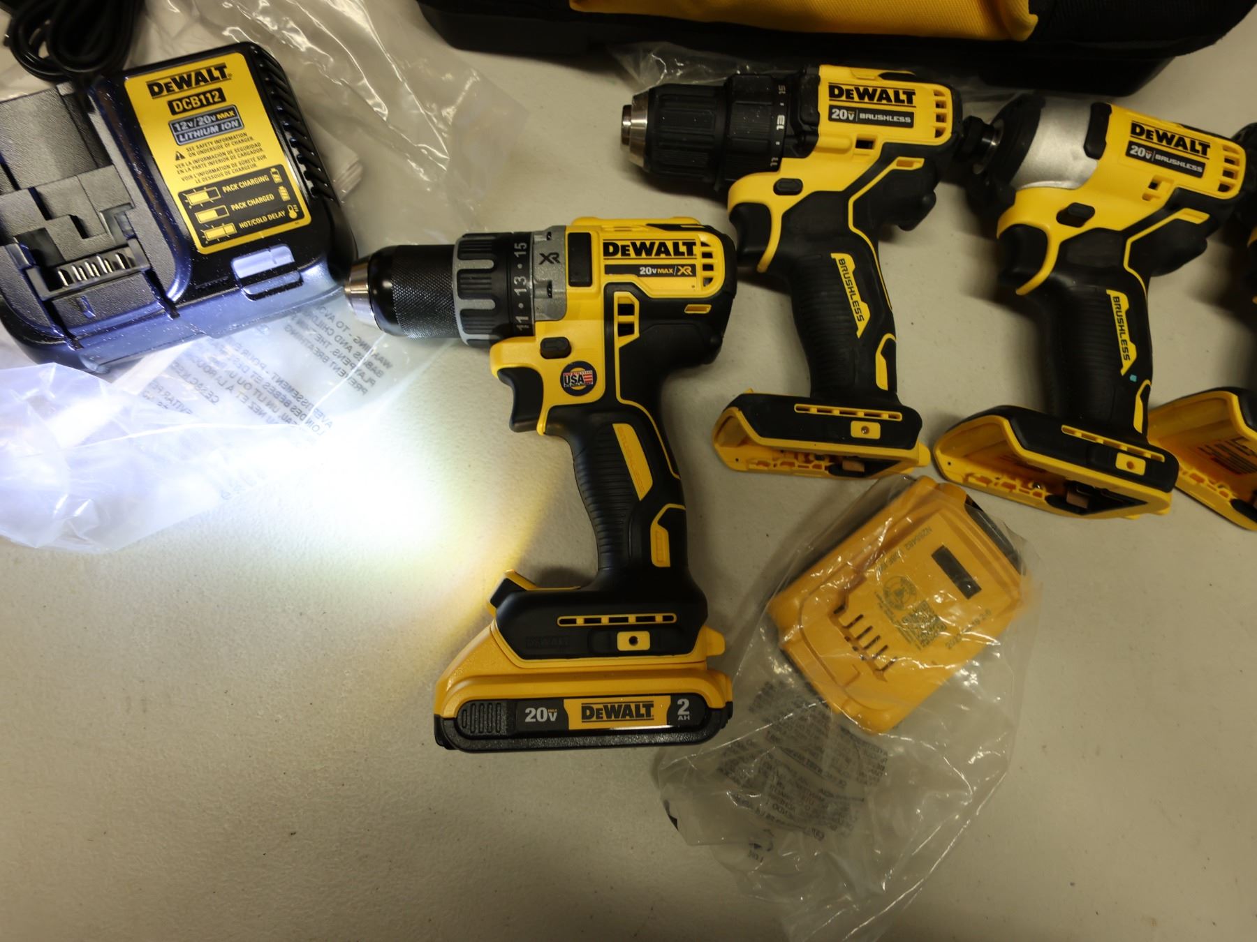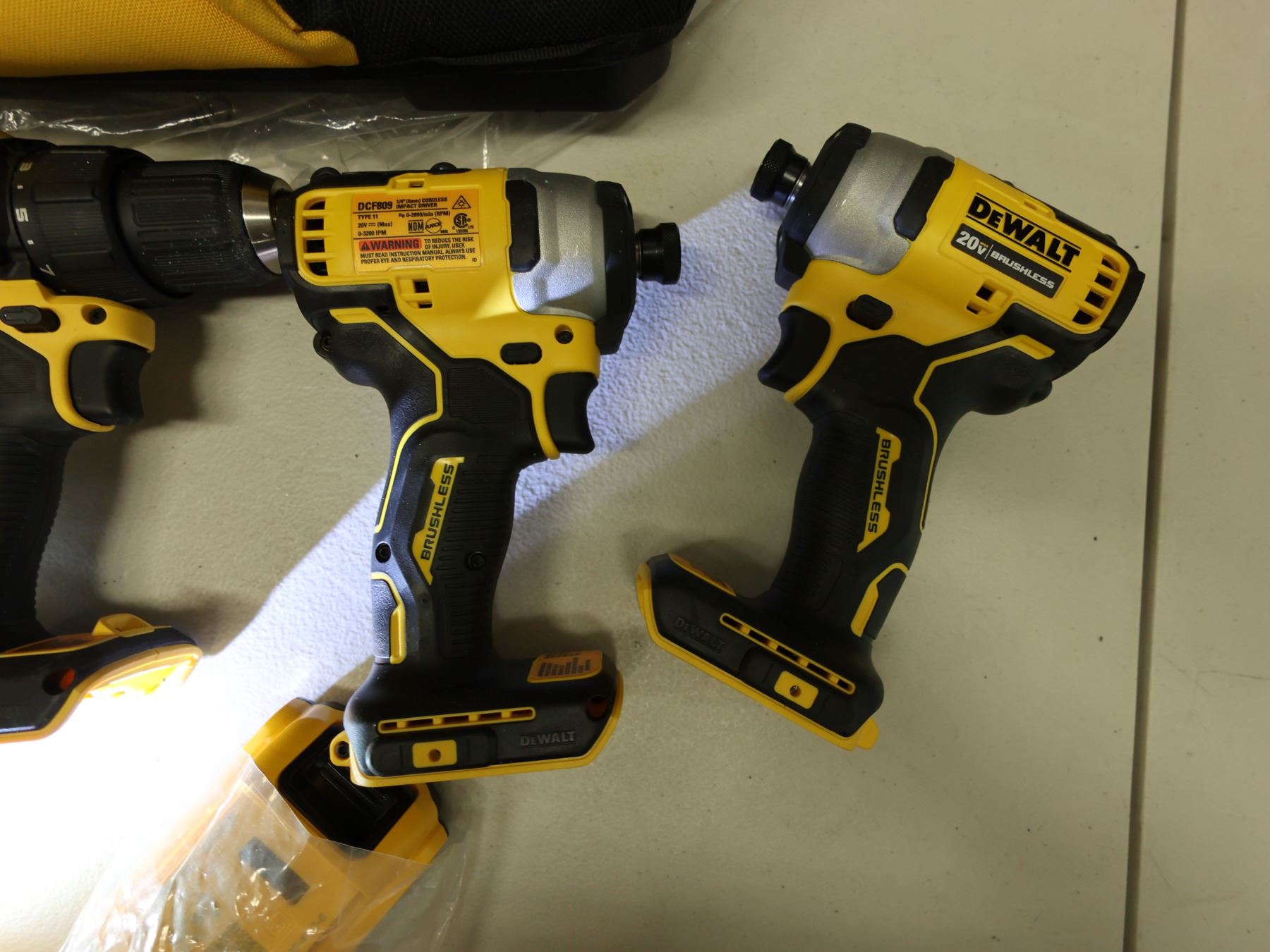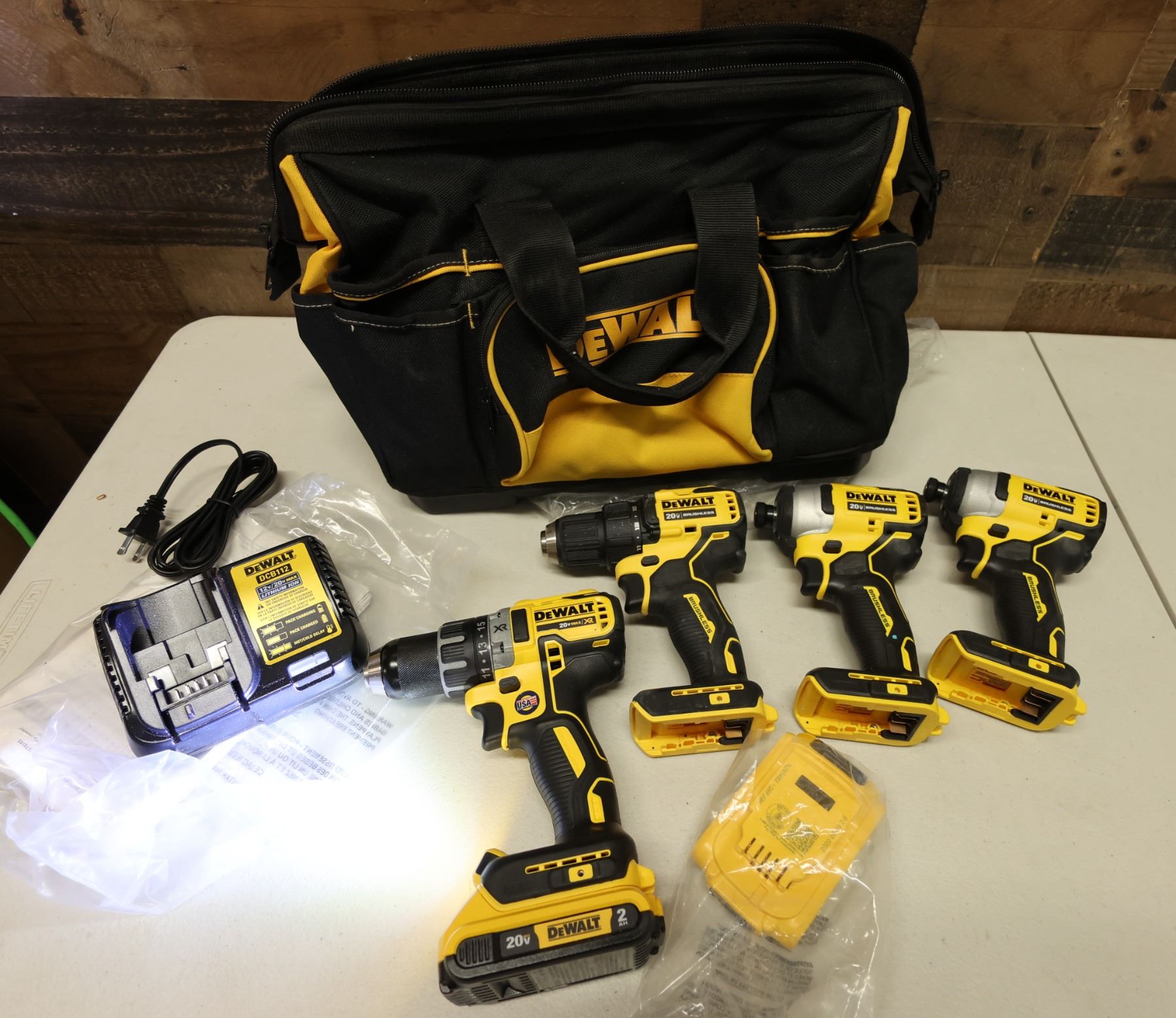 Qty 4 DeWalt Power Tools, Case & 1 Charger: DCD791 & DCD708 Drill Drivers & DCF809 Impact Drivers