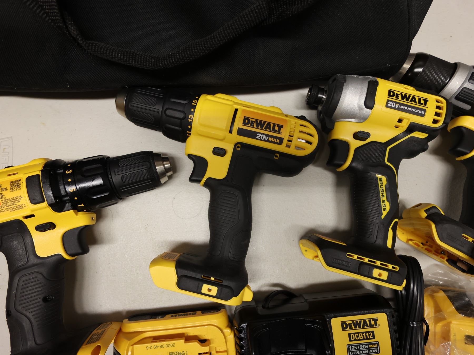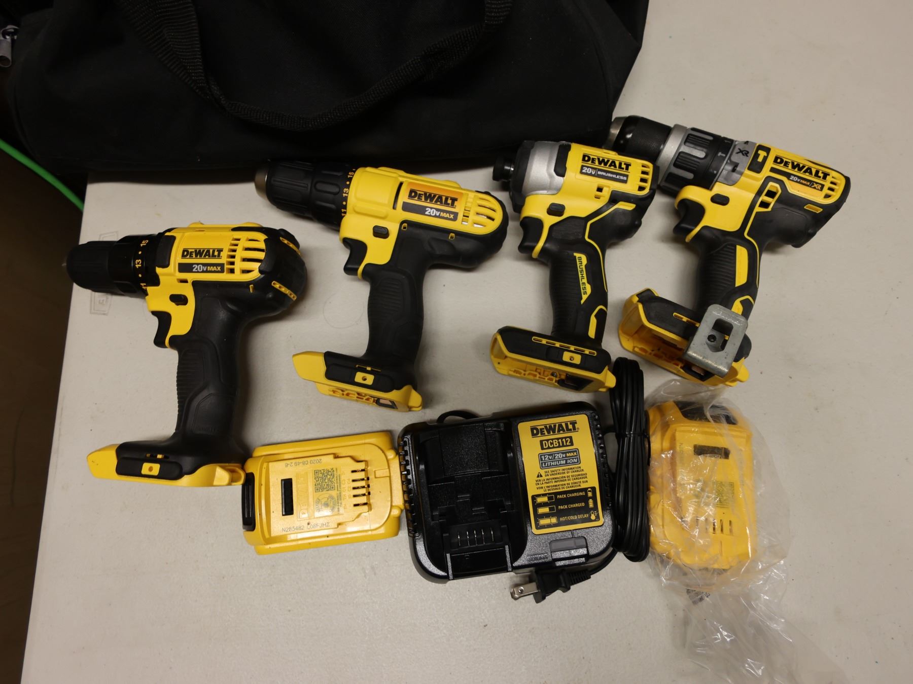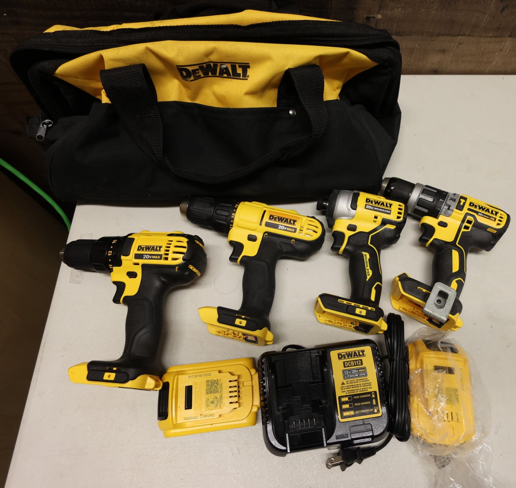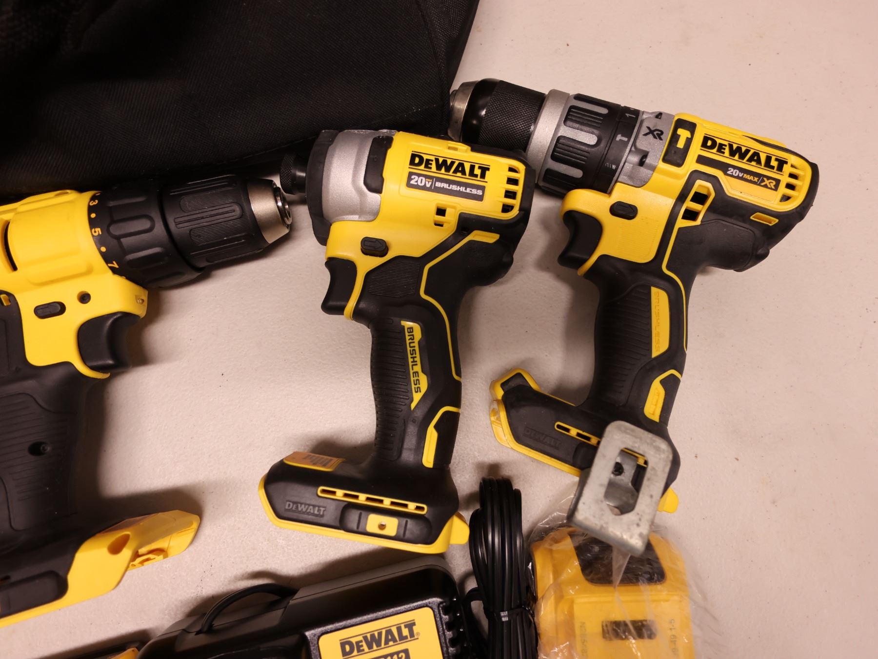 Qty 4 DeWalt Power Tools, Case, Batteries & Charger: DCD771, DCD796 & DCD780 Drill Drivers & DCF809 Impact Driver