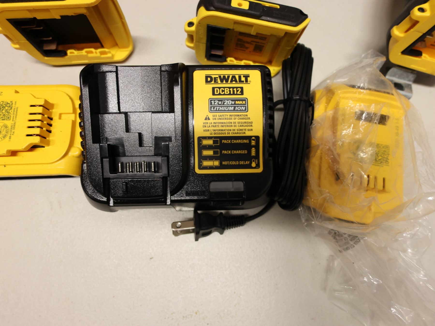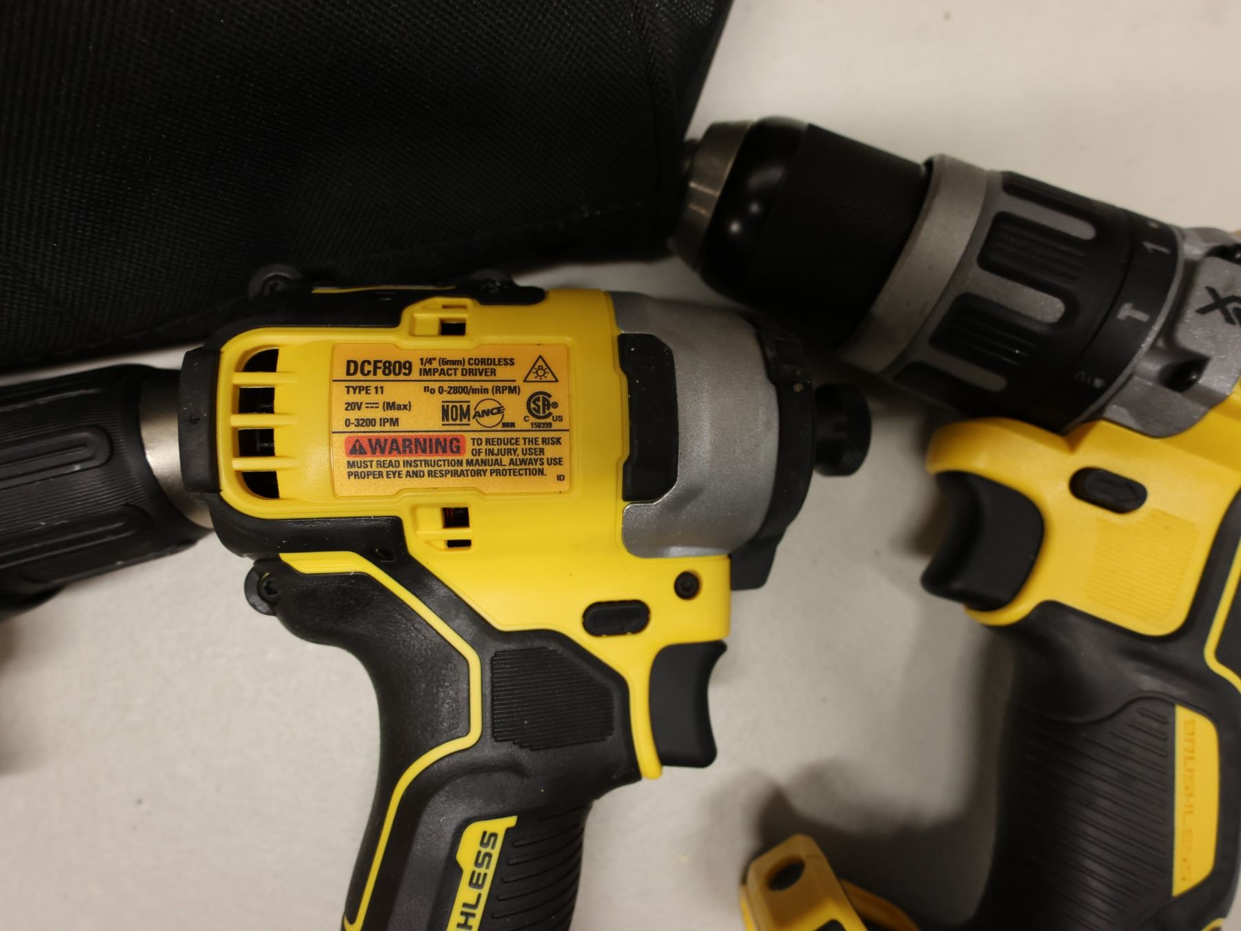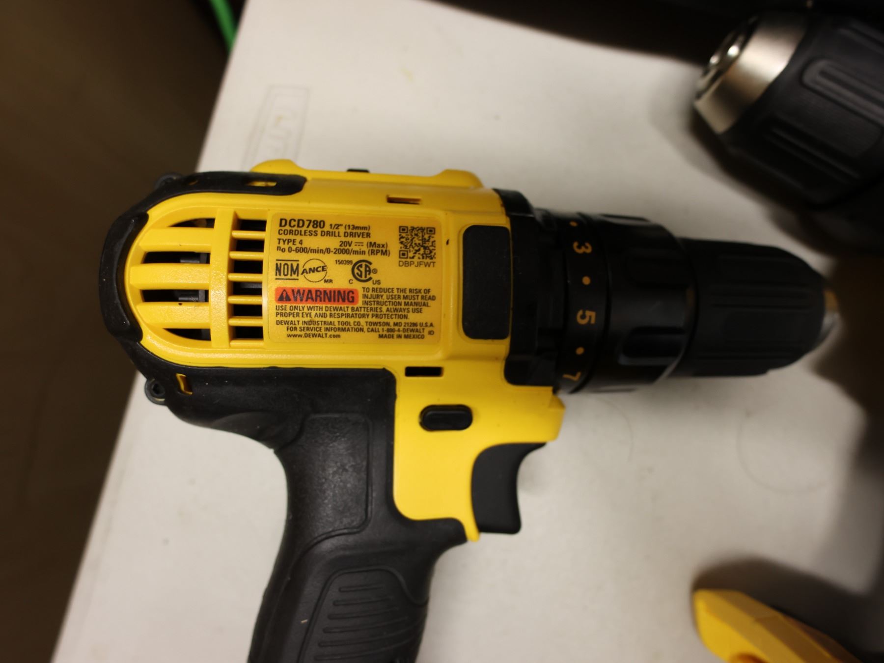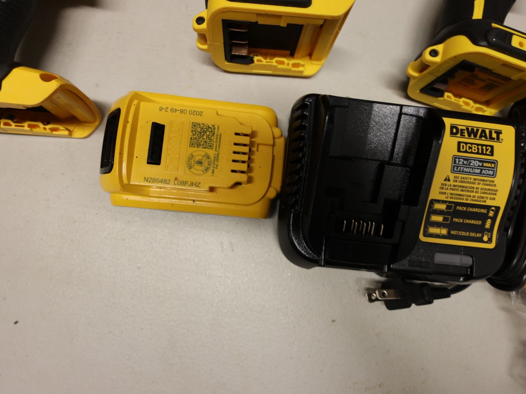 Qty 4 DeWalt Power Tools, Case, Batteries & Charger: DCD771, DCD796 & DCD780 Drill Drivers & DCF809 Impact Driver