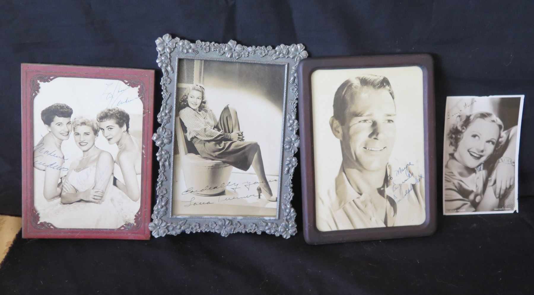 Qty 4 Framed Celebrity Photos: Lana Turner, Randolph Scott, Sonja Henie, etc, All Signed