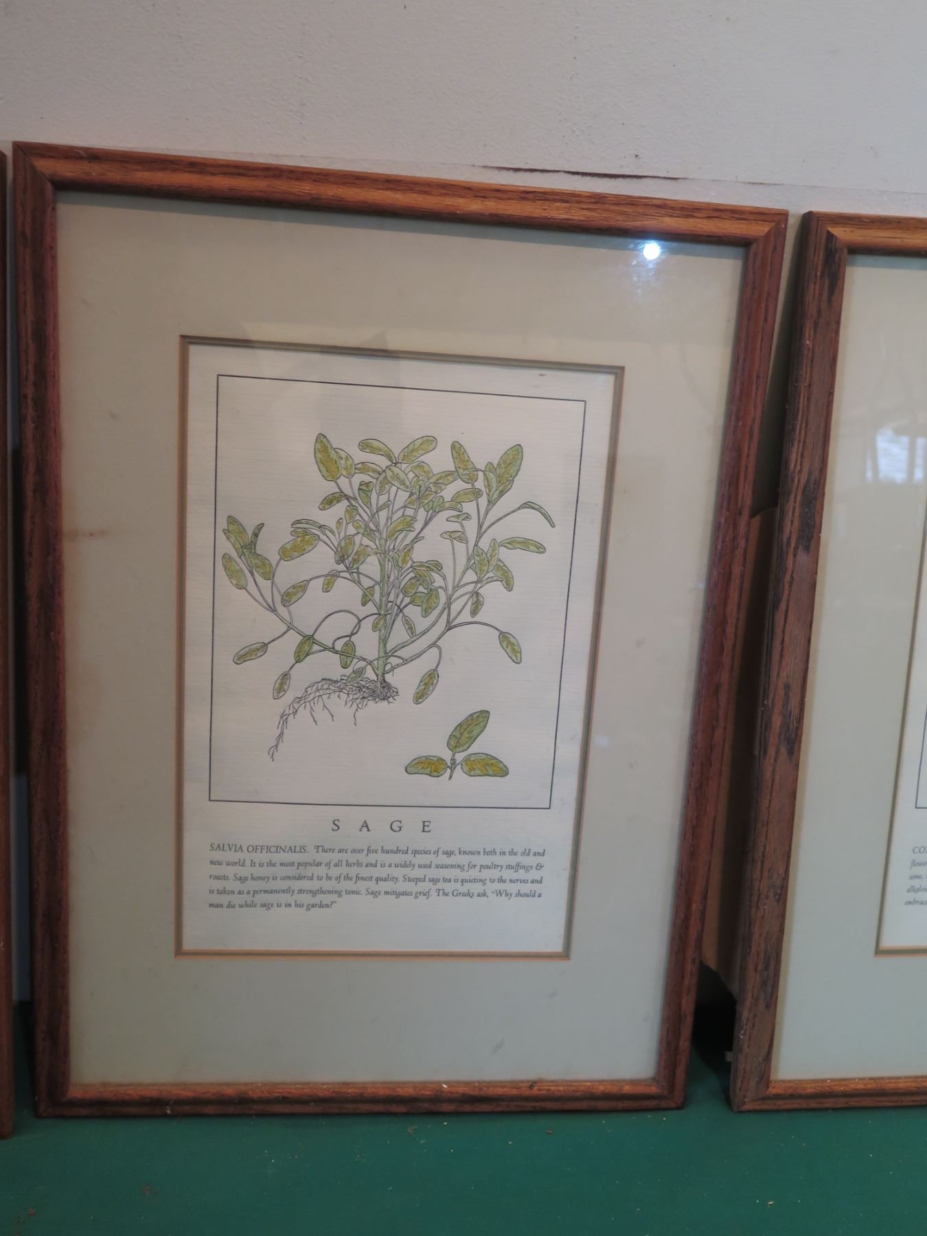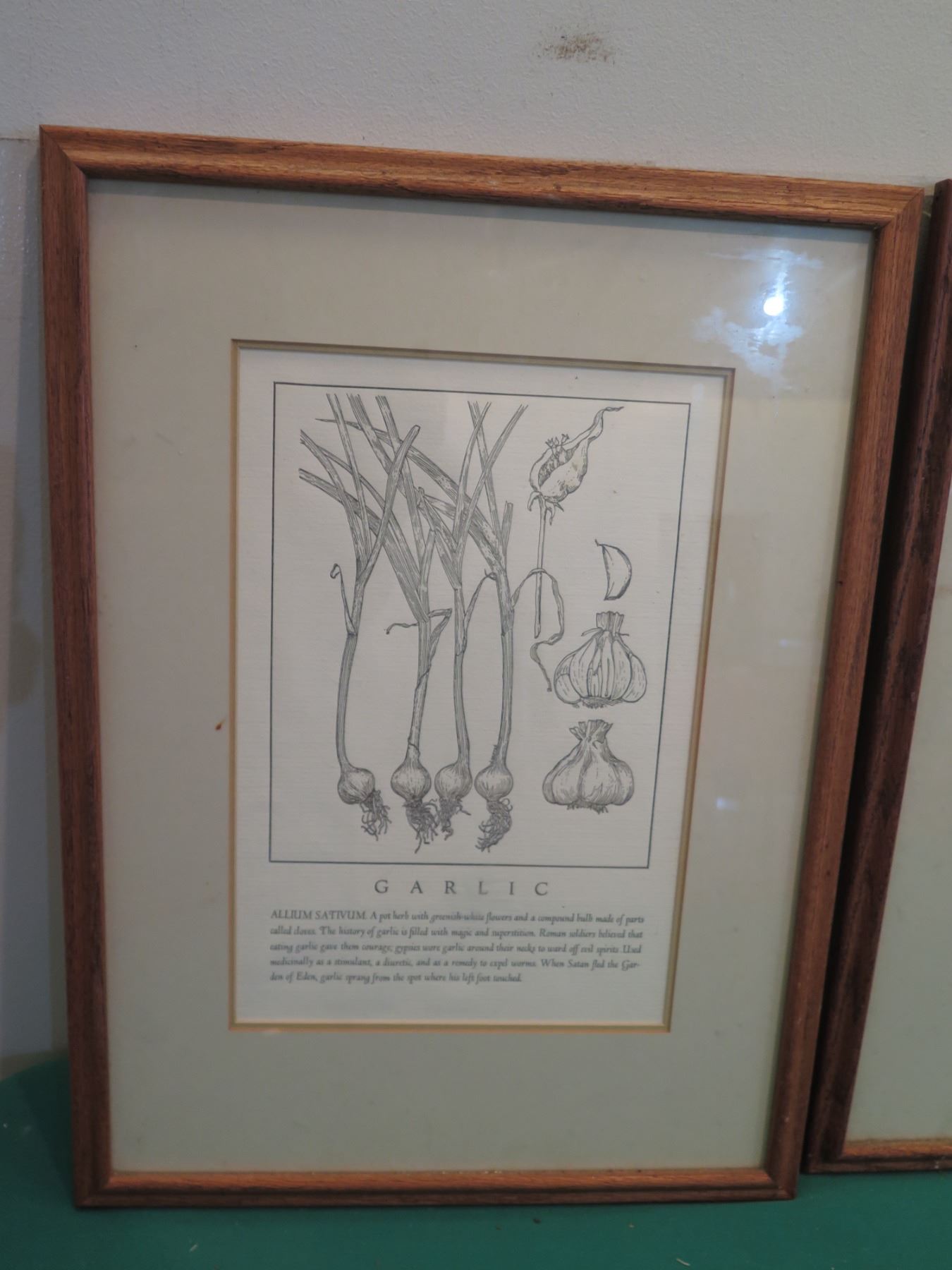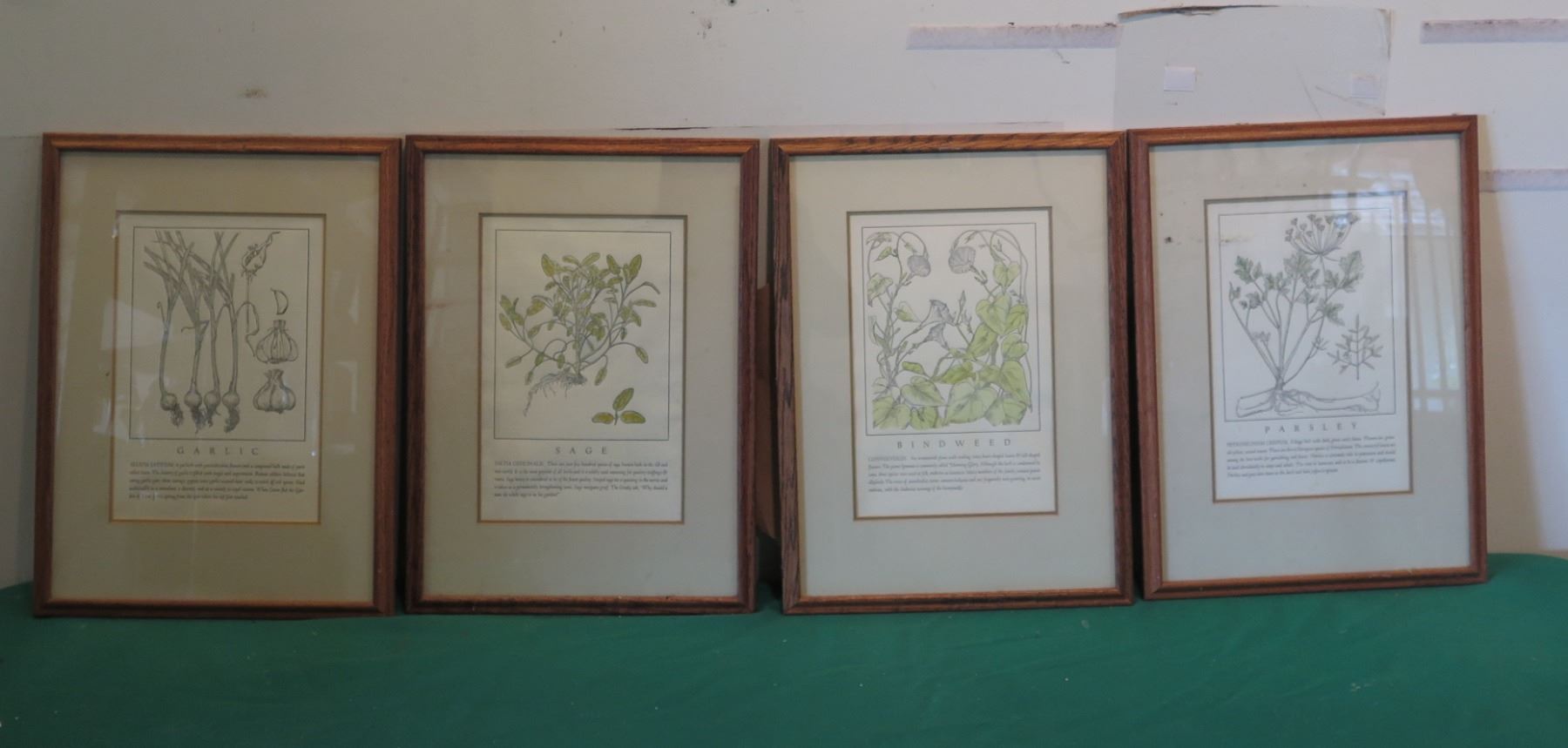Qty 4 Framed & Matted Artwork: Garlic, Sage, Bindweed & Parsley