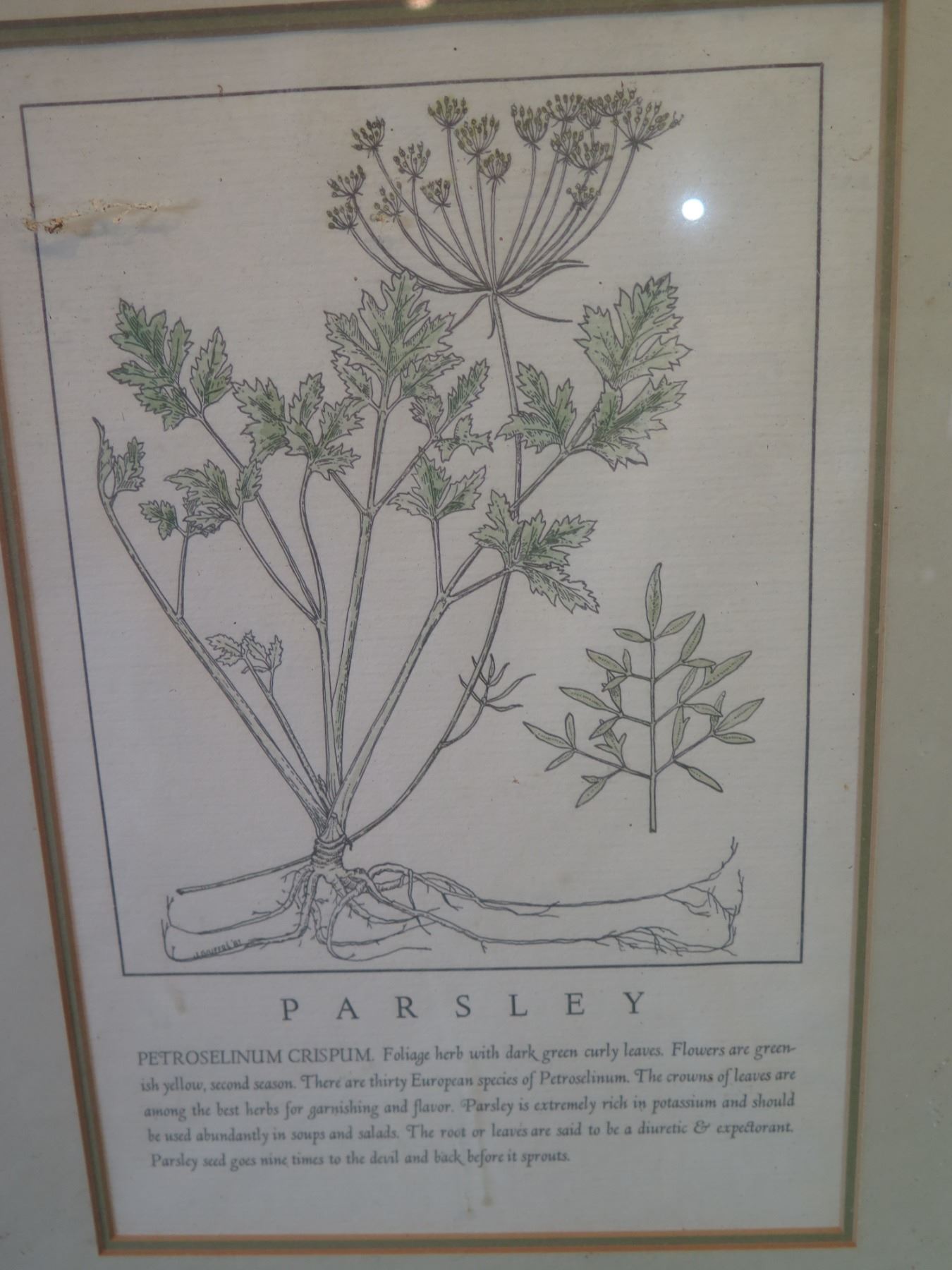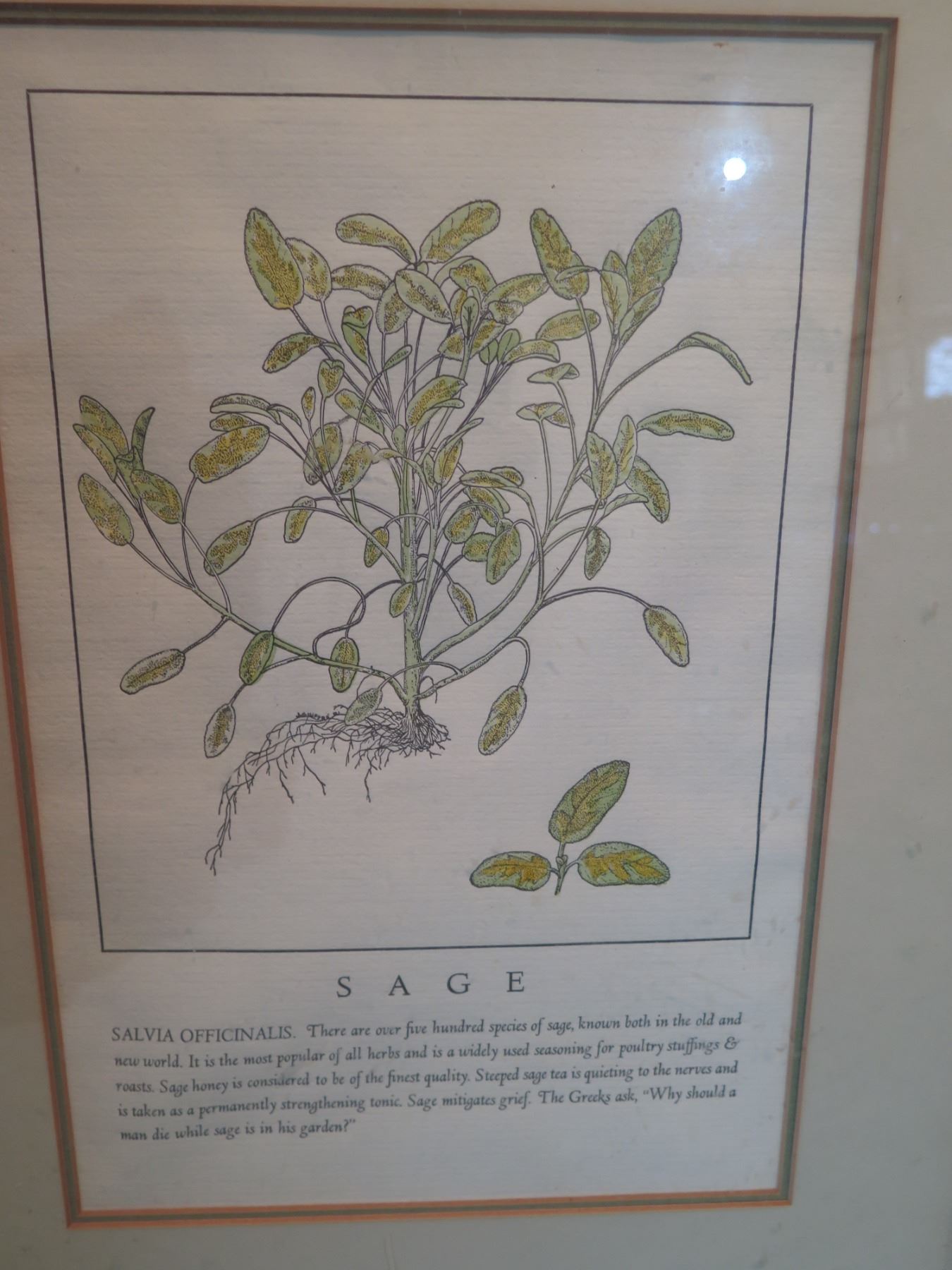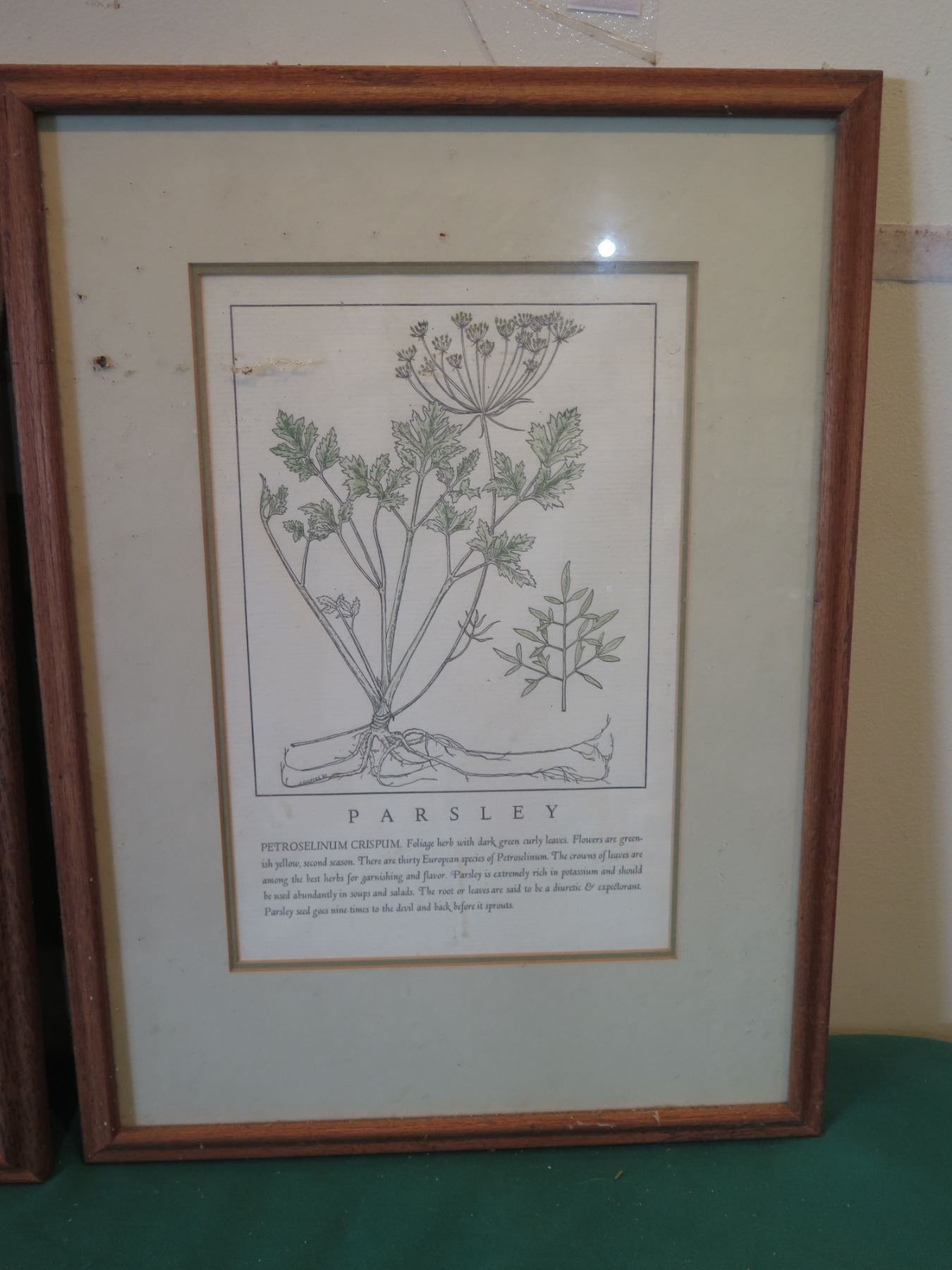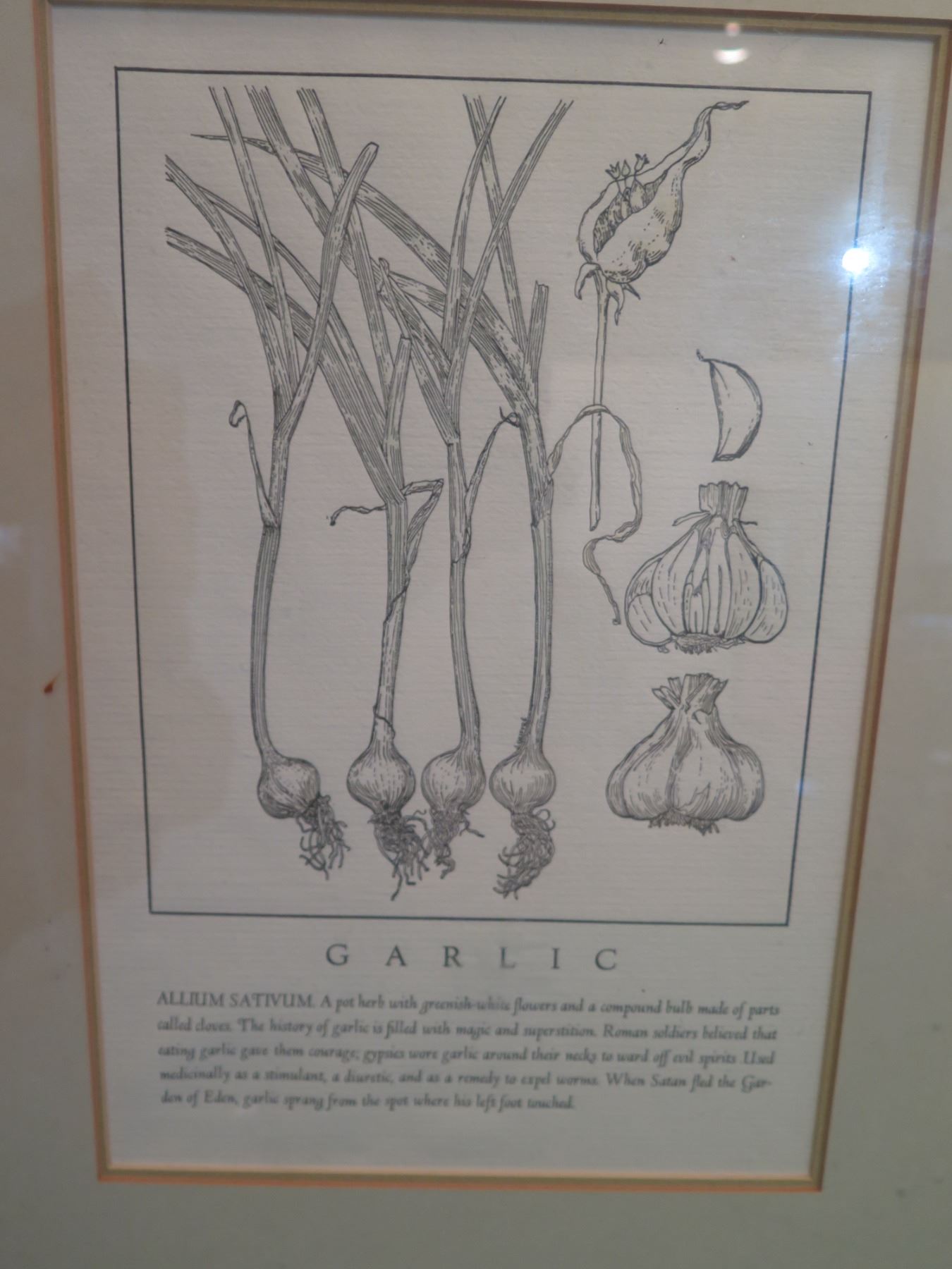 Qty 4 Framed & Matted Artwork: Garlic, Sage, Bindweed & Parsley