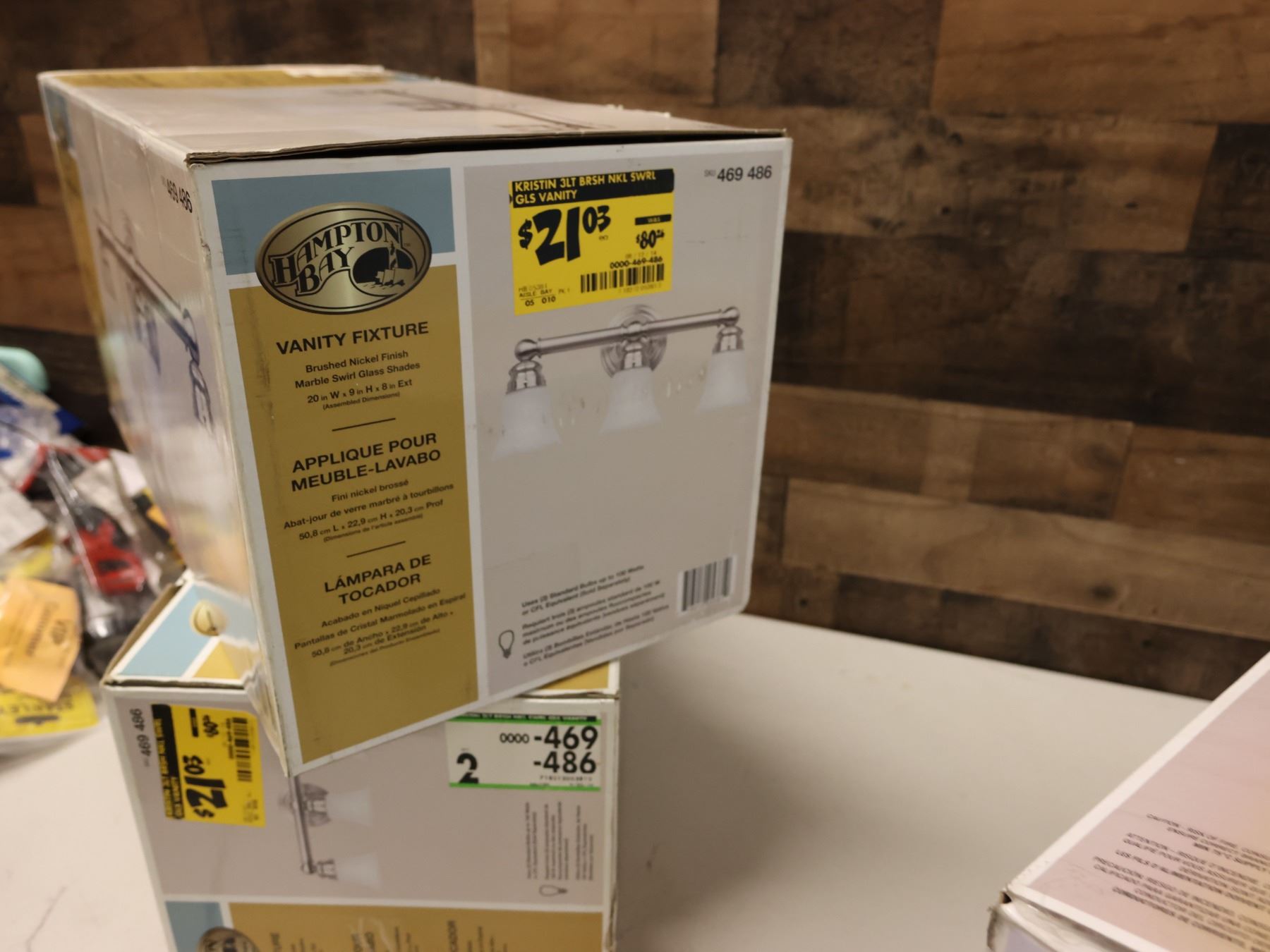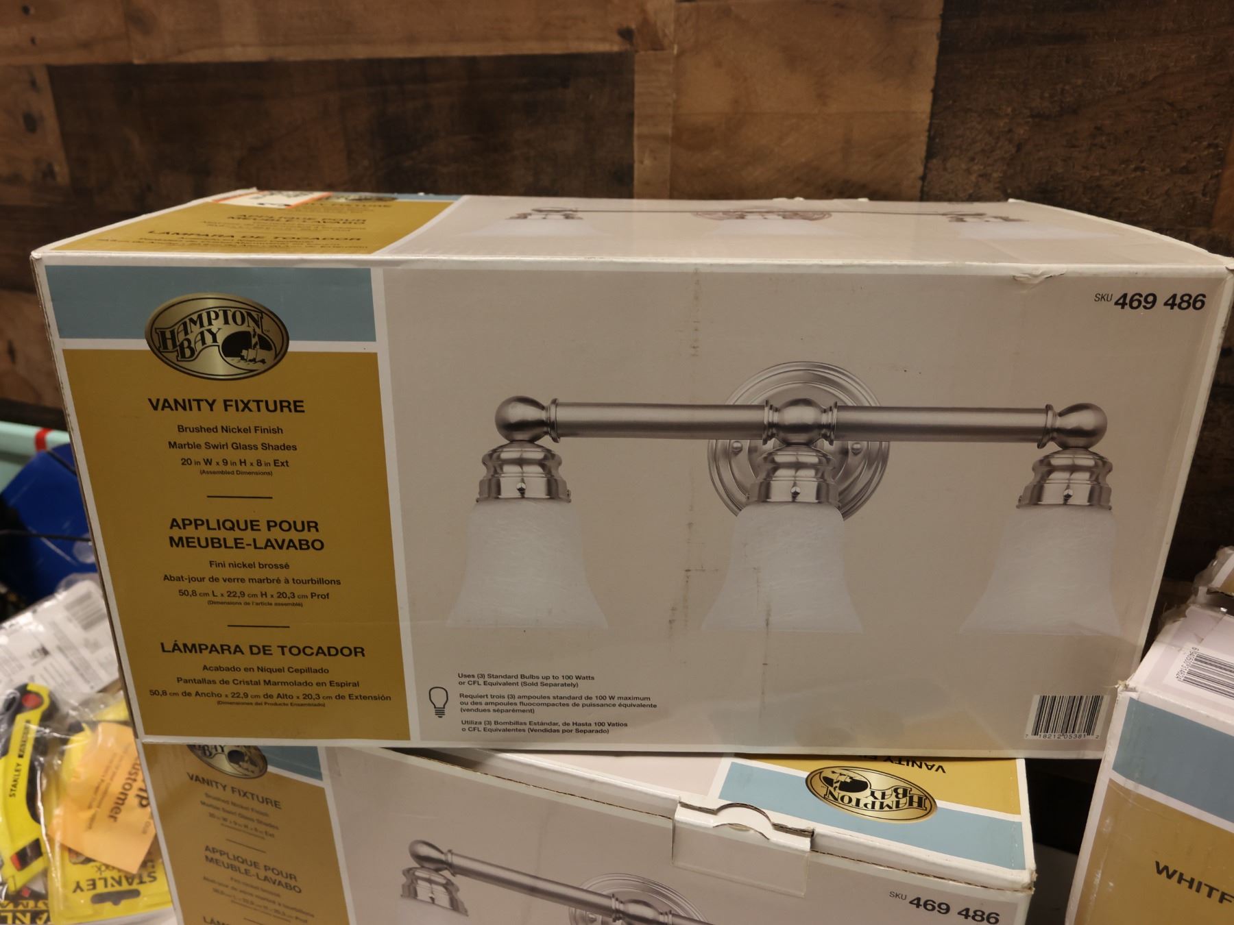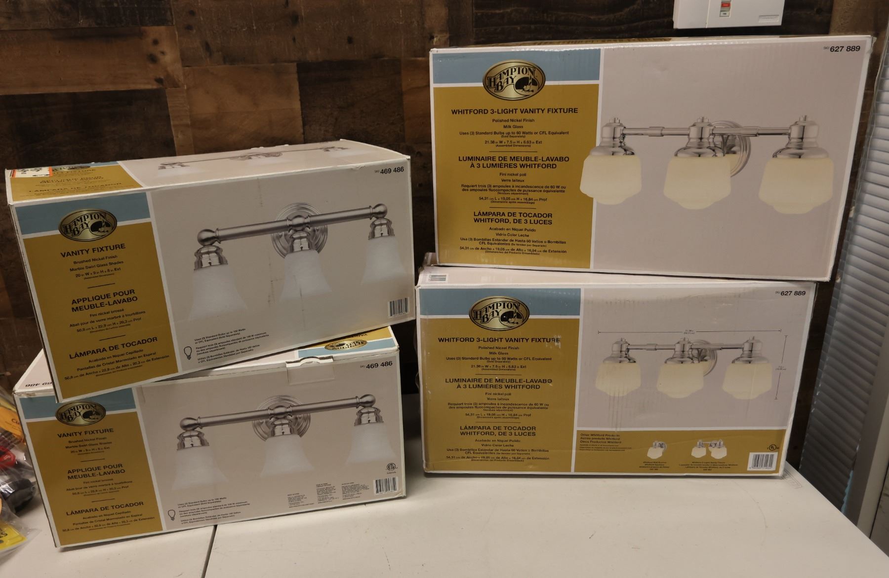 Qty 4 Hampton Bay 3-Light Vanity Fixtures in Boxes