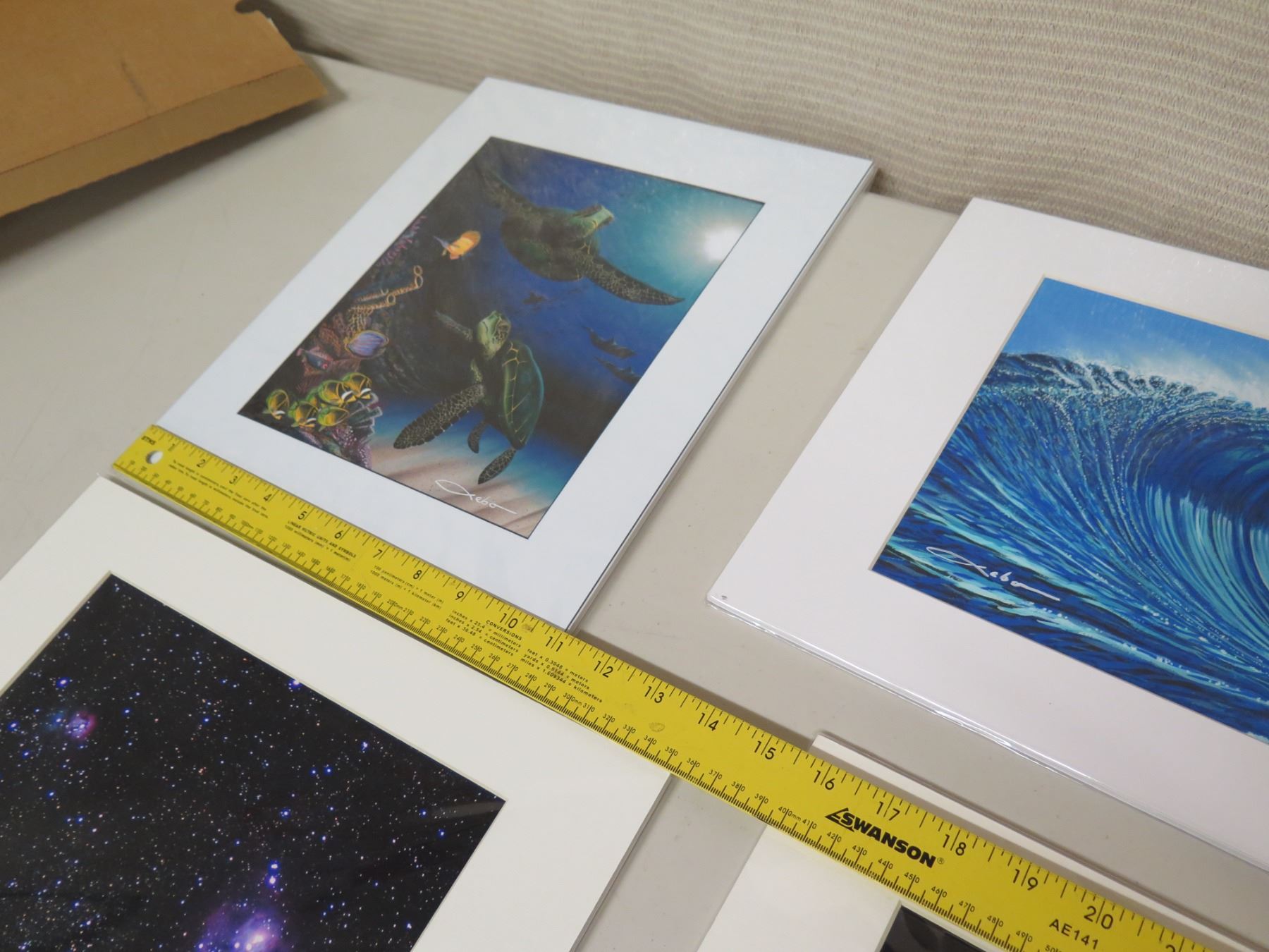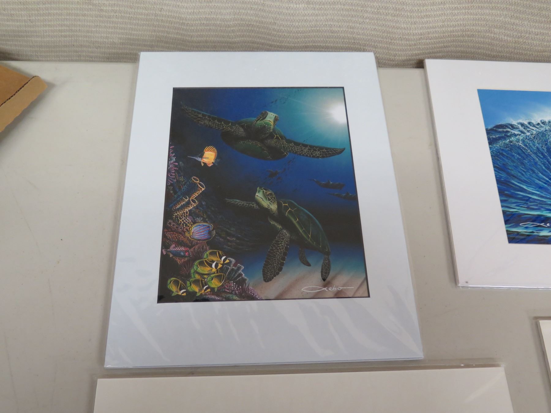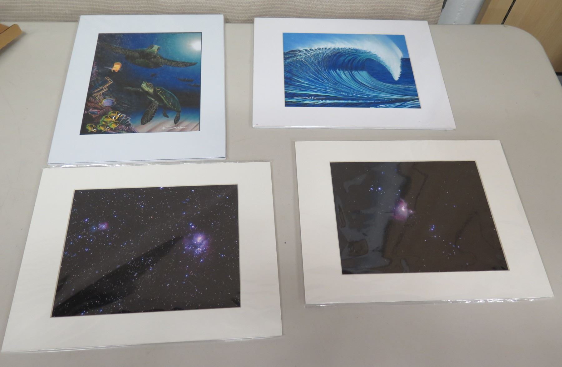 Qty 4 Hawaiian Print Art Work Signed by Artist: Underwater Scene, Big Wave, etc