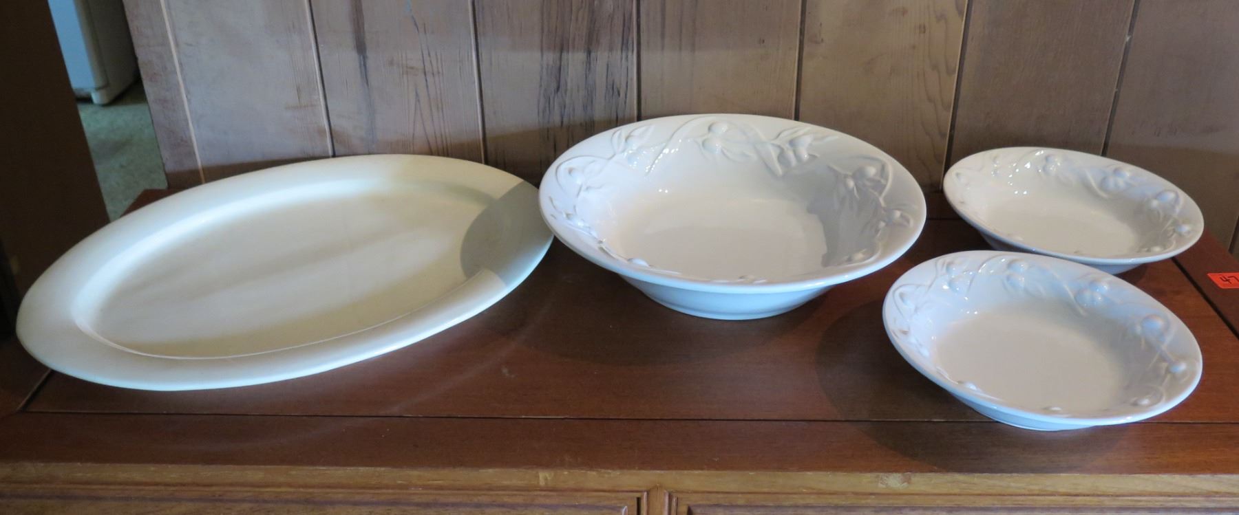 Qty 4 Ipatrizi White Ceramic Serving Dishes, Platter 21", Bowls 15" Dia