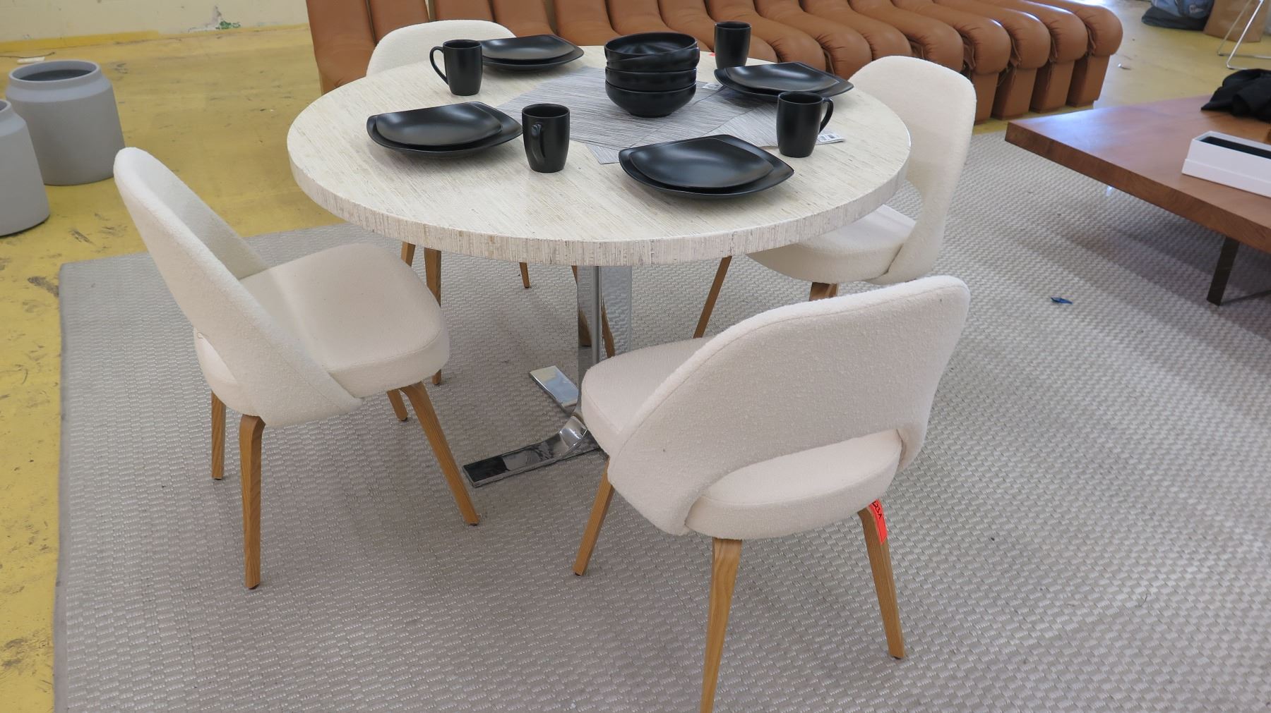 Qty 4 Knoll 72CW White Upholstered Open-Backed Chairs