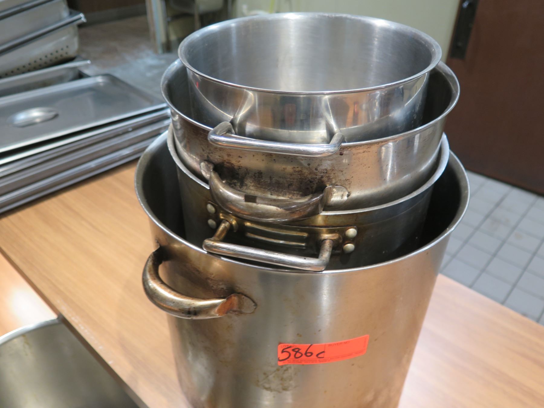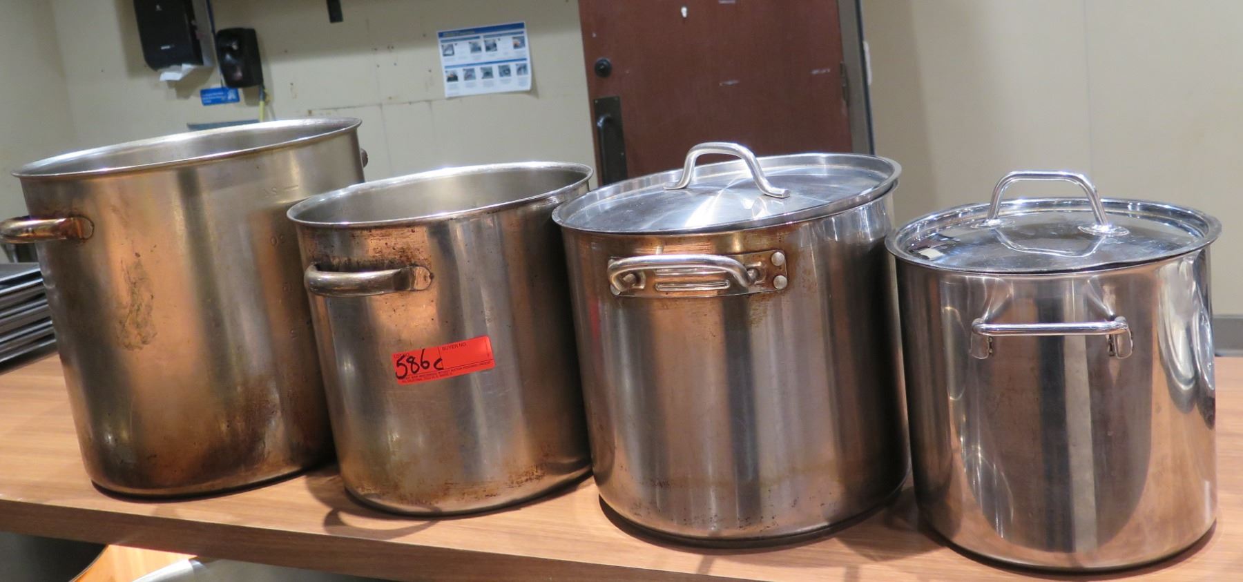 Qty 4 Large Stock Pots (Some Lids), Misc Sizes