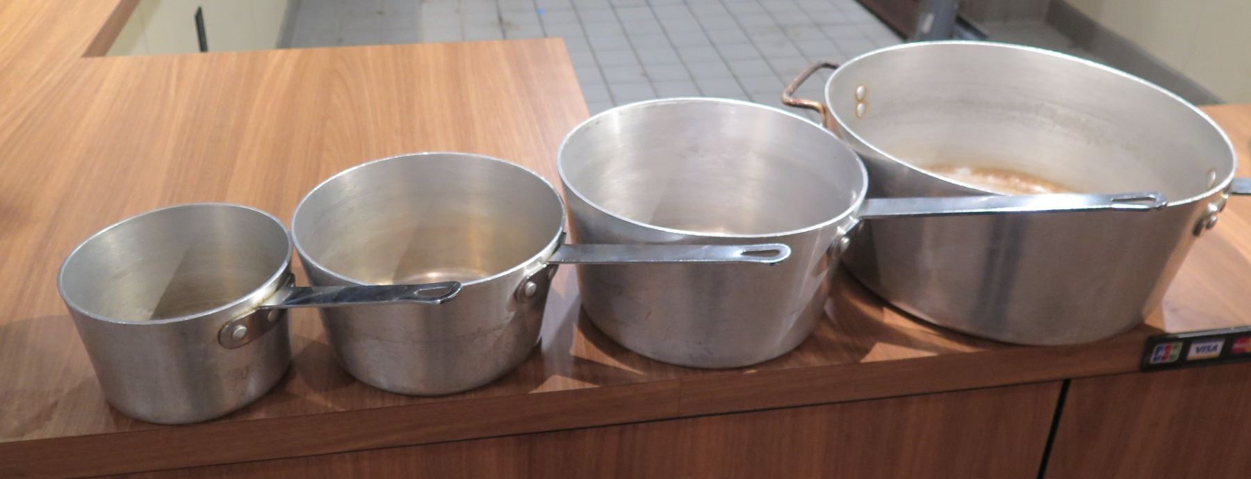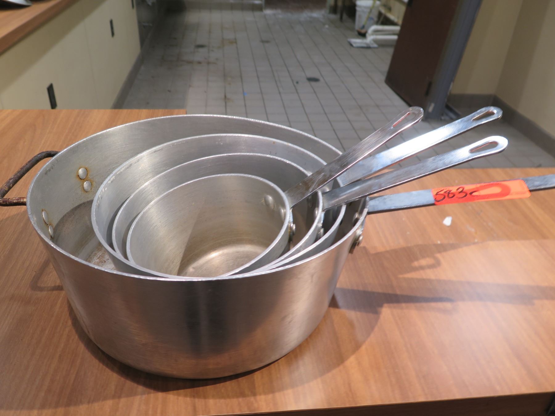 Qty 4 Large Thermalloy Sauce Pots w/ Handles, Misc Sizes