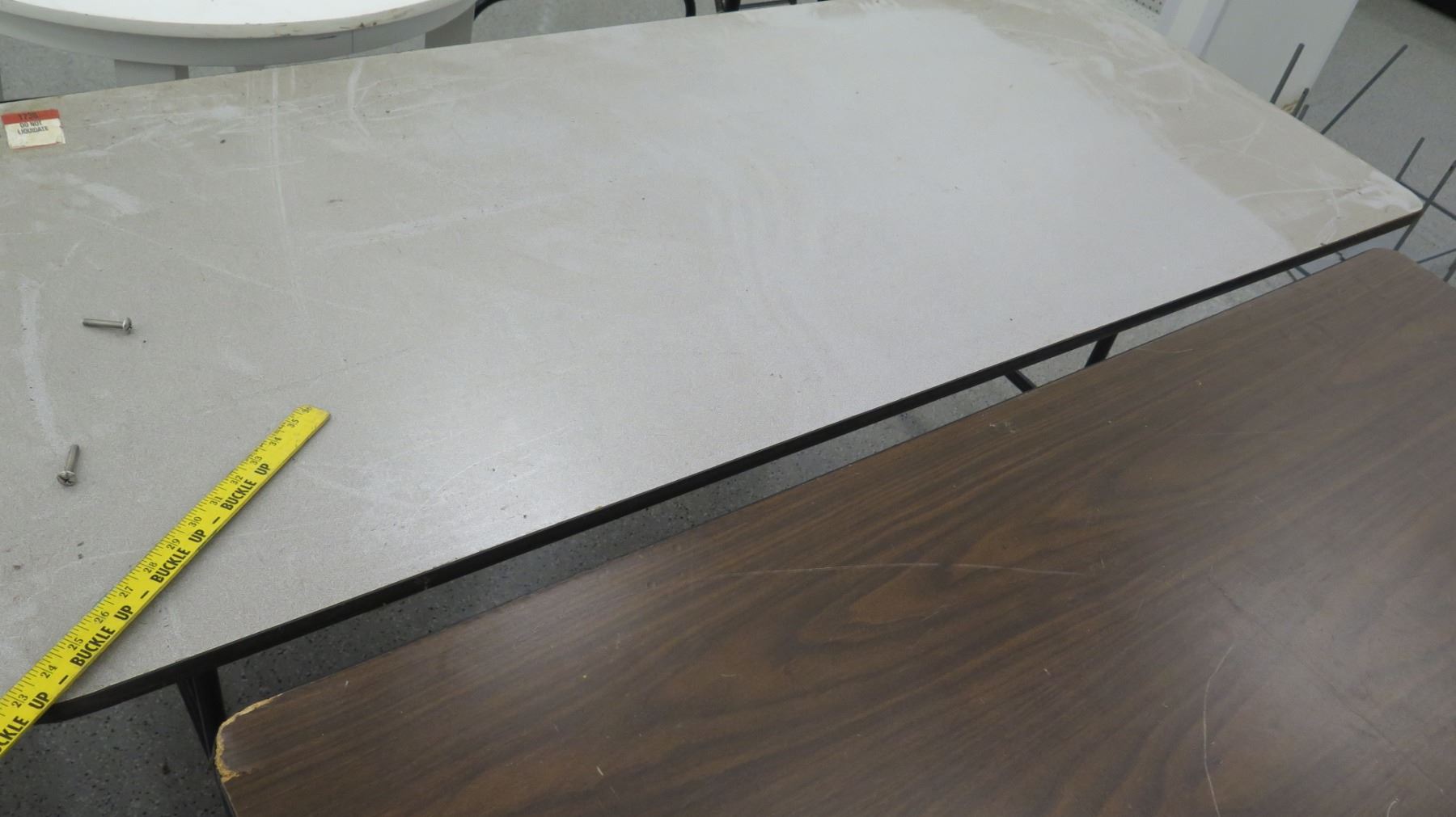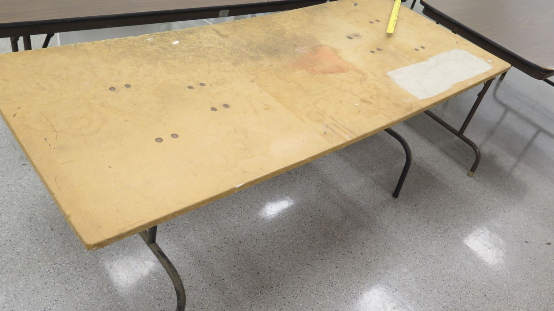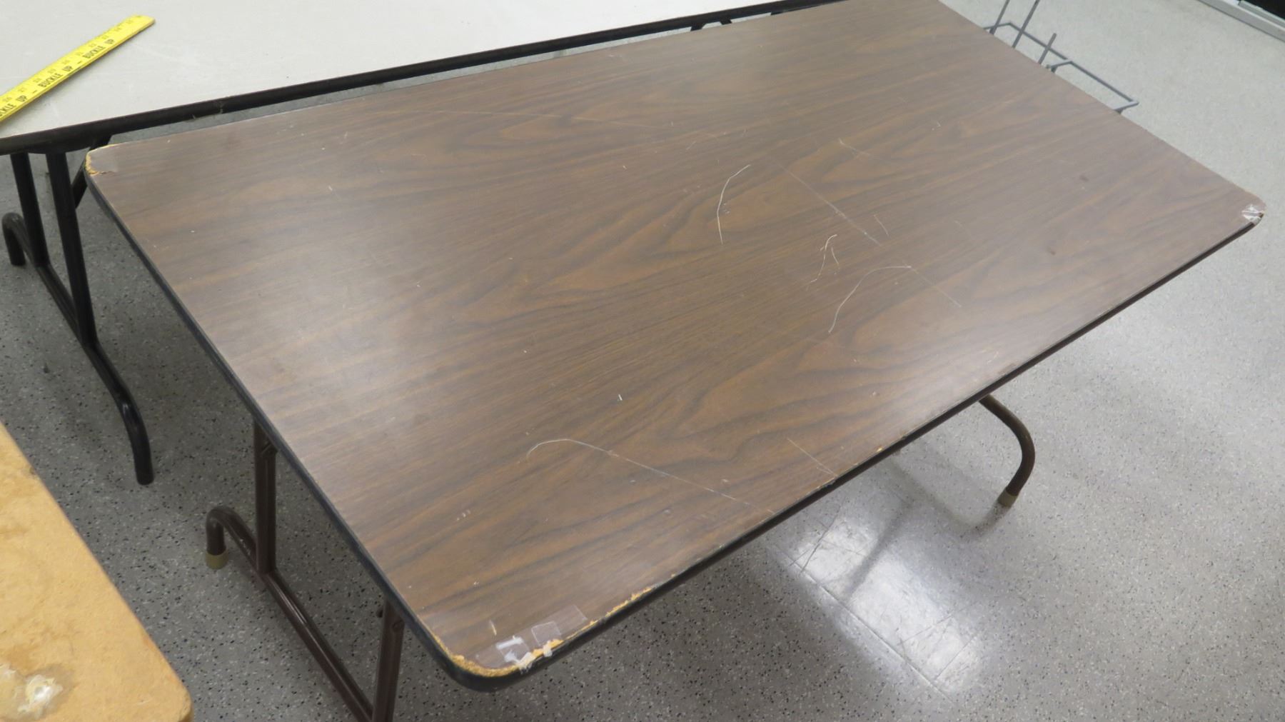 Qty 4 Long Folding Tables - 2 Wood Finish / 1 White / 1 Pressed Wood