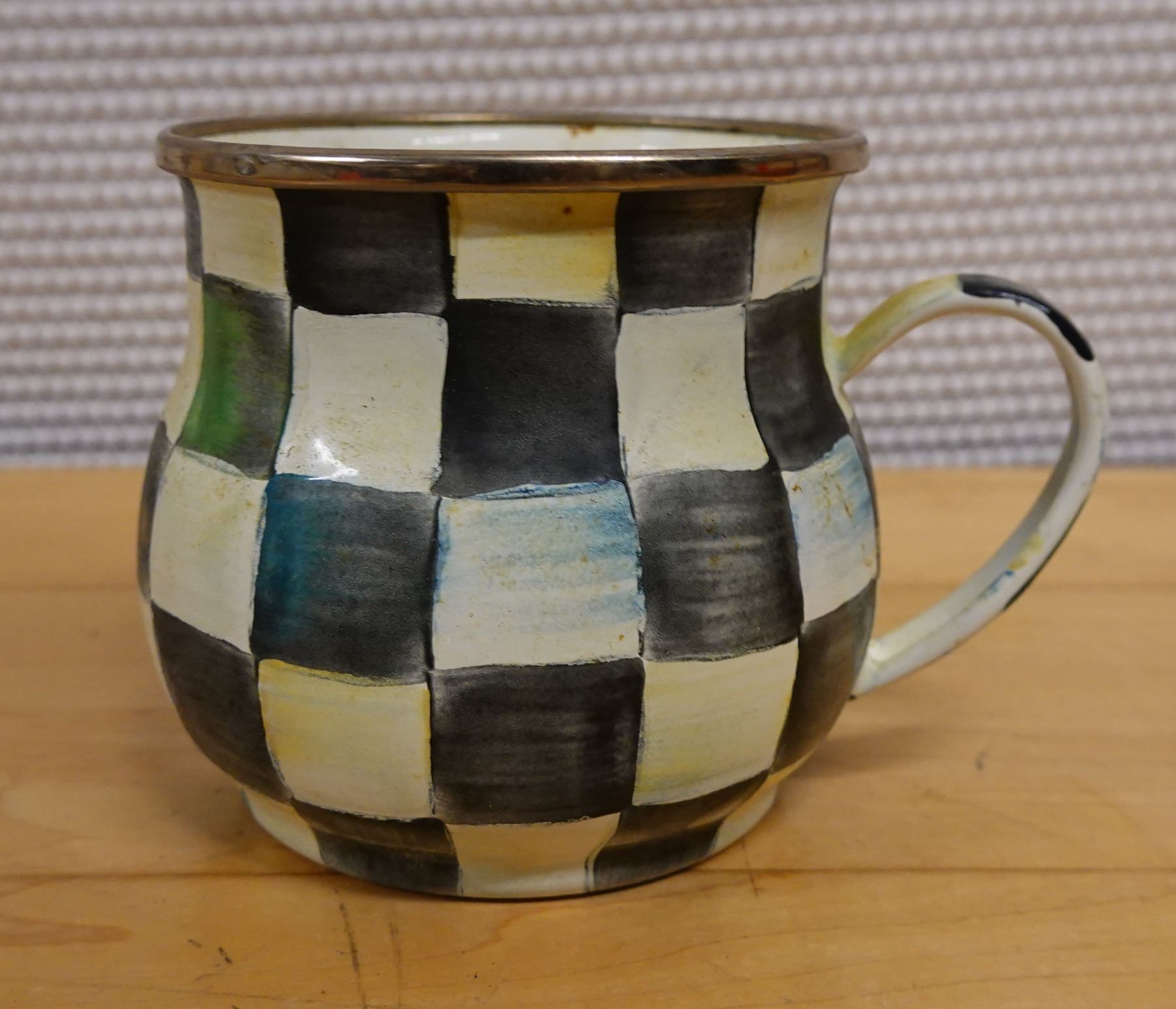 Qty 4 Mackenzie Childs Courtly Check Coffee Mug 3.5" Dia, 3.75"H