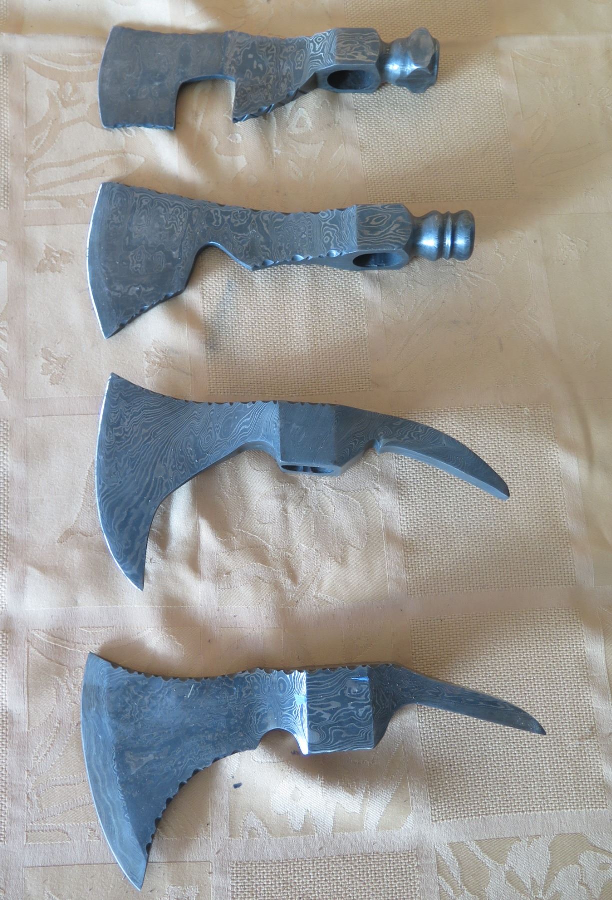 Qty 4 Metal Tomahawk Blades w/ Damascus Steel