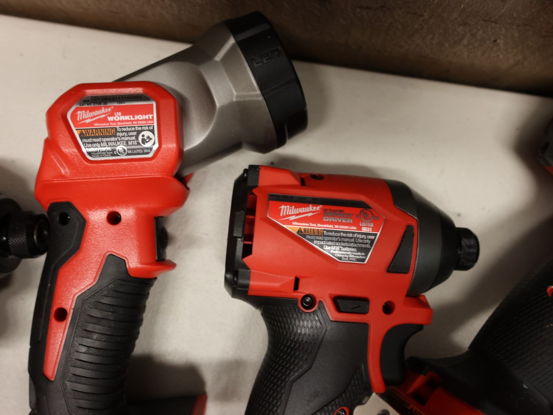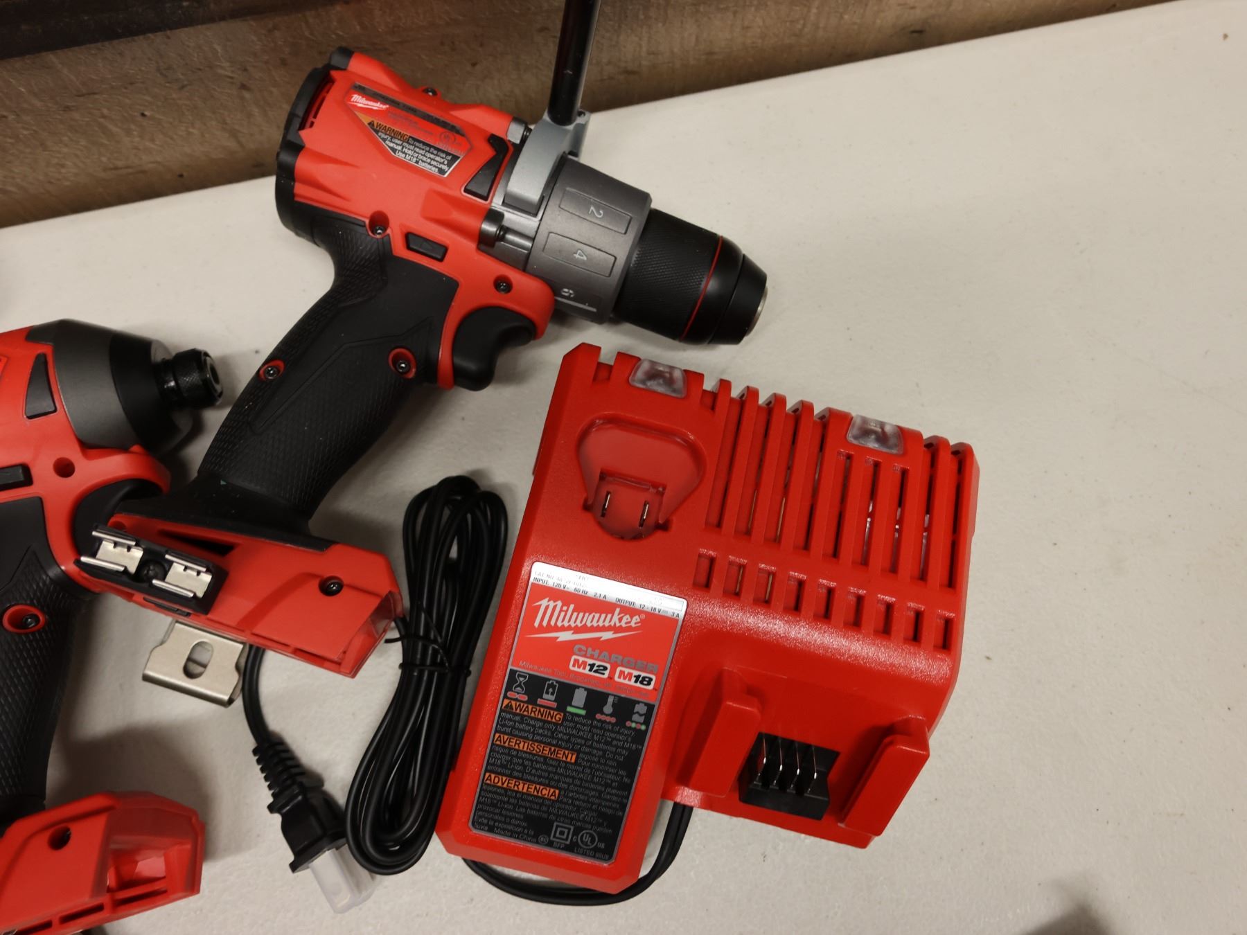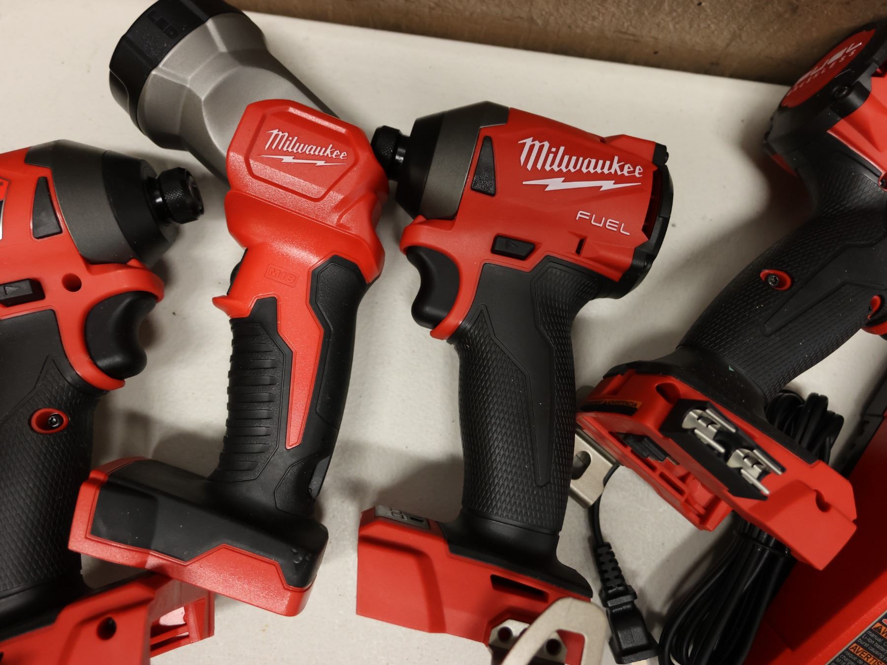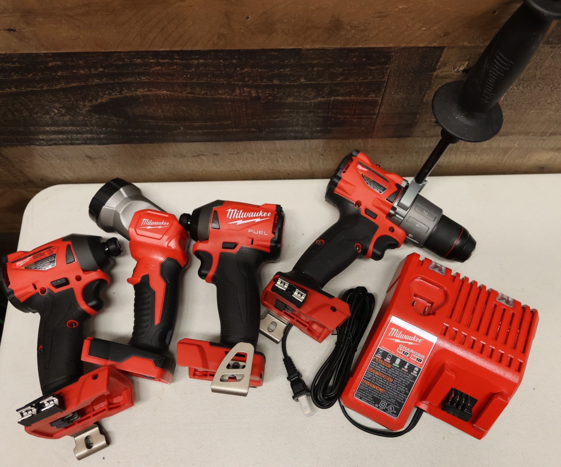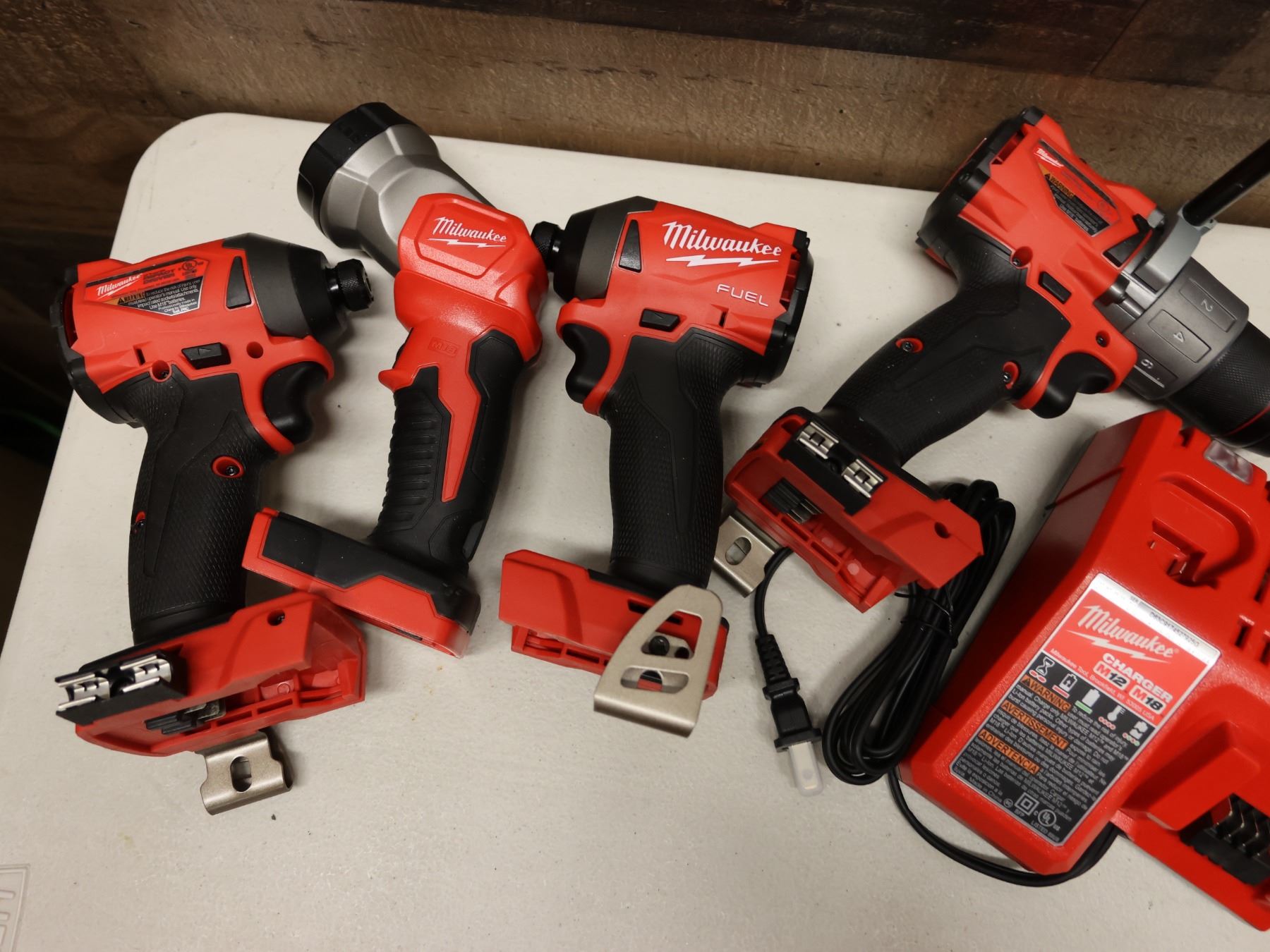 Qty 4 Milwaukee Power Tools & 1 Charger: 2 Impact Drivers, Hammer Drill/Driver & Worklight