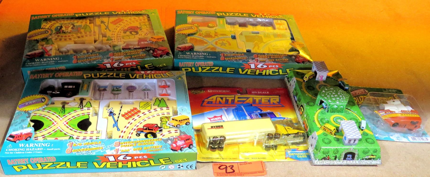 Qty 4 Misc Puzzle Vehicles, Ant Eater Ryder Semi Truck, etc