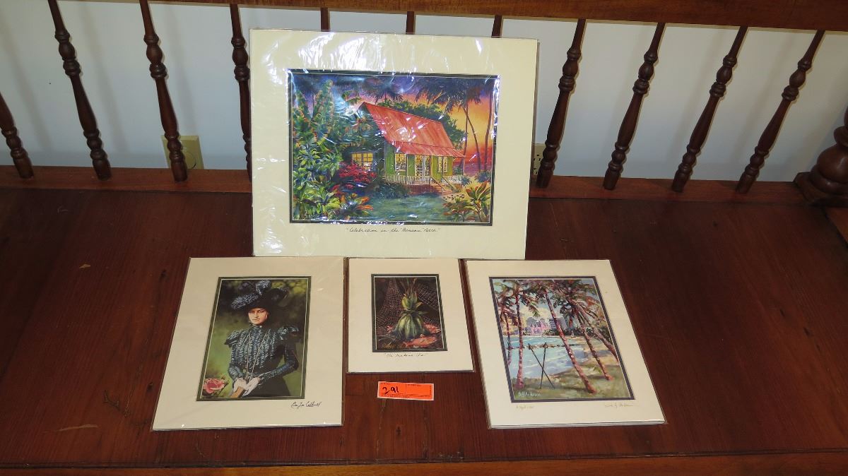 Qty 4 Modern Hawiian Prints: Eric Caldwell (Princess Kaiulani), "Celebration in the Banana Patch", etc. 20x16, 14x11, etc.