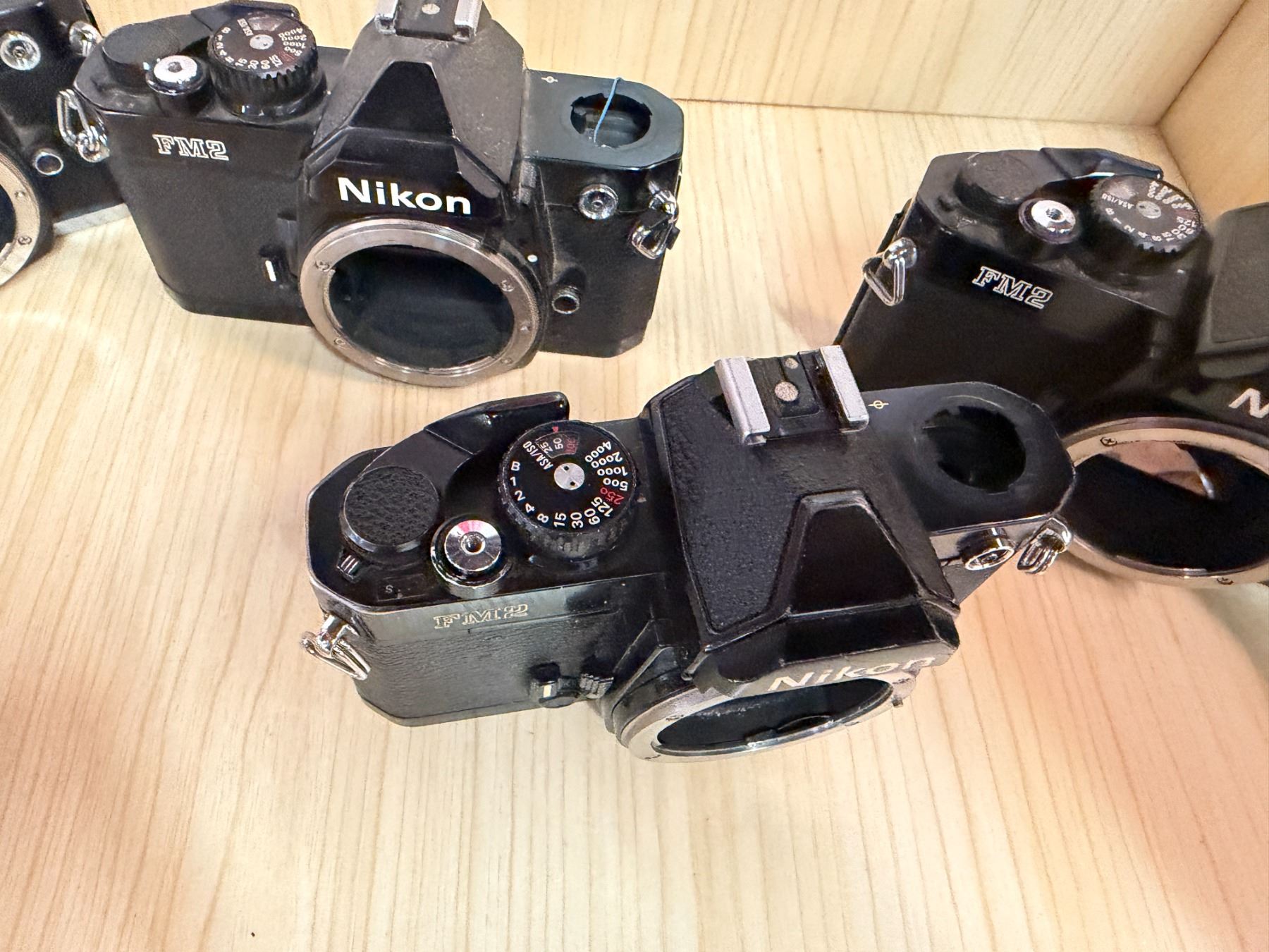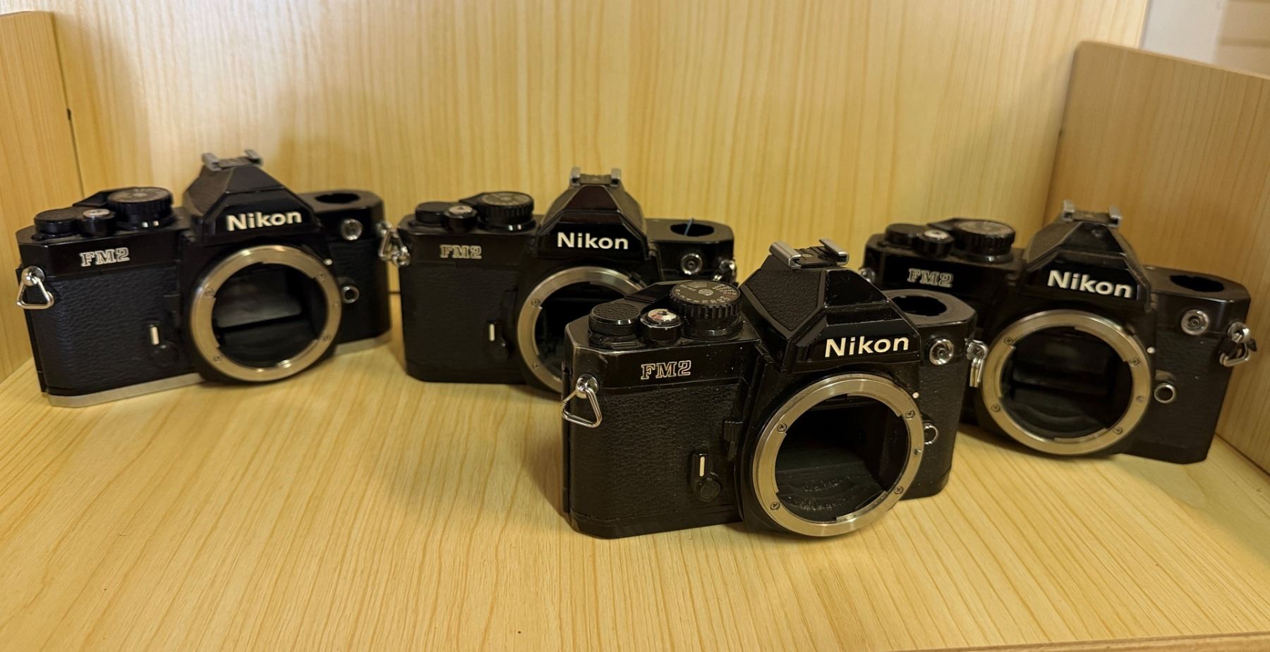 Qty 4 Nikon FM2 35mm Film SLR Camera Bodies (for parts or repair)