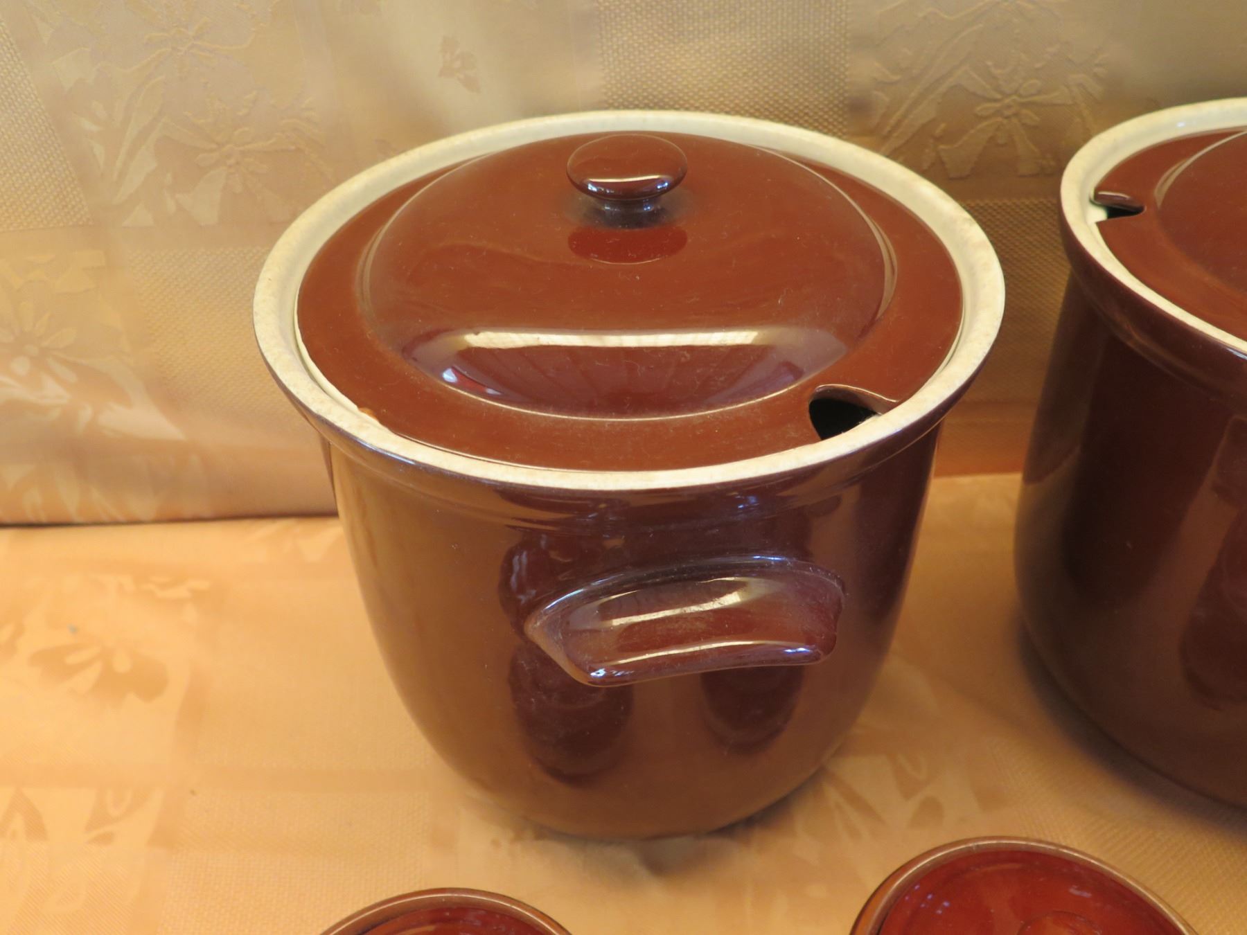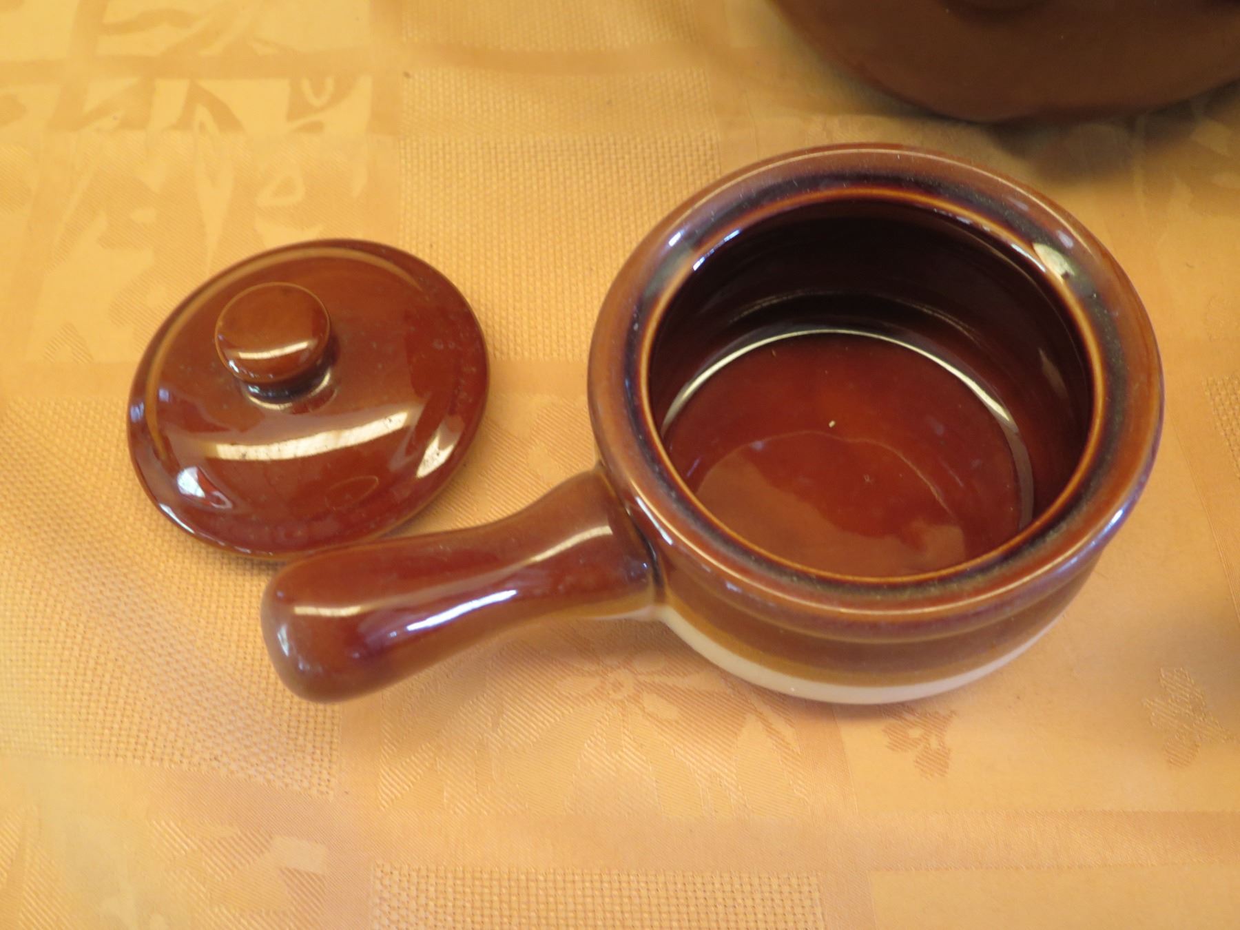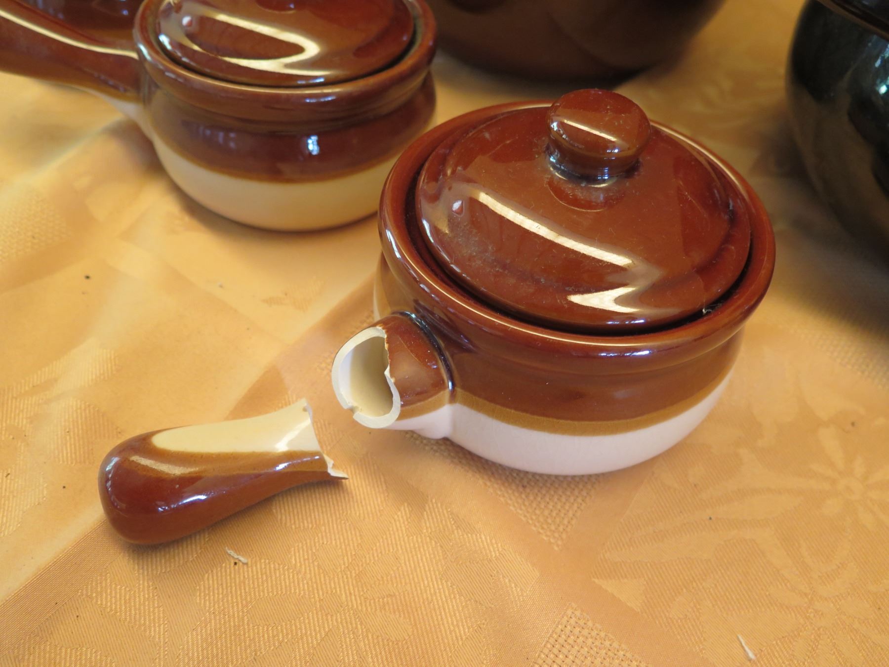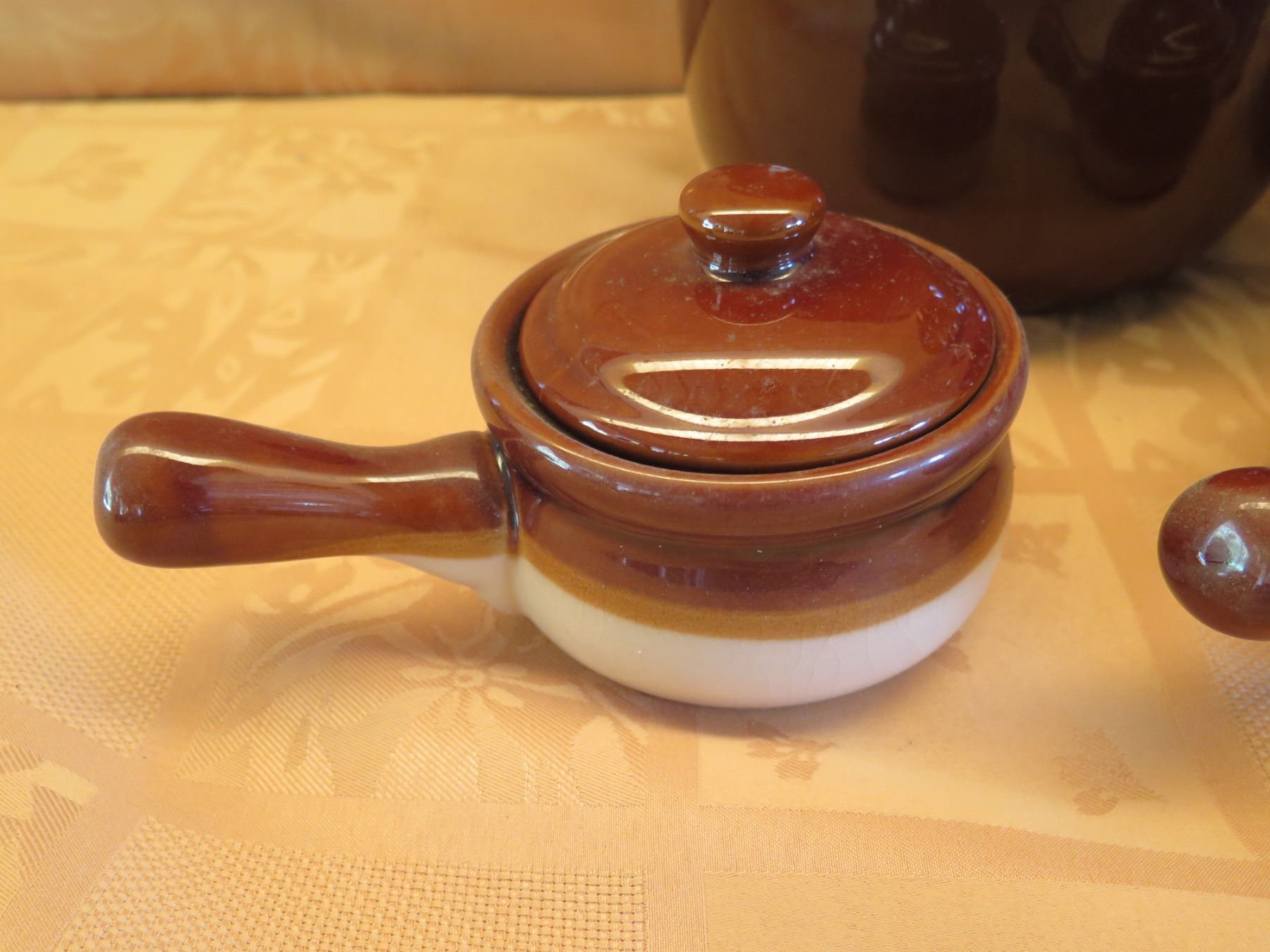 Qty 4 Onion Soup Bowls & 3 Crocks w/ Lids