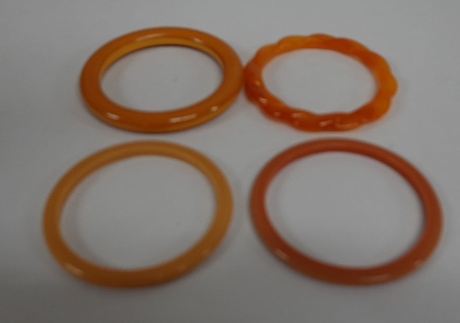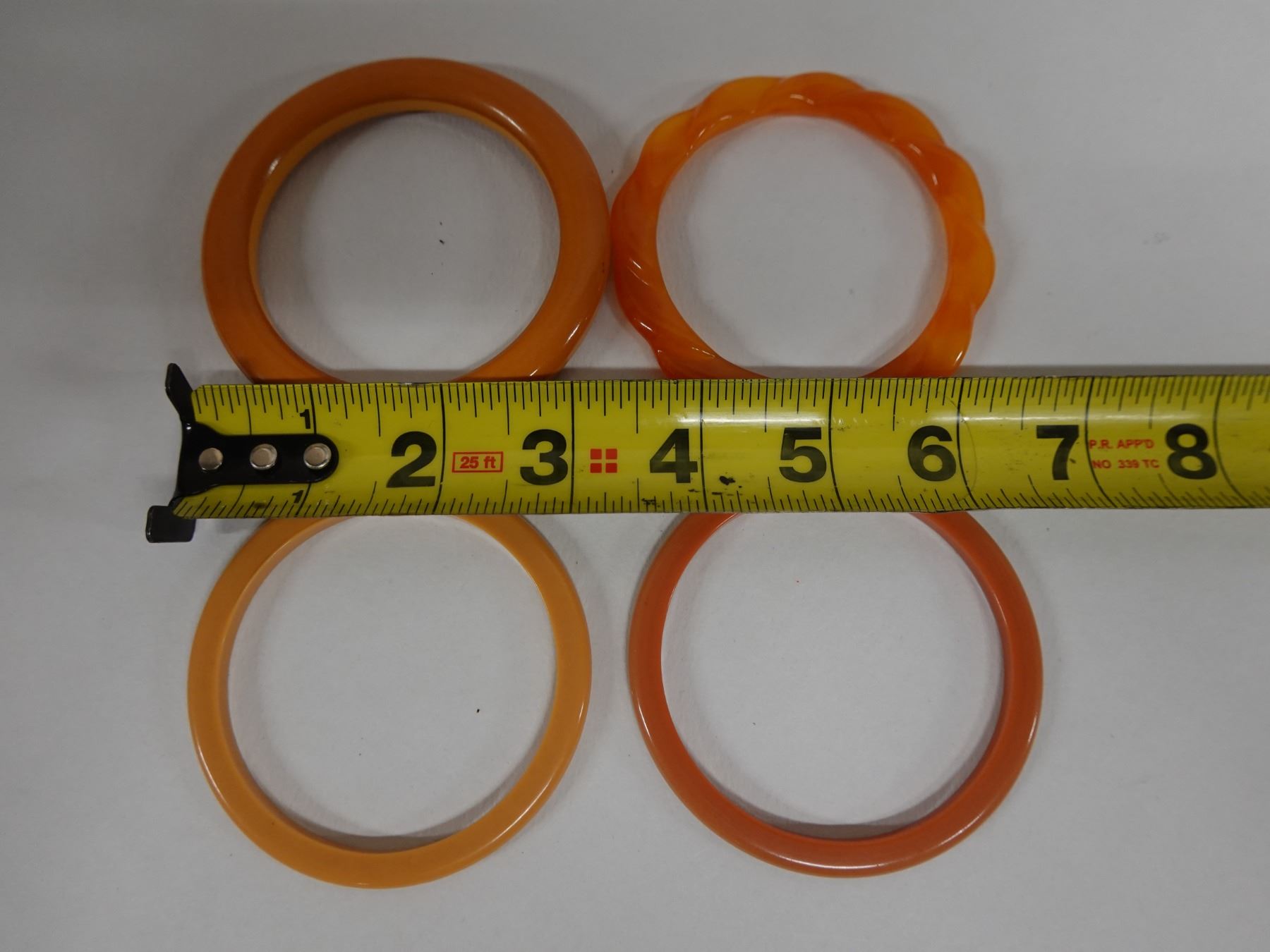 Qty 4 Orange Bangle Bracelets, Misc Styles & Sizes
