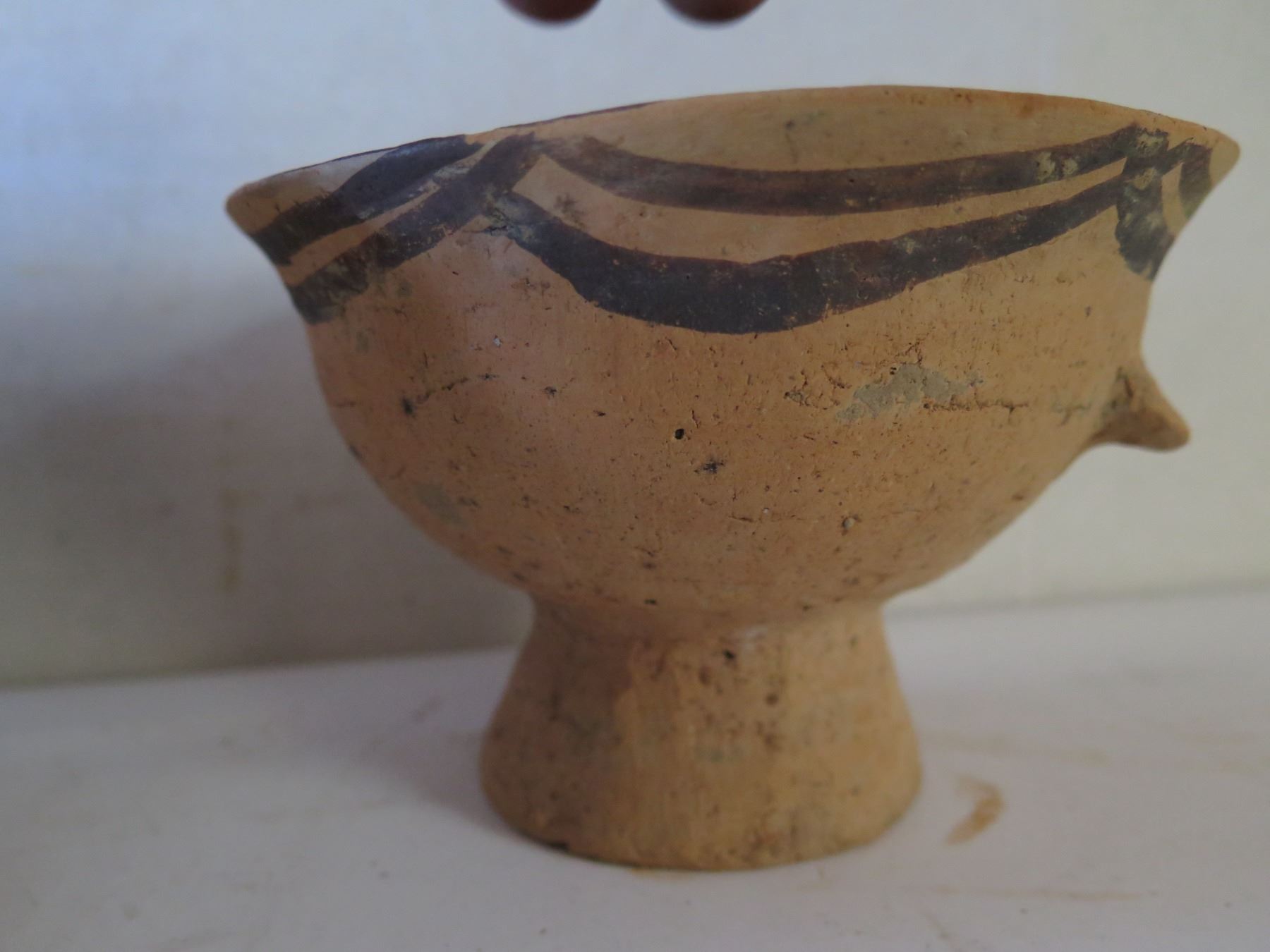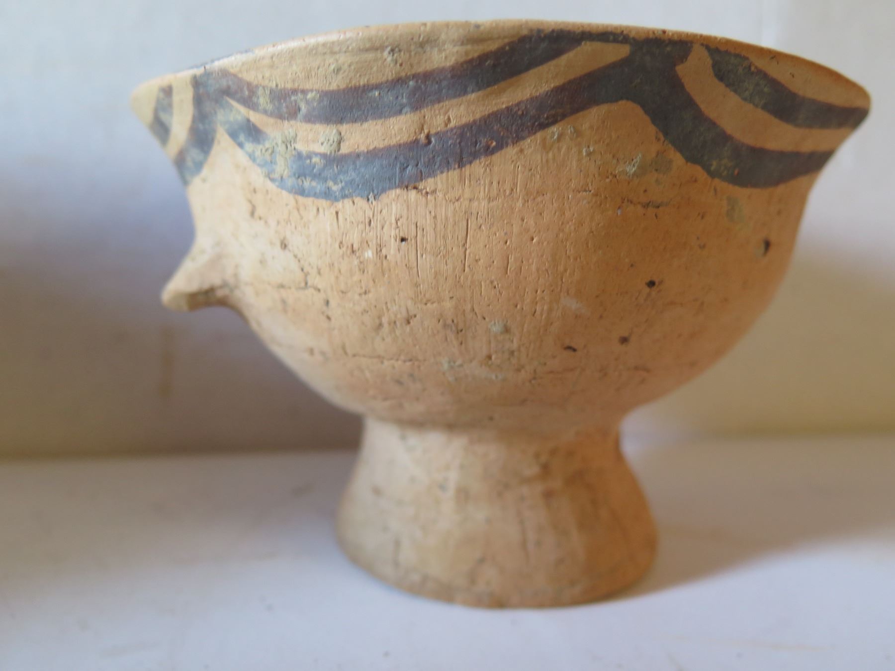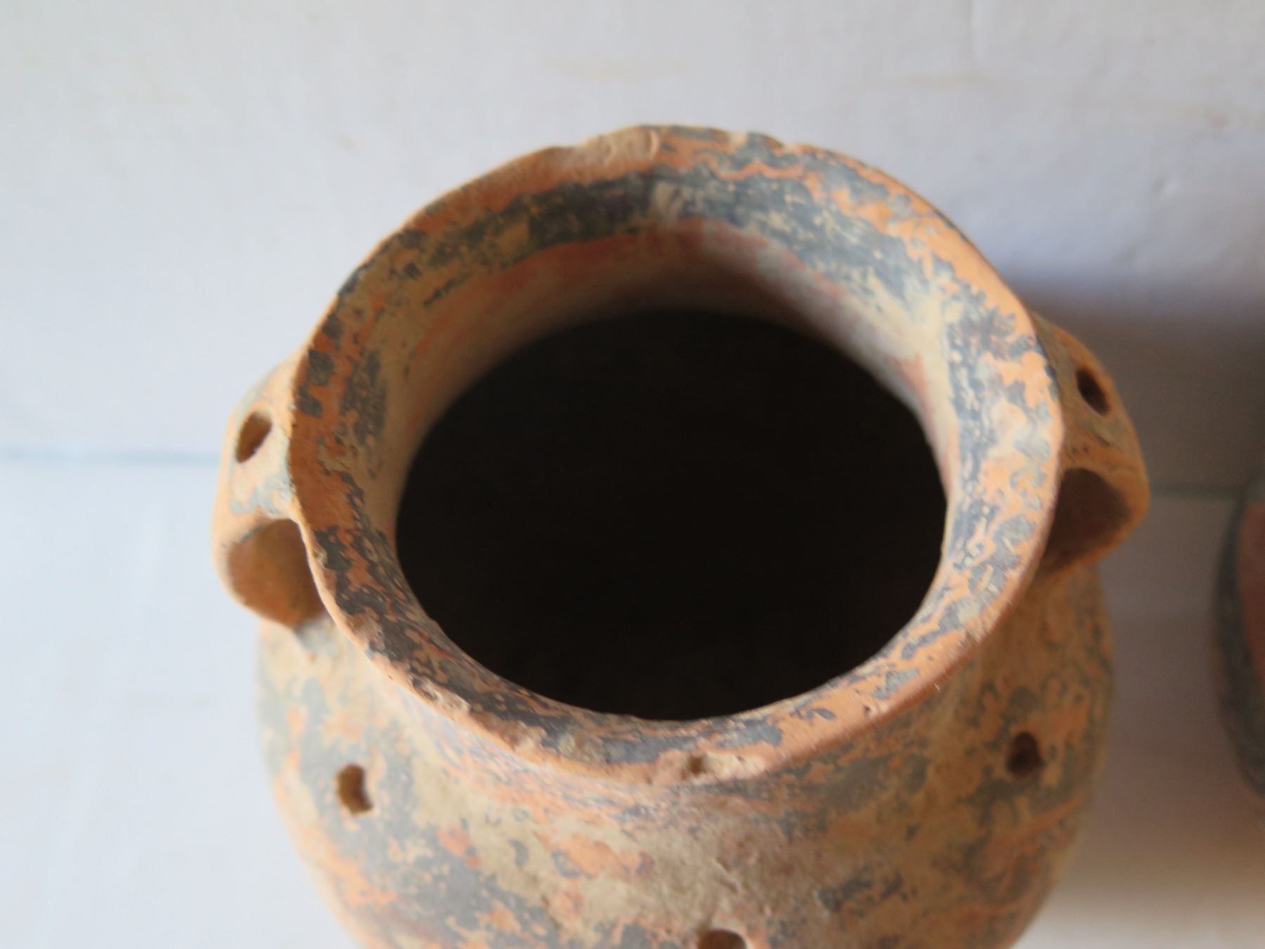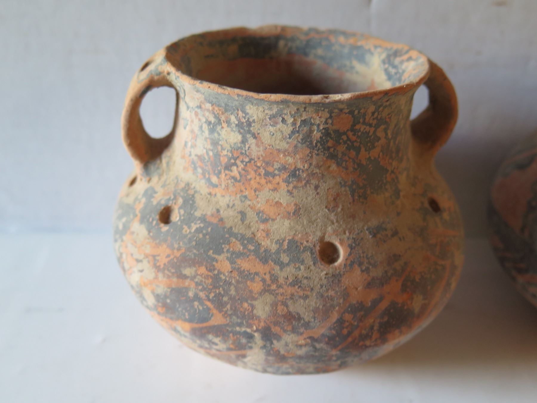Qty 4 Painted Clay Vases, 3 w/ Handles, Misc Sizes
