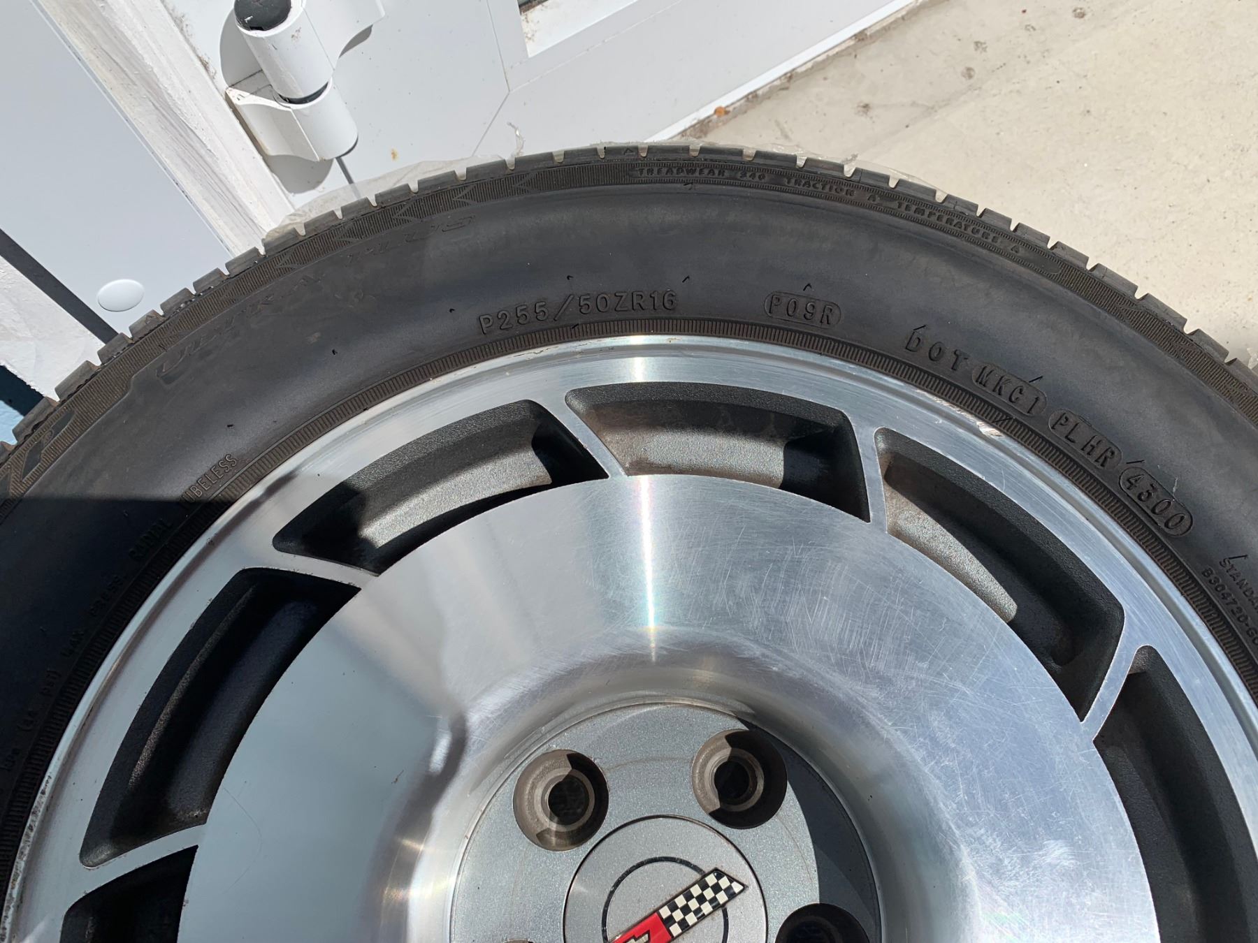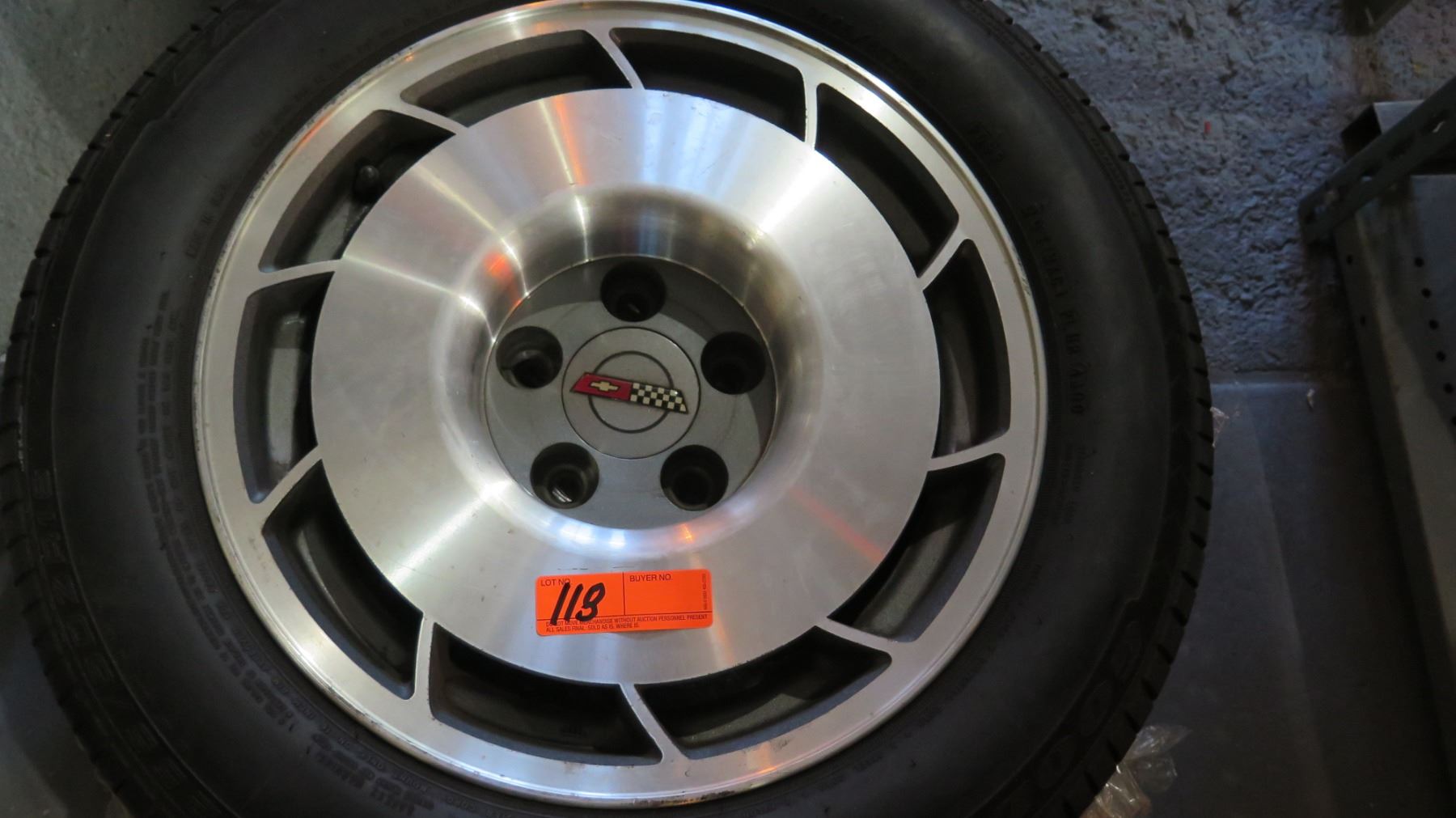 Qty 4 Performance Tires on Chevy Racing Rims. These are the original tires for the 1987 Corvette in Lot 30A.