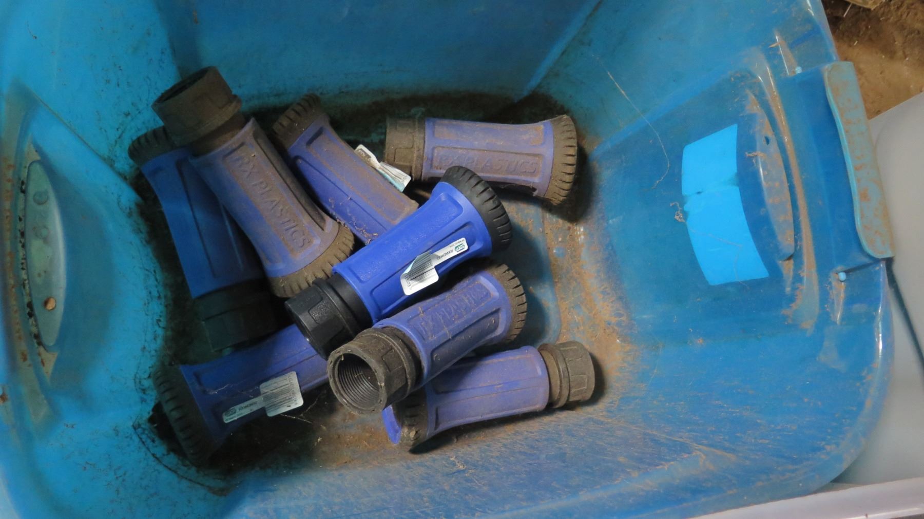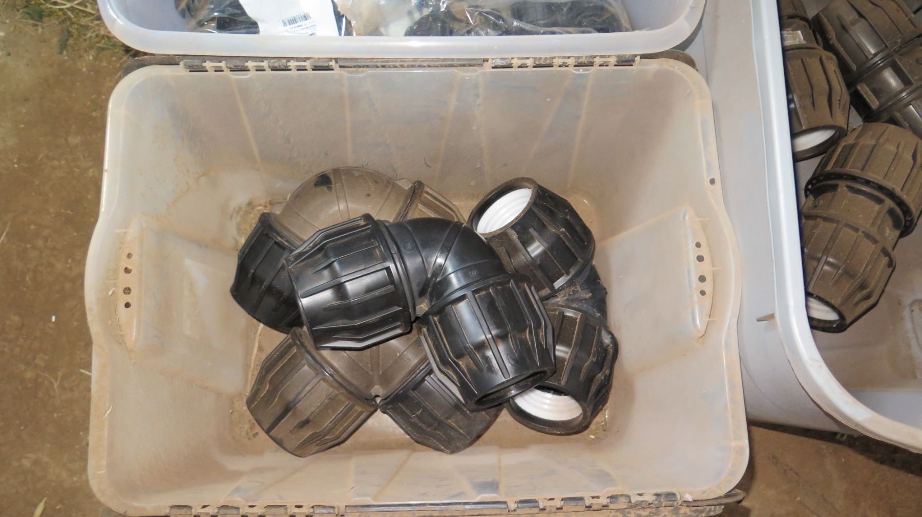 Qty 4 Plastic Tubs w/ PVC Fittings
