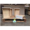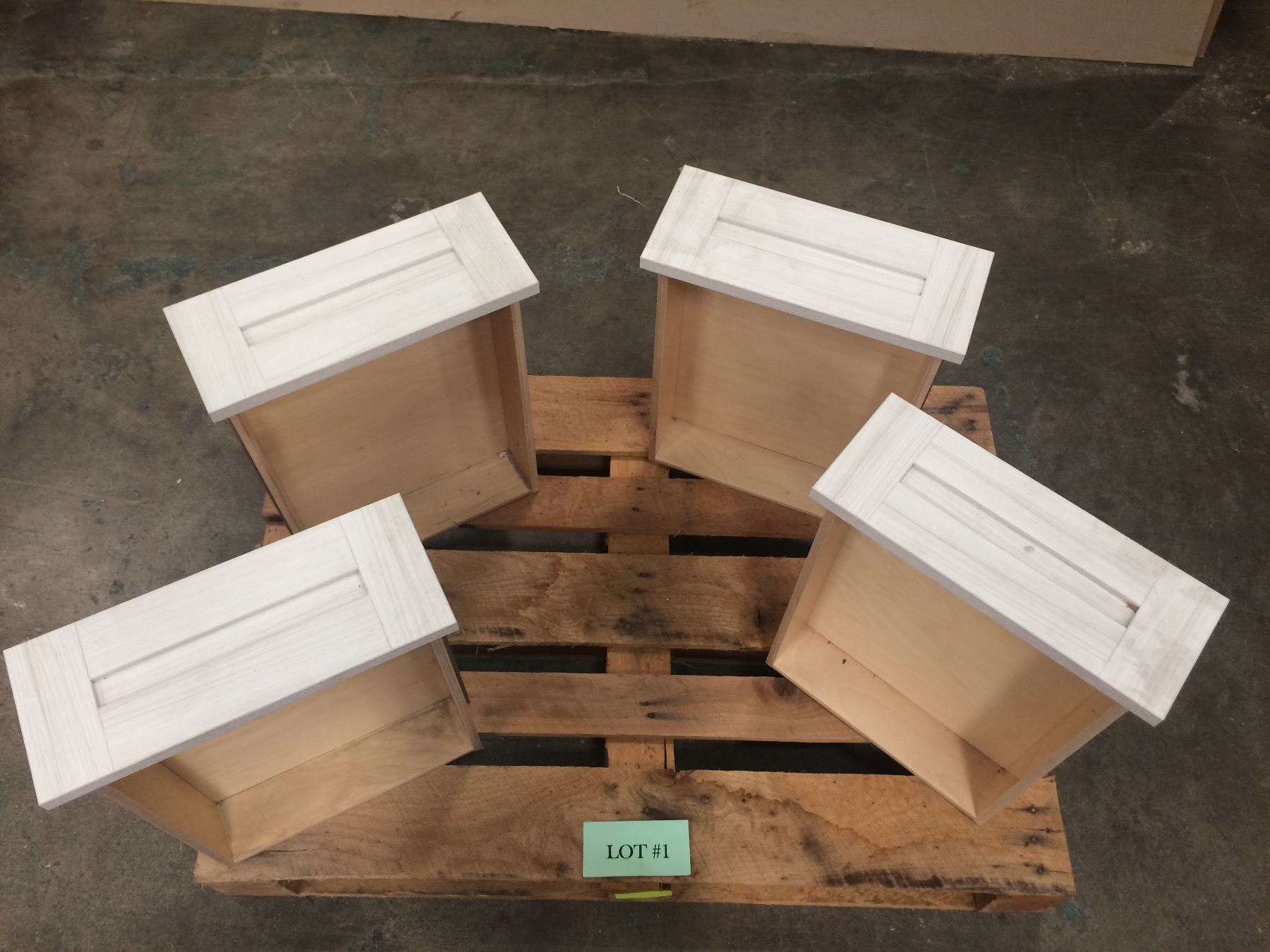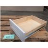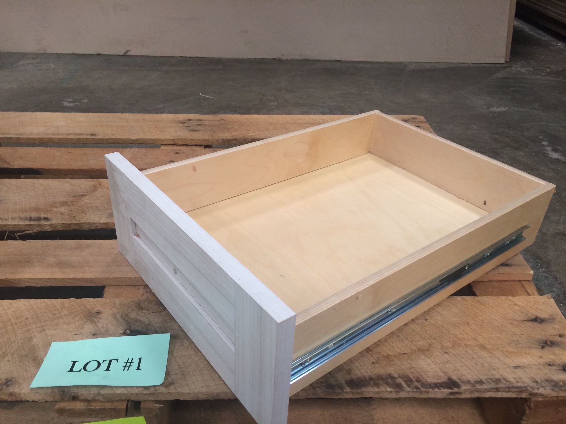 Qty 4 Pre-Finished Maple Cabinet Drawer Boxes w/Drawer Face. 4”h x 13-15/16”d x 19-3/4”l, w/pb tuscan moon drawer face (15-1/8”l x 6-1/4”h) and slides.