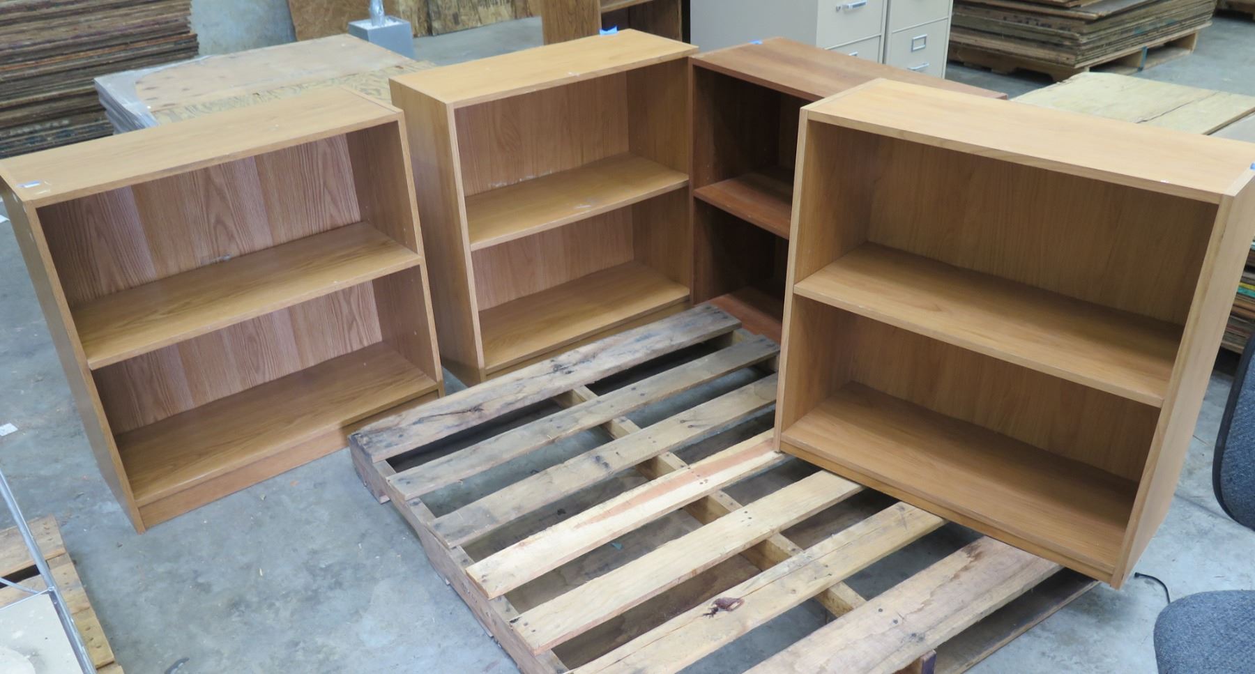 Qty 4 Pressed Wood 2-Tier Shelving Units 28"x12"x30"