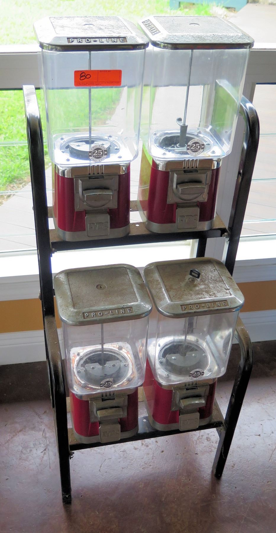 Qty 4 Pro-Line Metal Gumball & Candy Machines on Stand