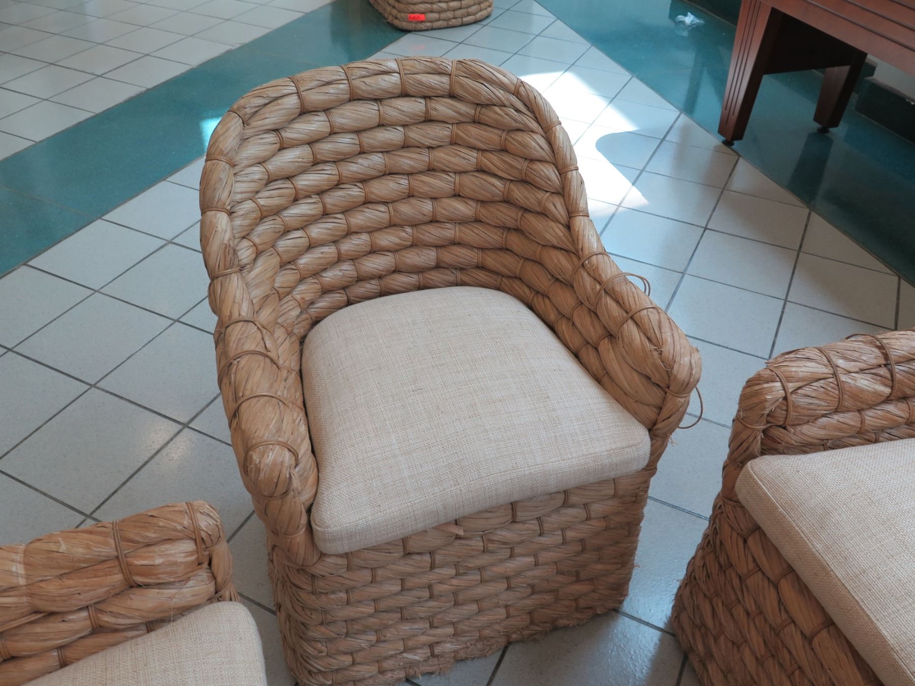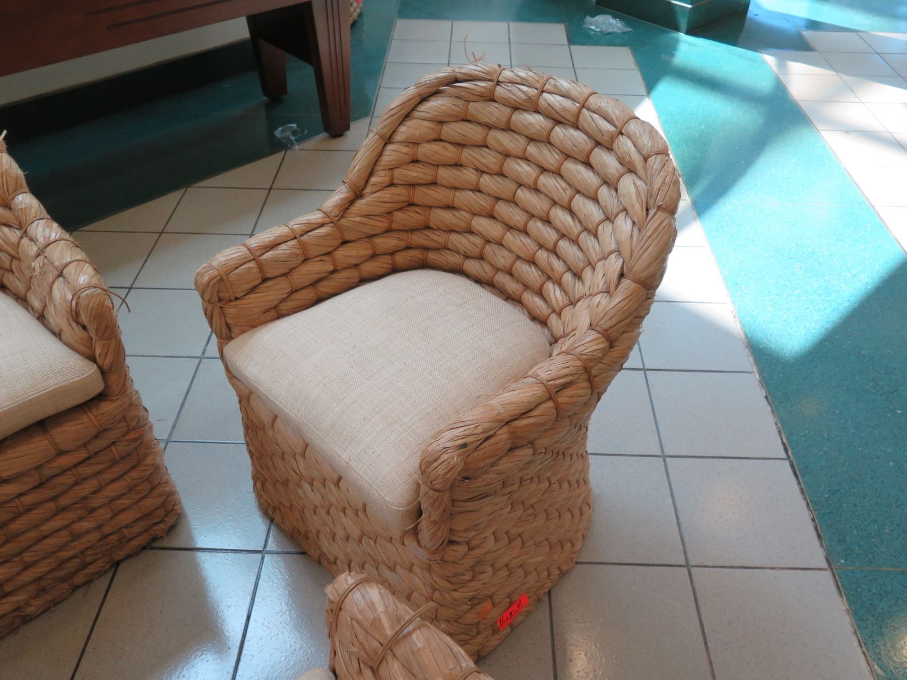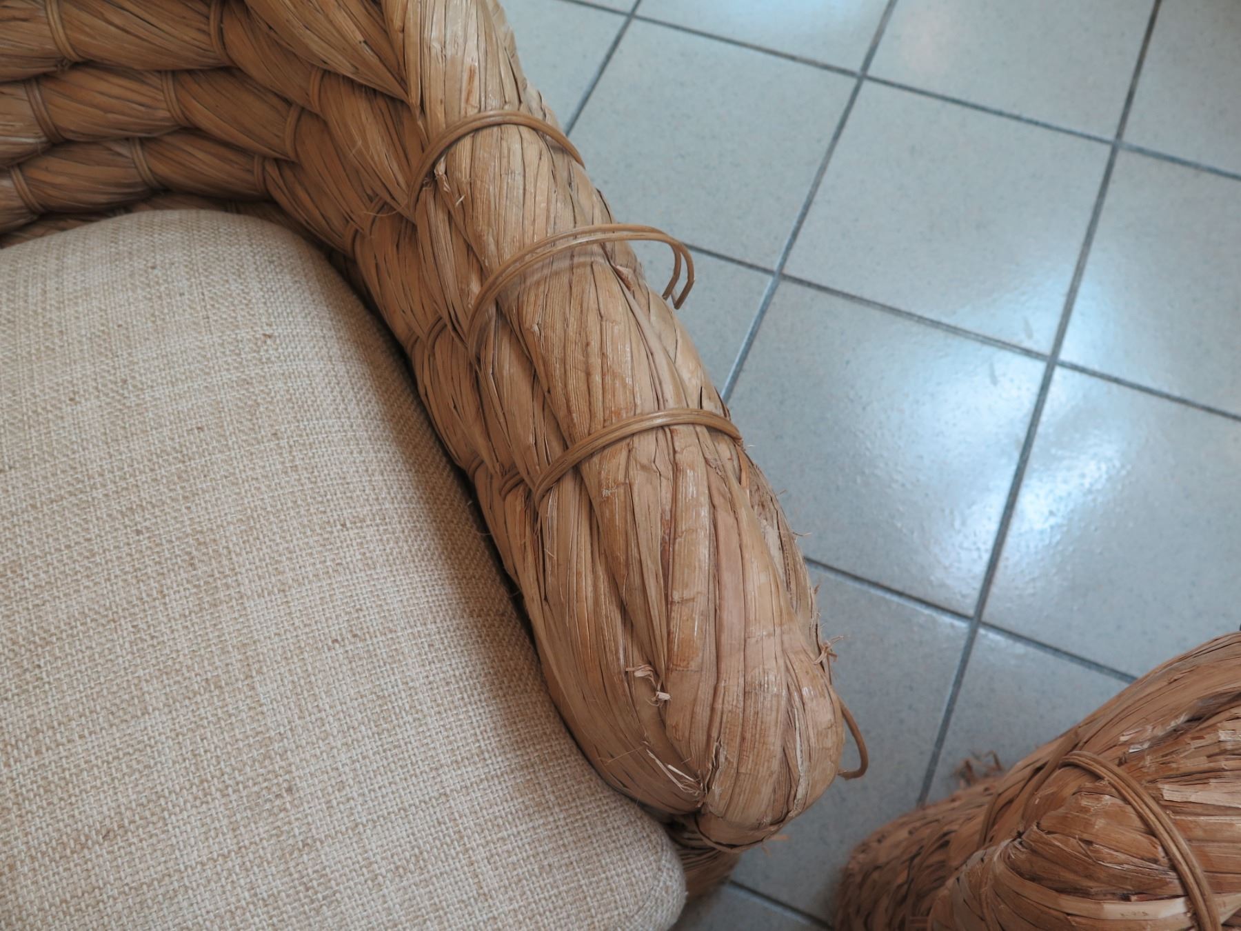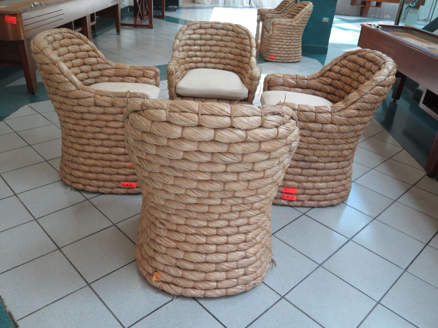 Qty 4 Ralph Lauren Joshua Tree Woven Barrel-Back Chairs w/ Cushions, 26"W x 20" x 34" back height. Please refer to all the pictures in this listing to see general wear and tear on these chairs.