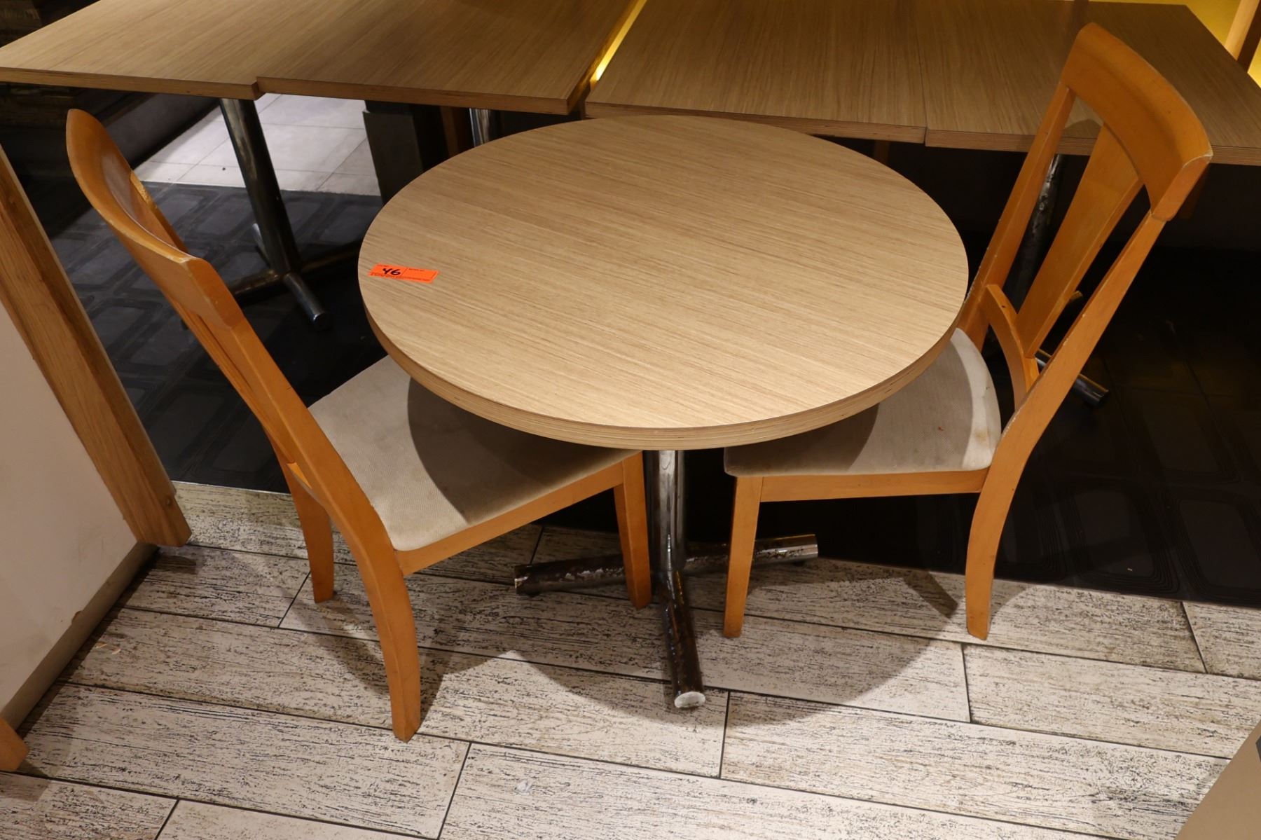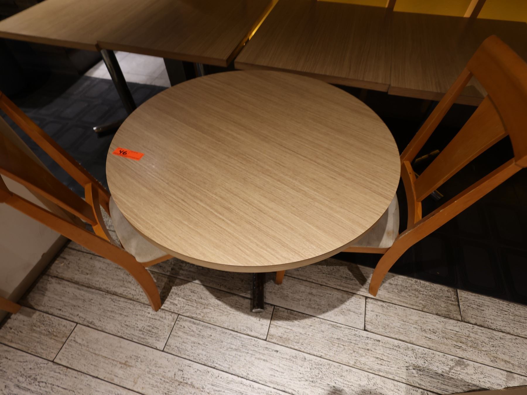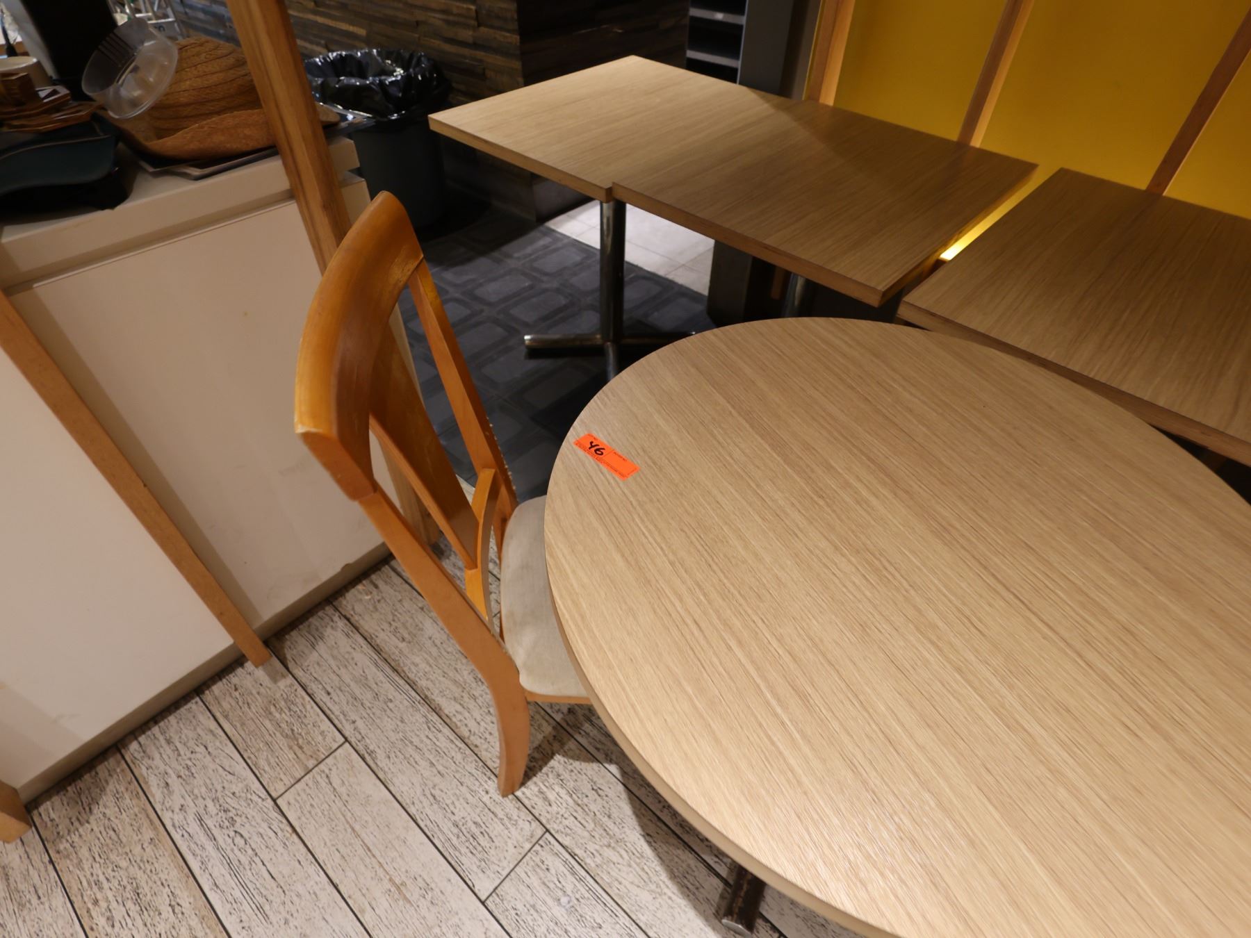 Qty 4 Rectangular Tables 30" x 24" x 29"H, Round Table on Pedestal Base 32" Dia w/ 2 Chairs
