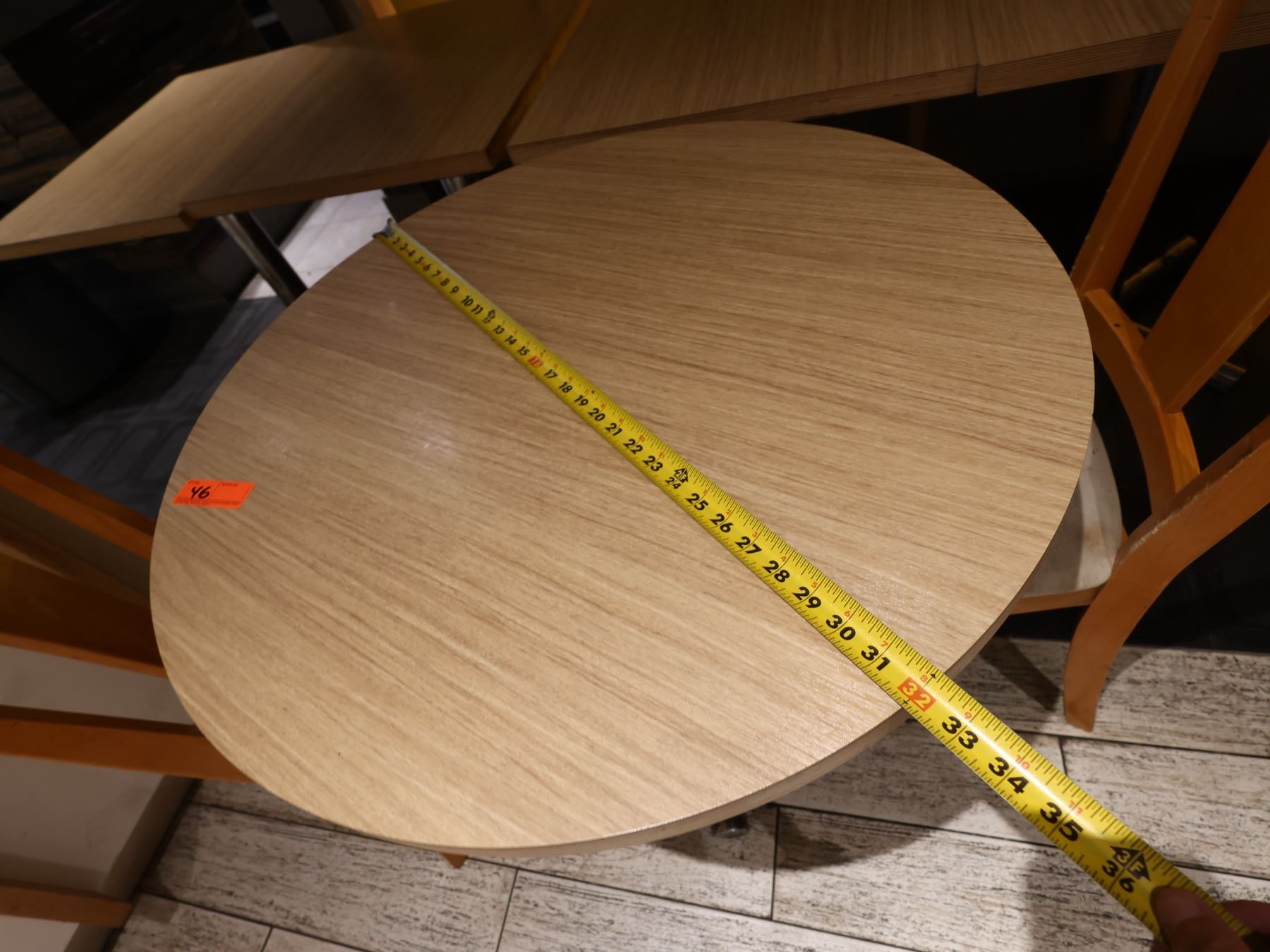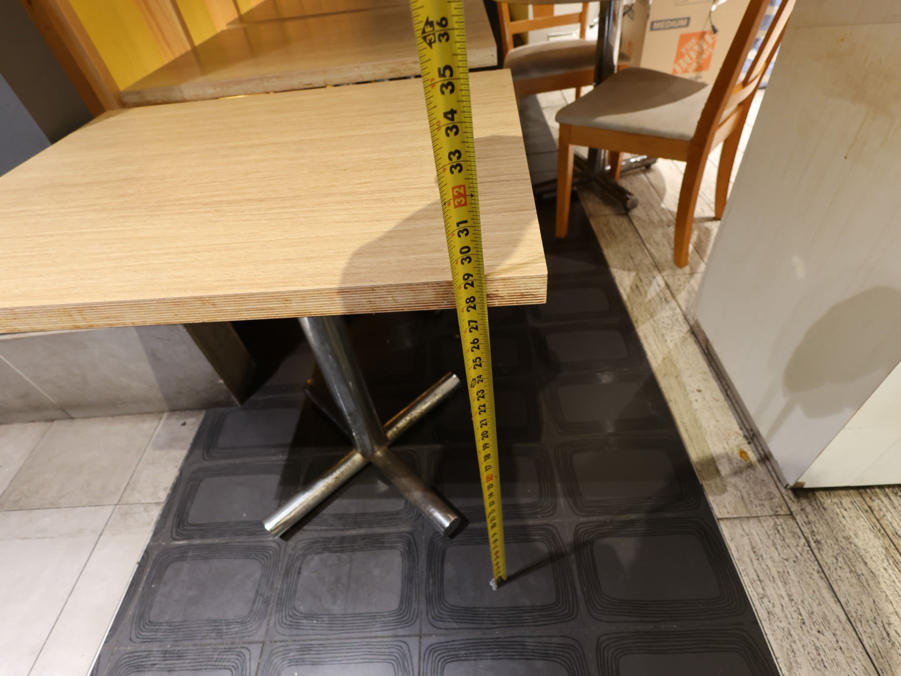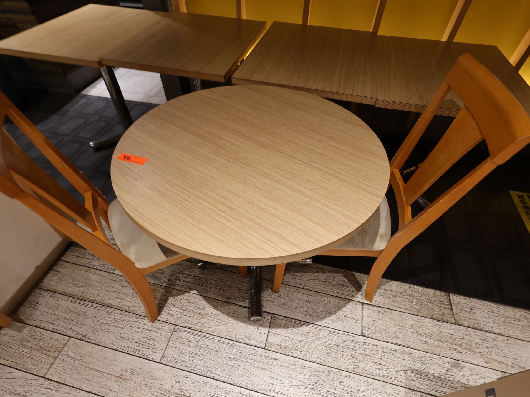 Qty 4 Rectangular Tables 30" x 24" x 29"H, Round Table on Pedestal Base 32" Dia w/ 2 Chairs