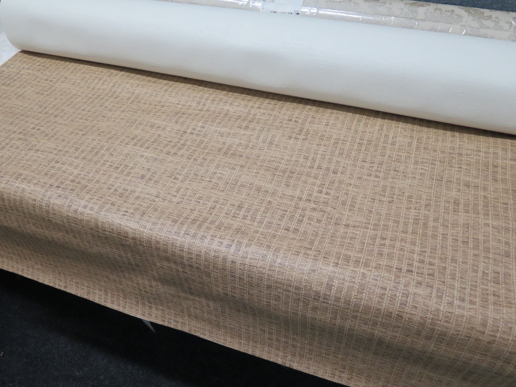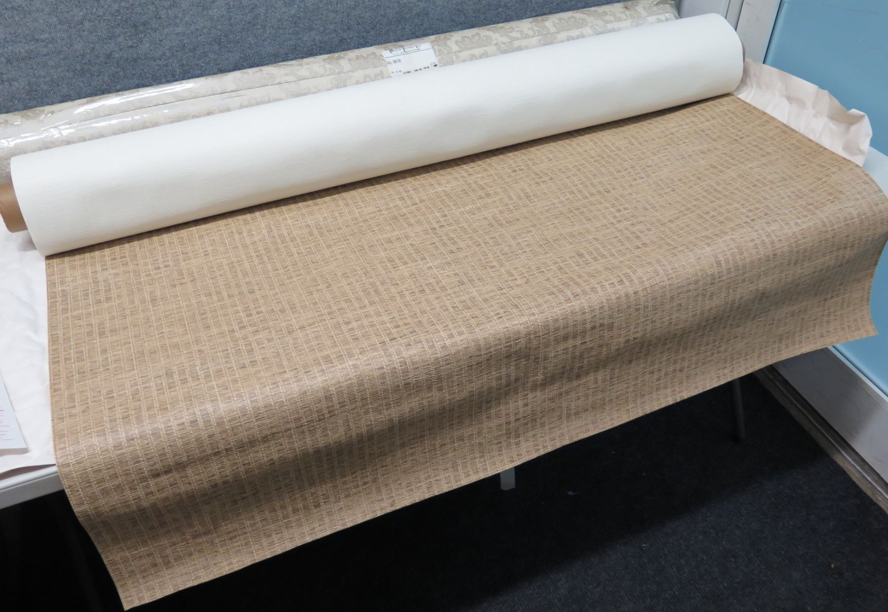 Qty 4 Rolls Phillip-Jeffries WC-103 Textured Wallcovering, Grid Pattern 55"W. All four rolls are the same pattern. The one shown in the 5th photo is just the covering (packaging) for each roll.