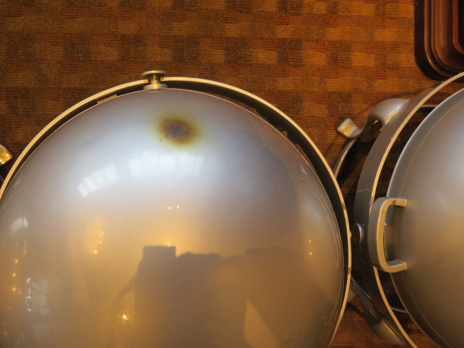 Qty 4 Round Footed Chafing Dishes w/ Attached Dome Lids 15" Diameter x 15"H (Open)