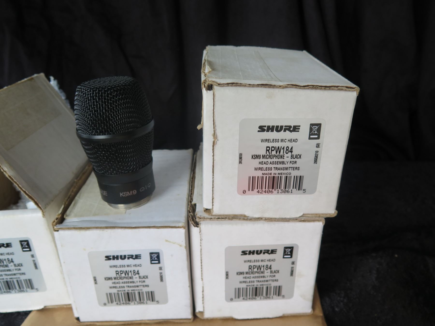 Qty 4 SHURE KSM-9 Wireless Capsule Only - Used w/ UHF-R Systems, SLX, ULX, ULX-P https://www.sweetwater.com/store/detail/RPW184--shure-rpw184-replacement-cartridge-housing-and-grille-for-wireless-ksm9-microphones-black