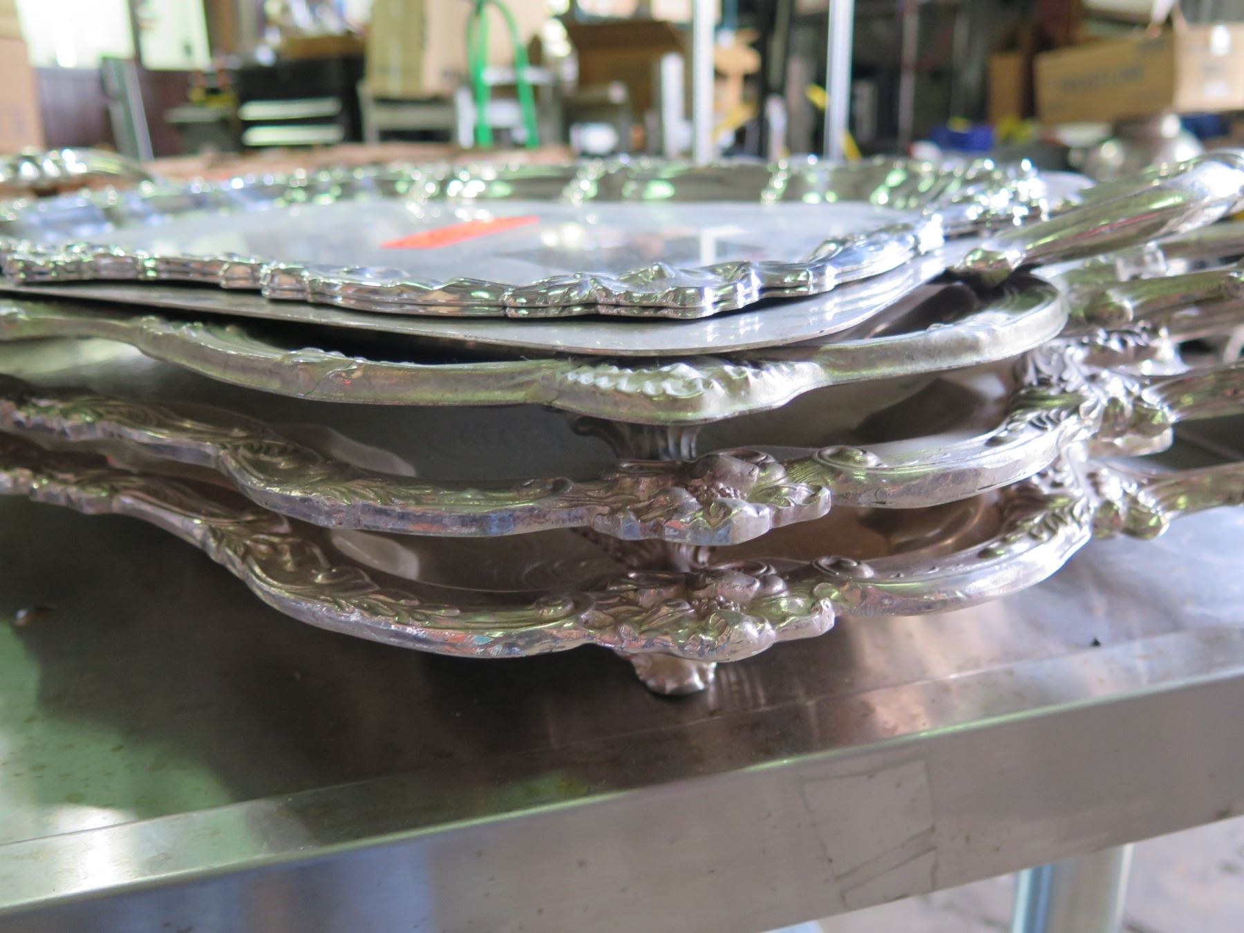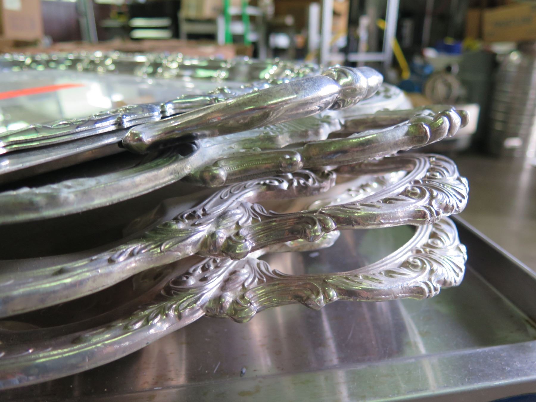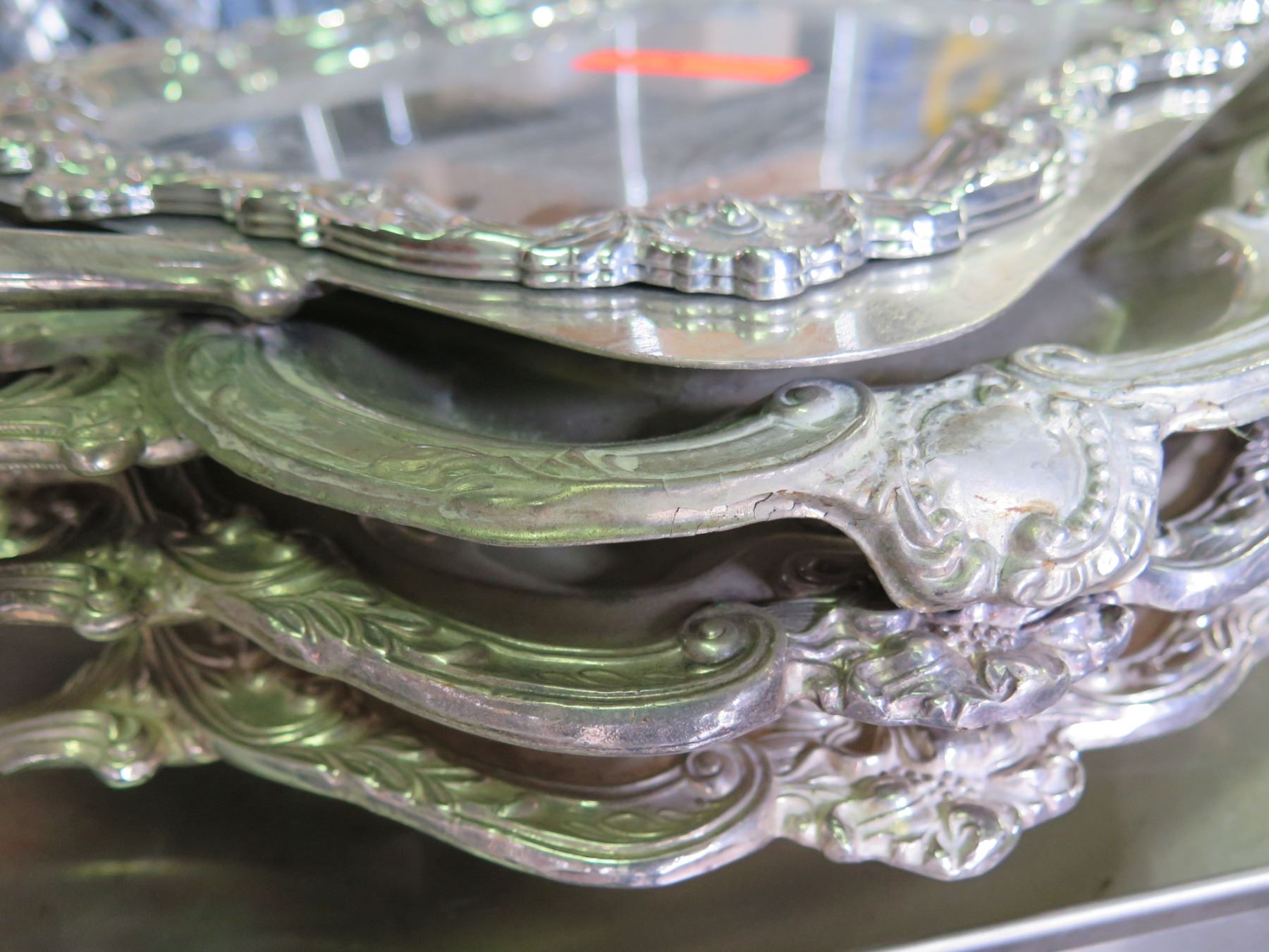 Qty 4 Serving Trays w/ Ornate Design & Handles