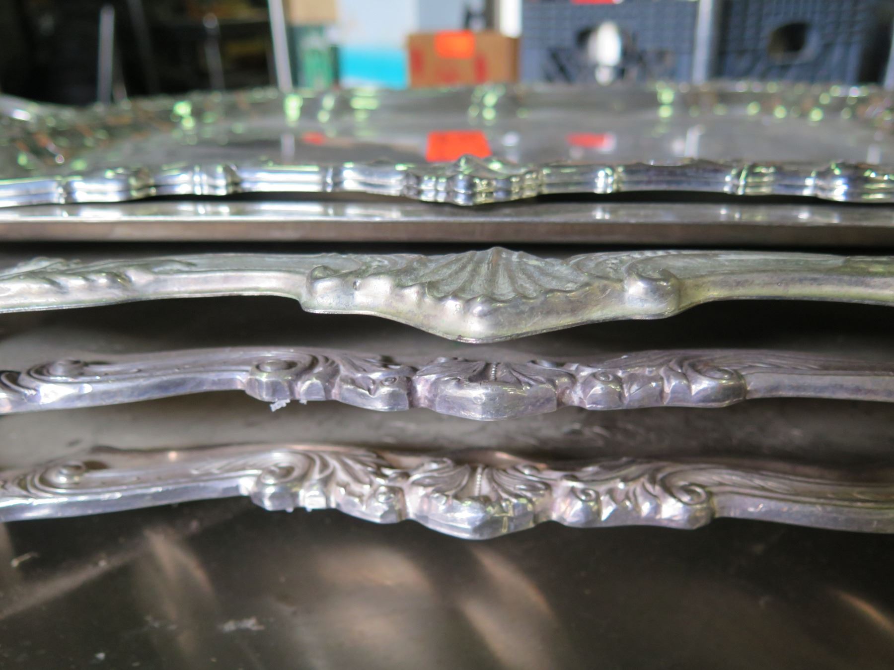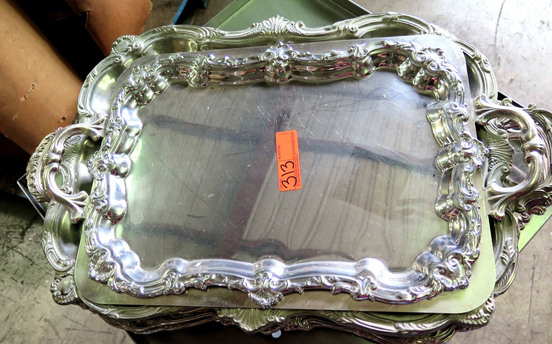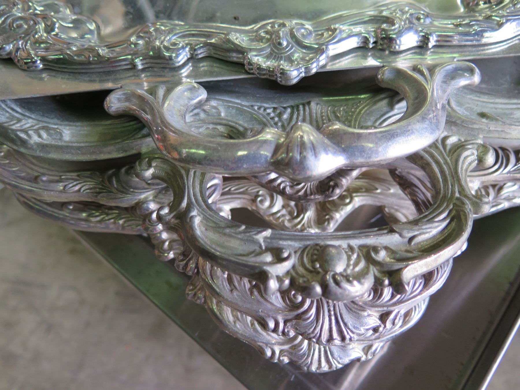 Qty 4 Serving Trays w/ Ornate Design & Handles