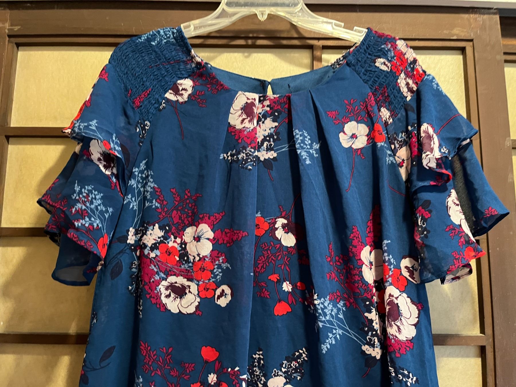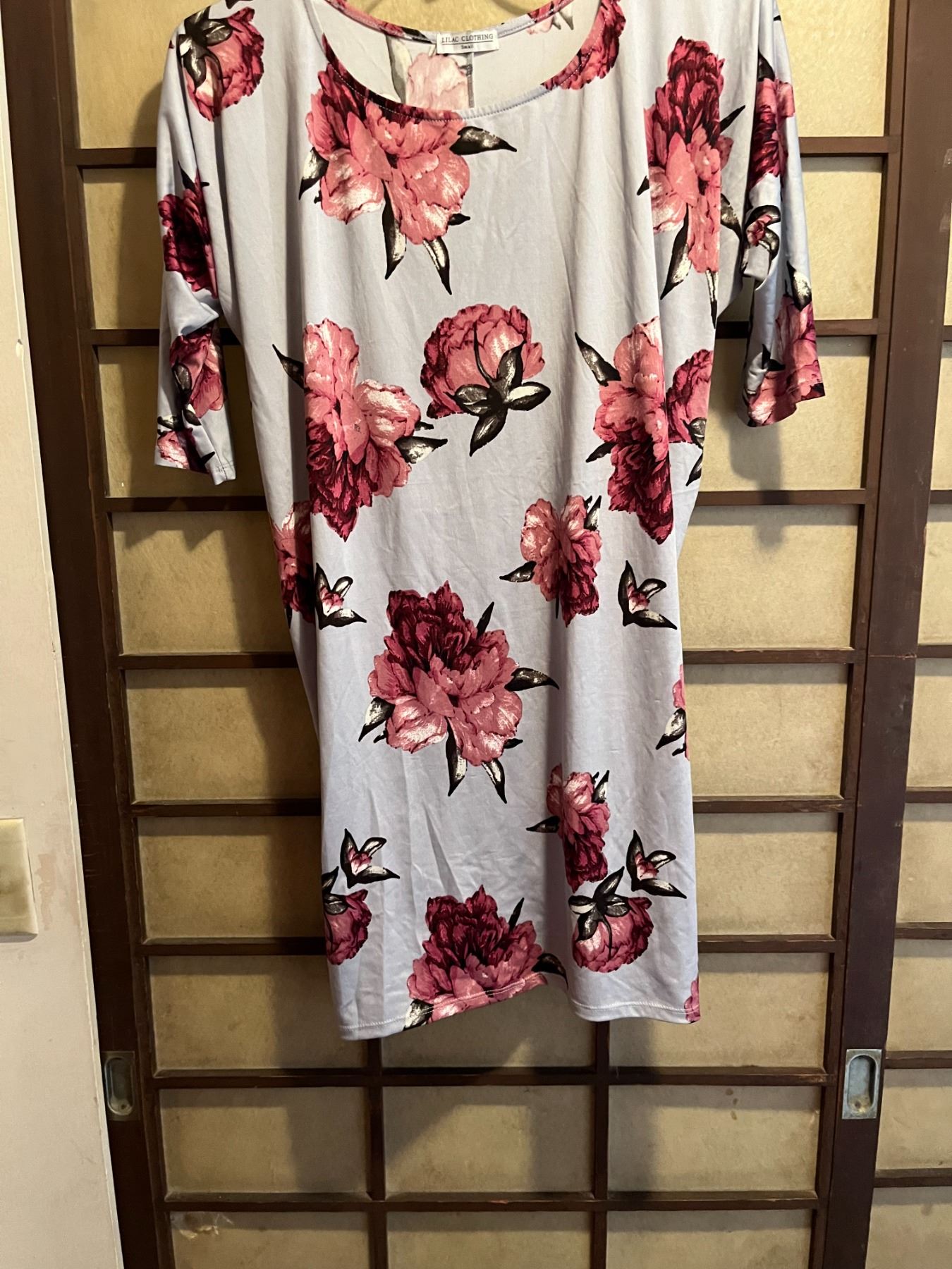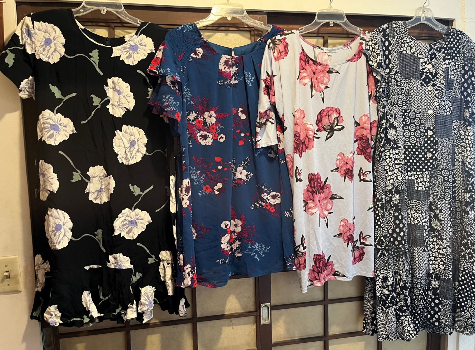 Qty 4 Short Sleeve Size Large Dresses & MuuMuu (38-40" bust): Sidan, Naturally Petite, etc (pre-owned) Note: These are preowned and may have flaws. Some size tags have been removed. Items are measured flat & doubled.