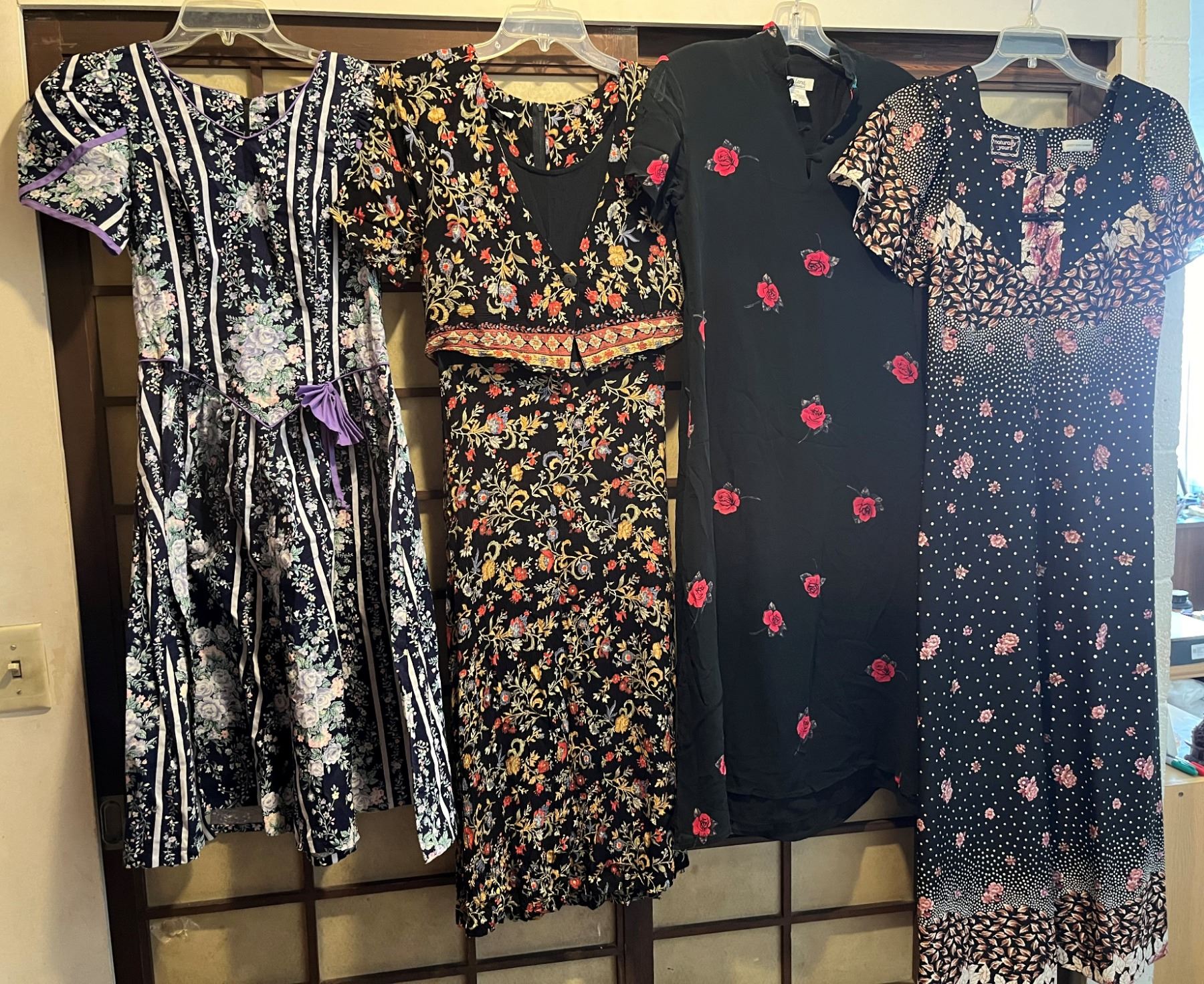 Qty 4 Short Sleeve Size Small Dresses & MuuMuu (30-34" bust): Xina Ann, Ilana, Naturally Yours, etc (pre-owned) Note: These are preowned and may have flaws. Some size tags have been removed. Items are measured flat & doubled.