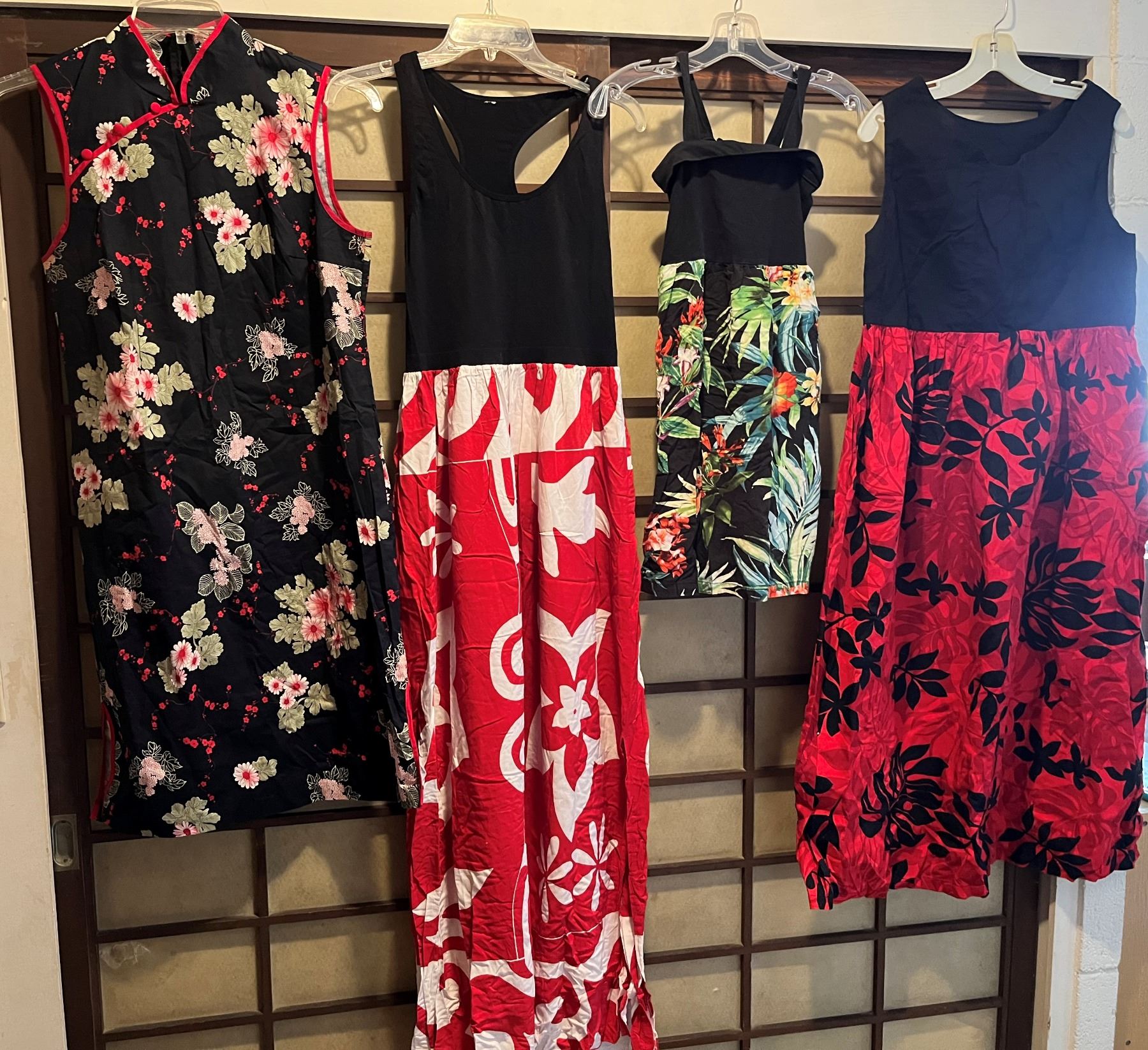 Qty 4 Sleeveless XS/Small or Keiki Dresses (28-34"bust): RJC, Oriental, etc (pre-owned) Note: These are preowned and may have flaws. Some size tags have been removed. Items are measured flat & doubled.
