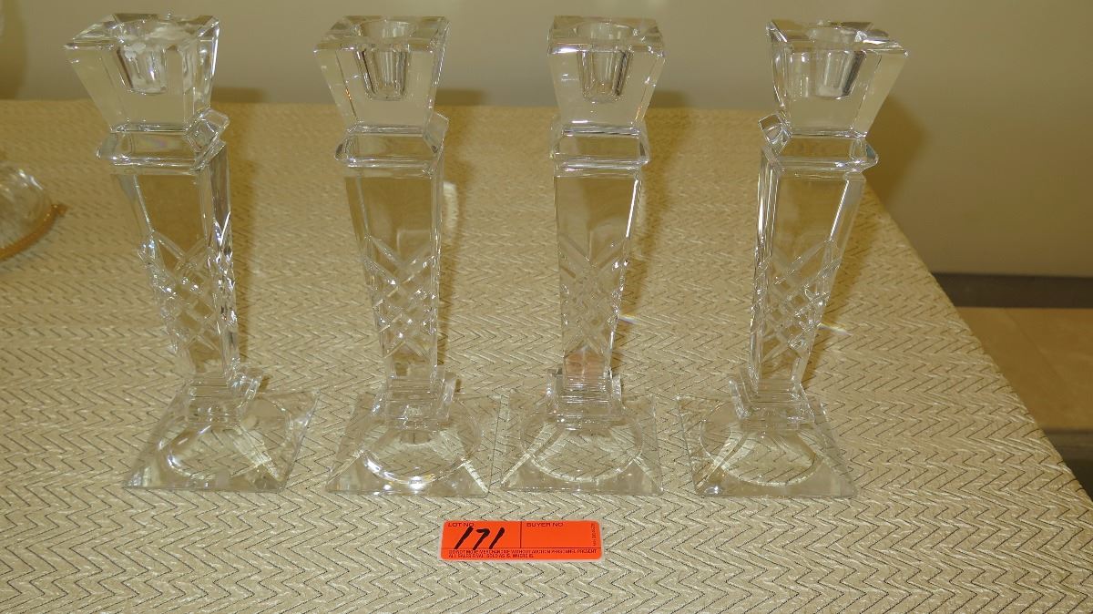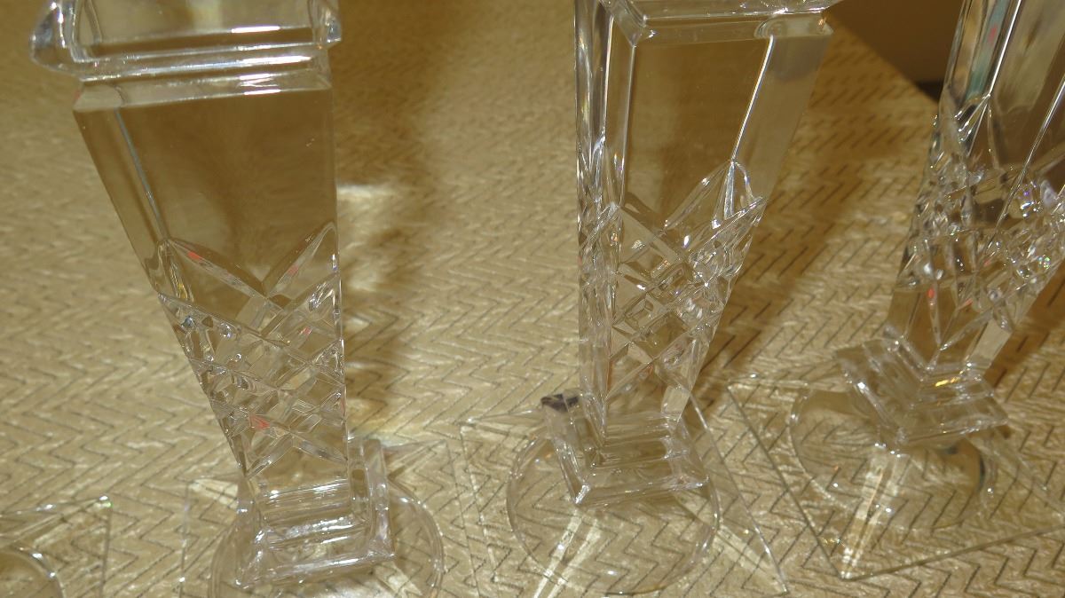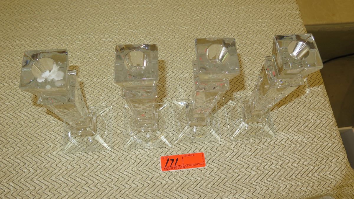 Qty 4 Slovakian Hand Crafted Cut Crystal Pillar Candle Holders