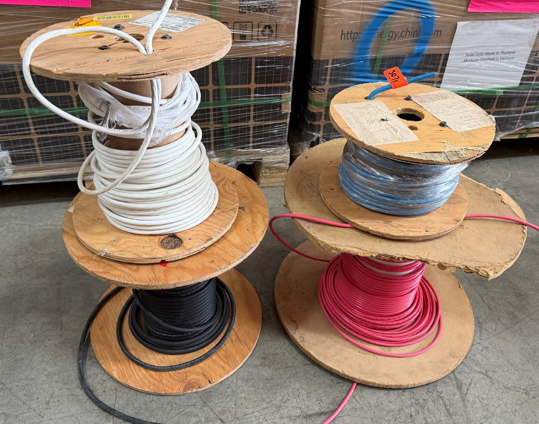 Qty 4 Spools Misc Wire: 4/1C (7STR) XHHW-2, 6AWG 2KV Black, XHHW-2 Blue, etc