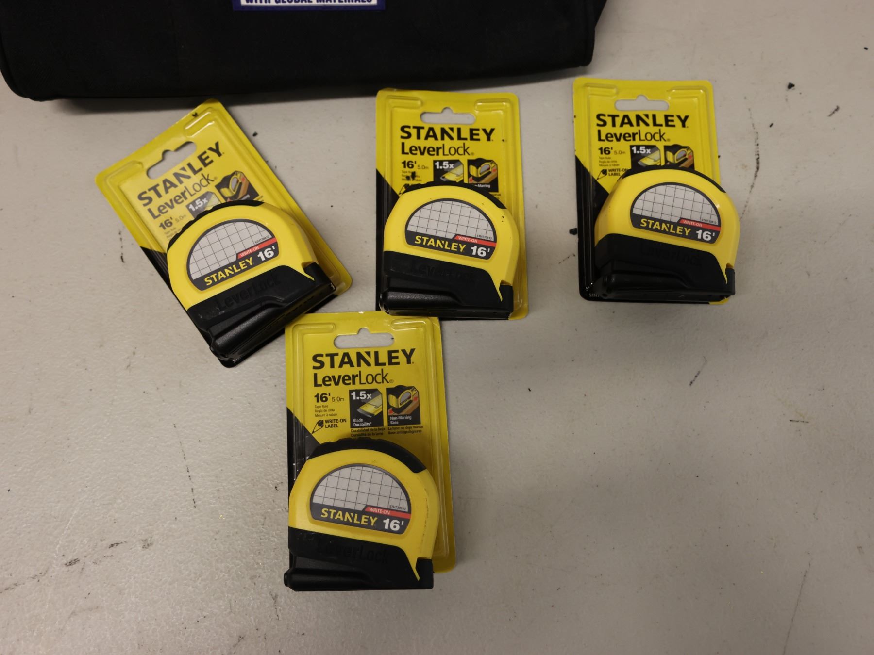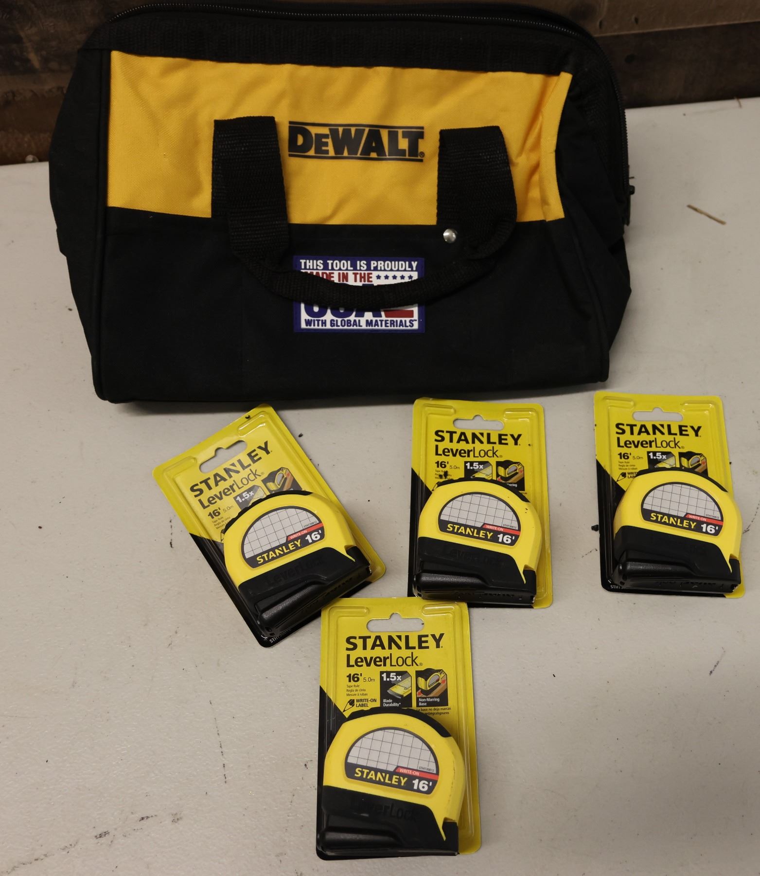 Qty 4 Stanley LeverLock Tape Measures in DeWalt Carry Bag