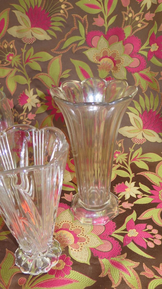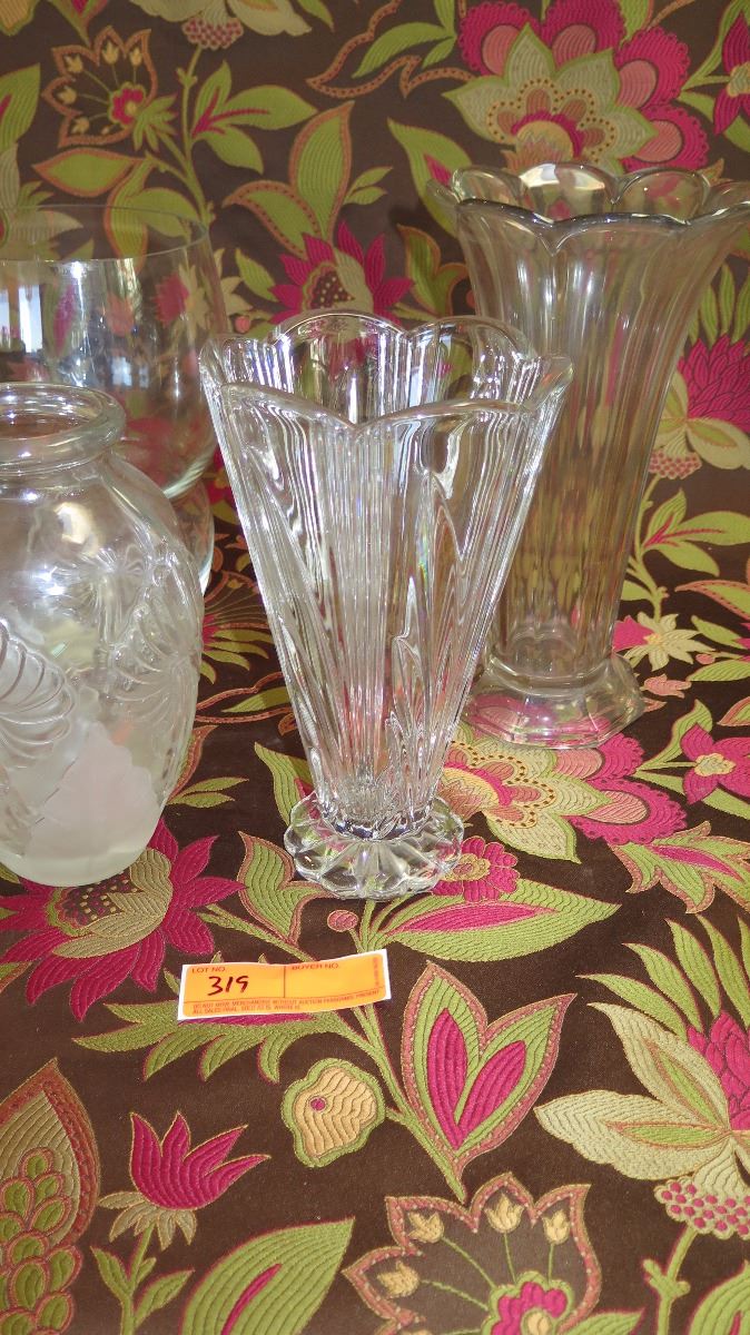 Qty 4 Tall Vases (Cut Crystal, Etched Relief, etc.) - 9" H to 11.5" H